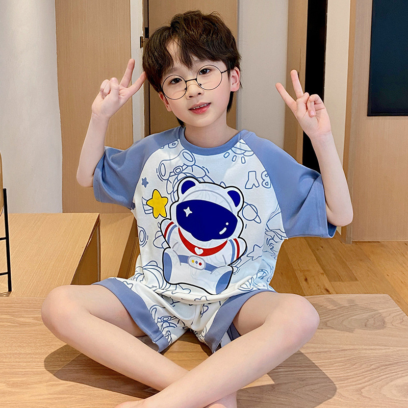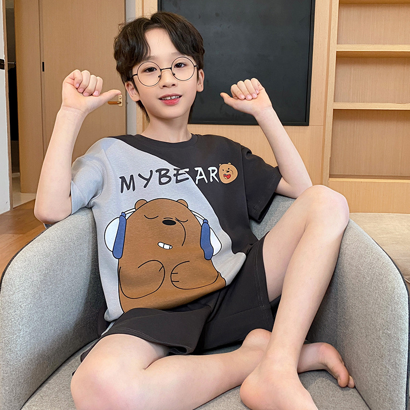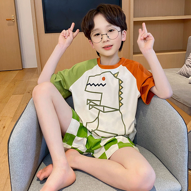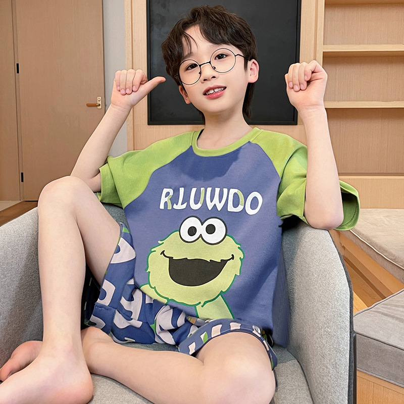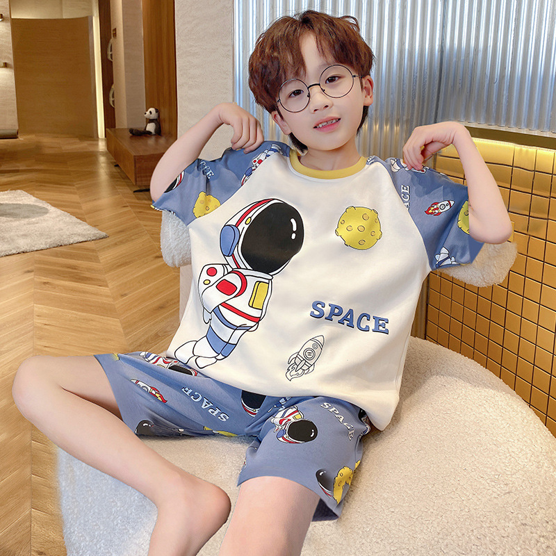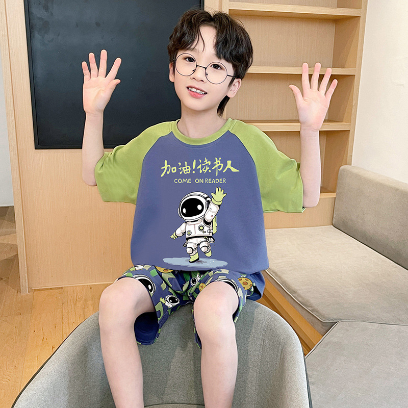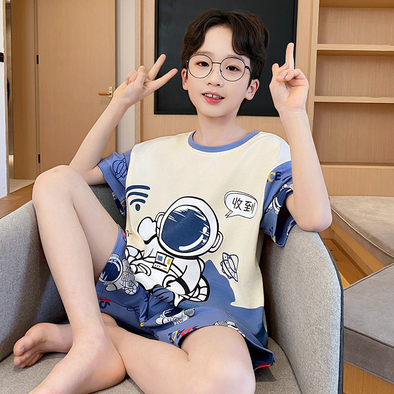 남학생 잠옷 2024 새 여름 반소매 어린이 순면 얇은 소년의 큰 어린이 청소년 가정 세트스토어 가기