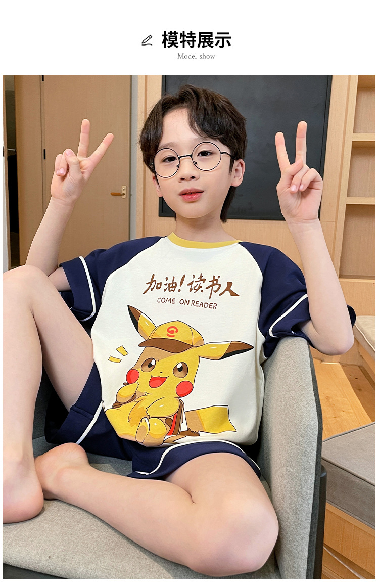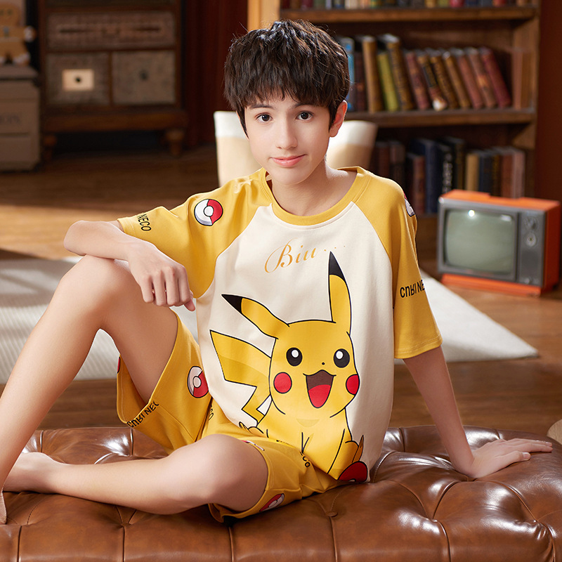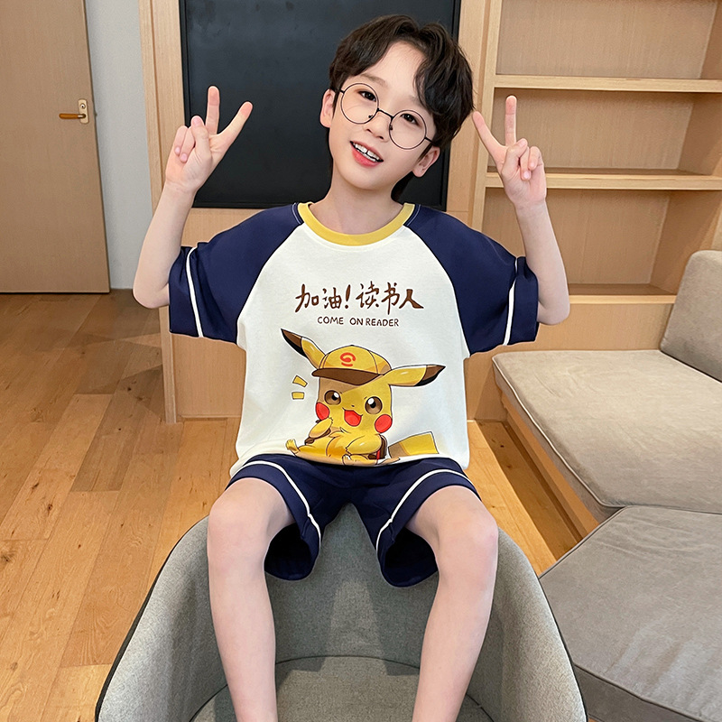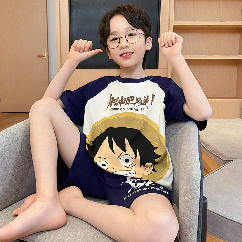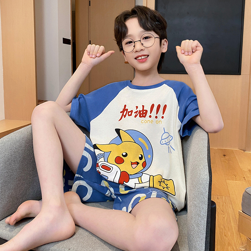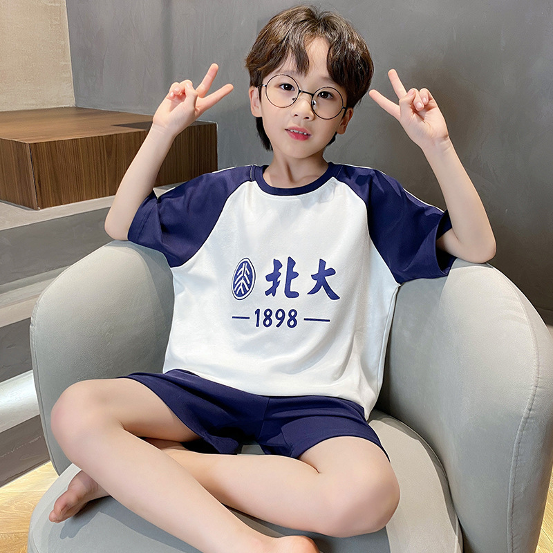 남학생 잠옷 2024 새 여름 반소매 어린이 순면 얇은 소년의 큰 어린이 청소년 가정 세트스토어 가기