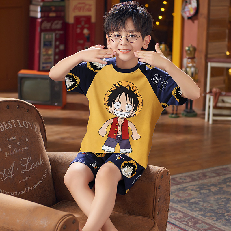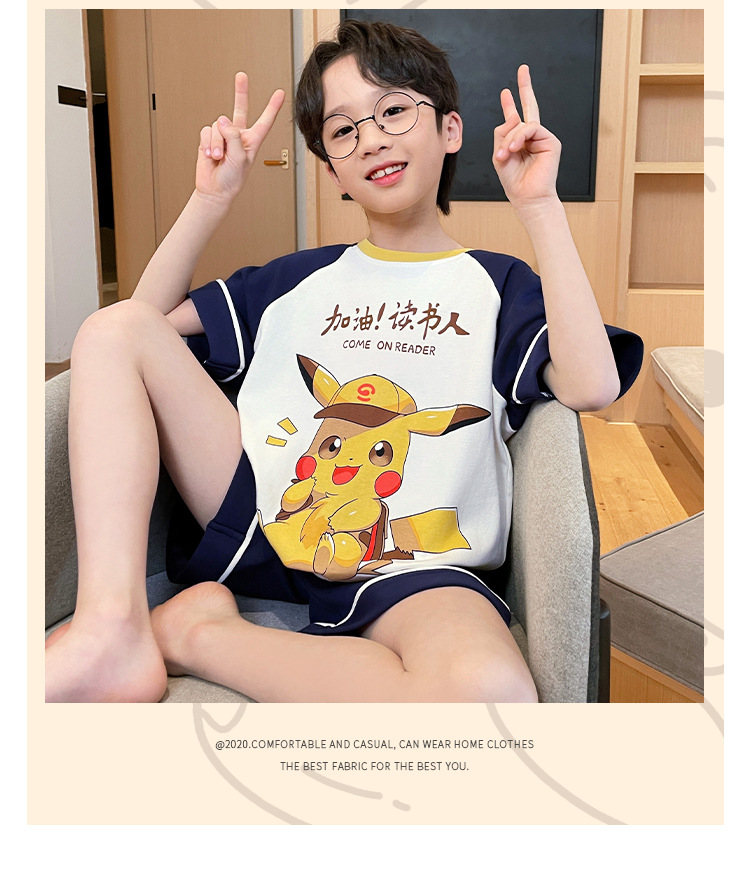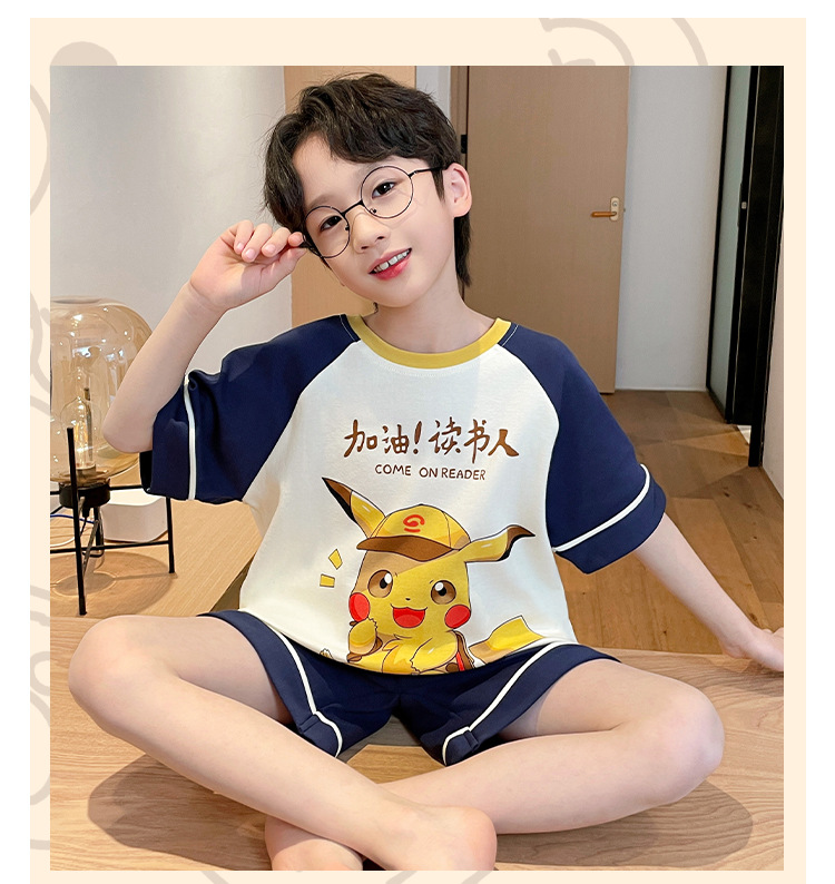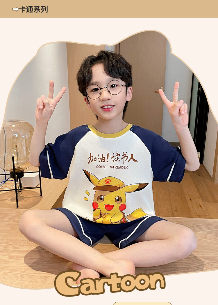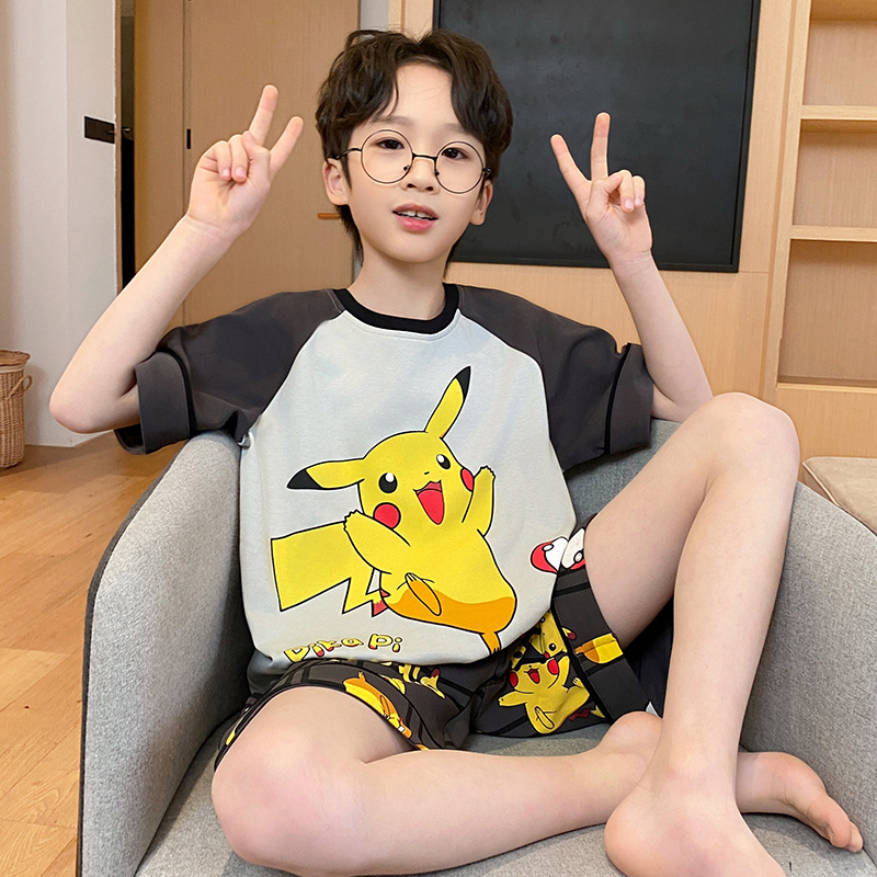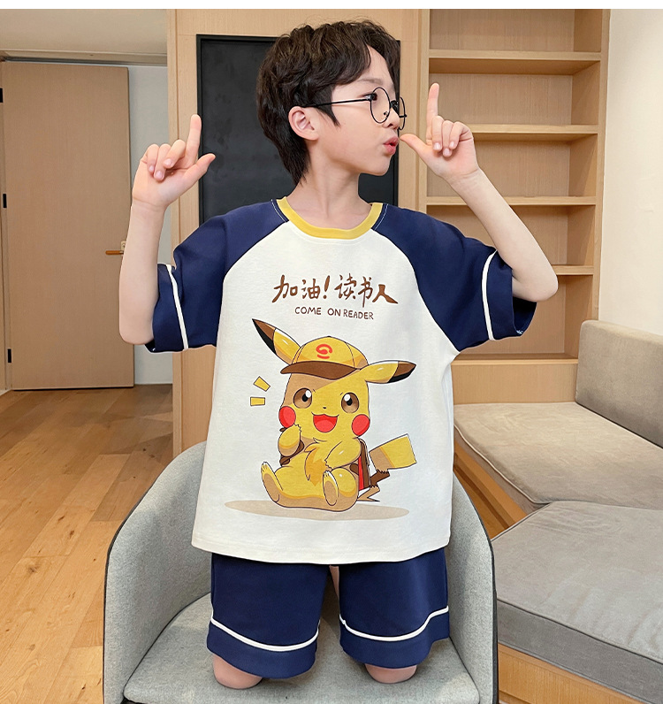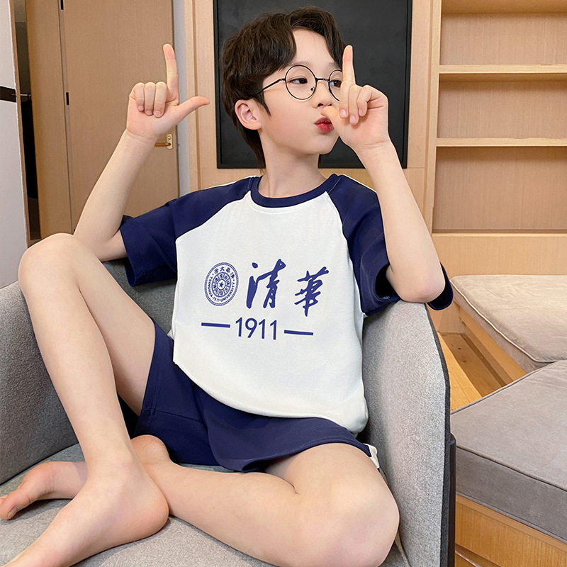 남학생 잠옷 2024 새 여름 반소매 어린이 순면 얇은 소년의 큰 어린이 청소년 가정 세트스토어 가기