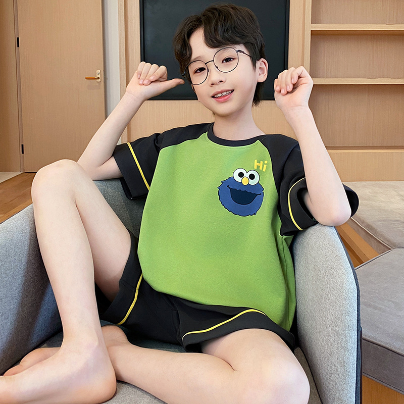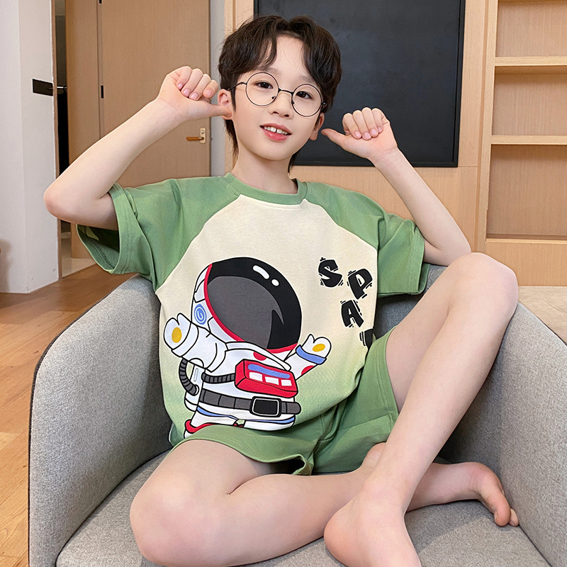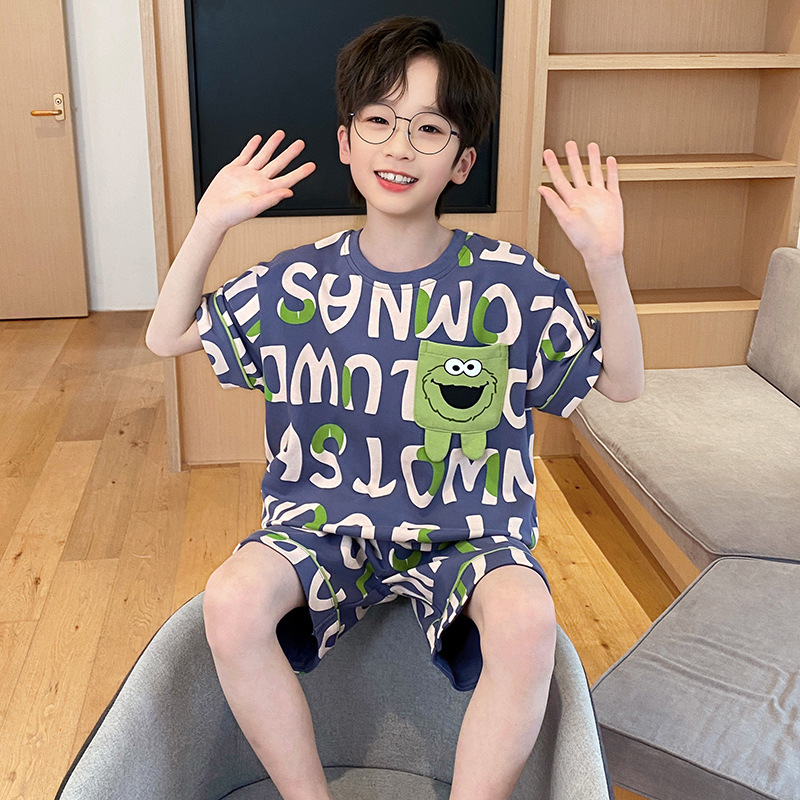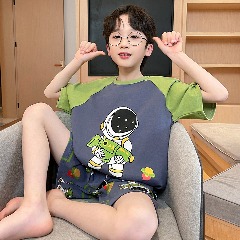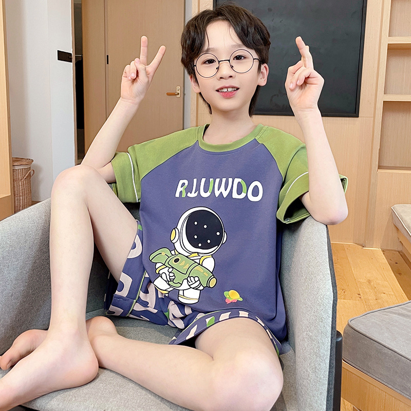 남학생 잠옷 2024 새 여름 반소매 어린이 순면 얇은 소년의 큰 어린이 청소년 가정 세트