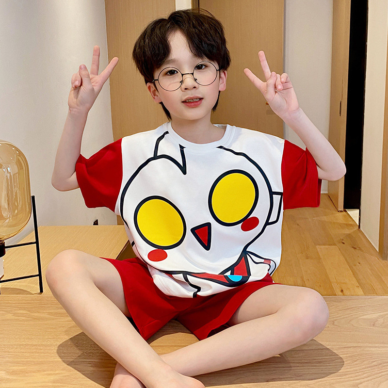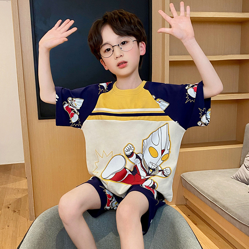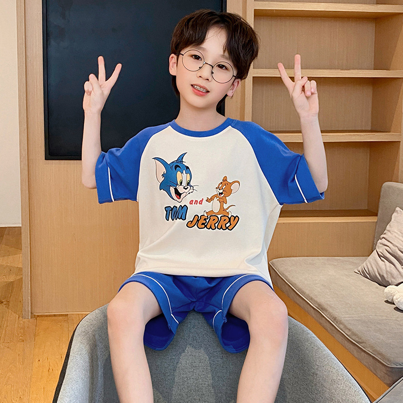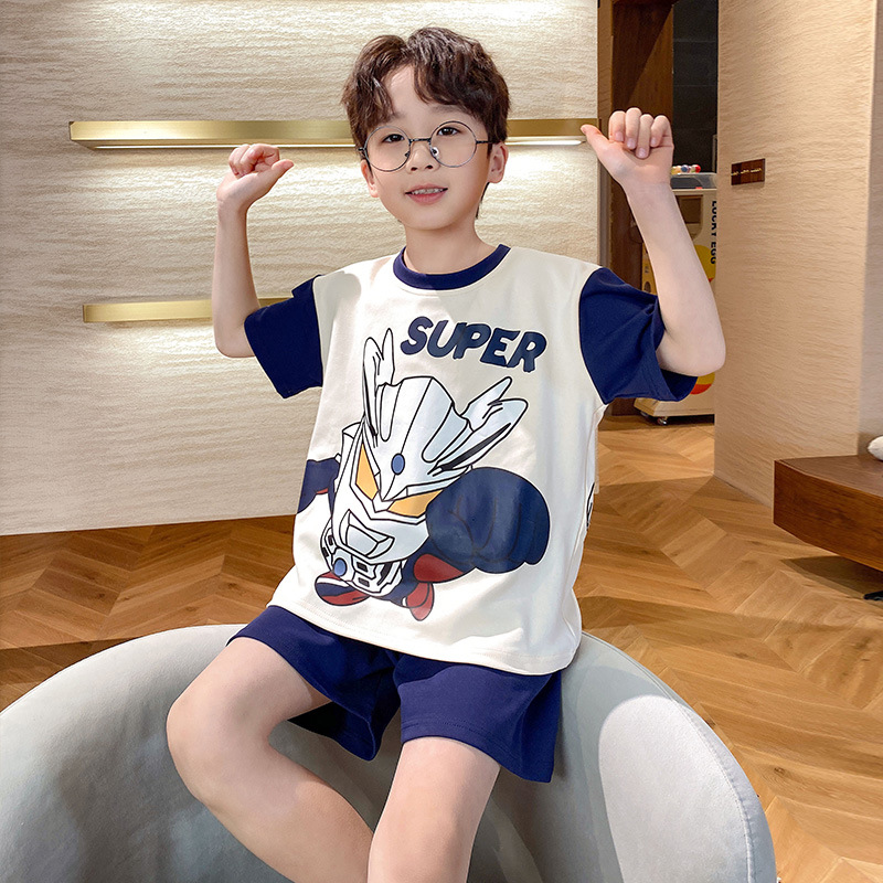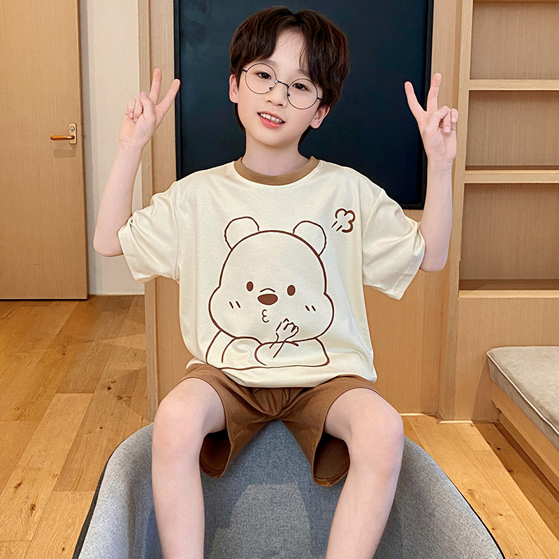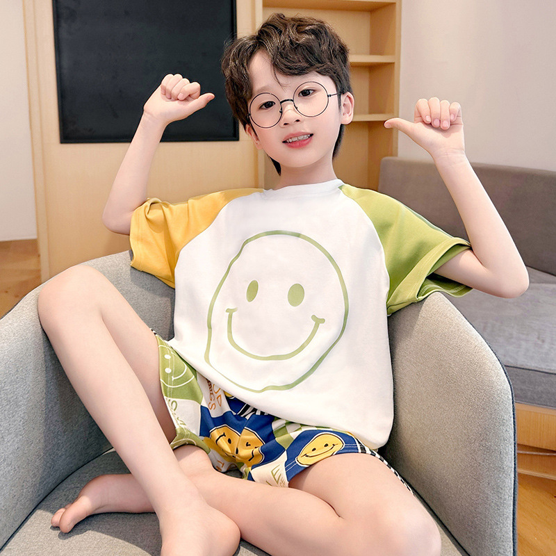 남학생 잠옷 2024 새 여름 반소매 어린이 순면 얇은 소년의 큰 어린이 청소년 가정 세트