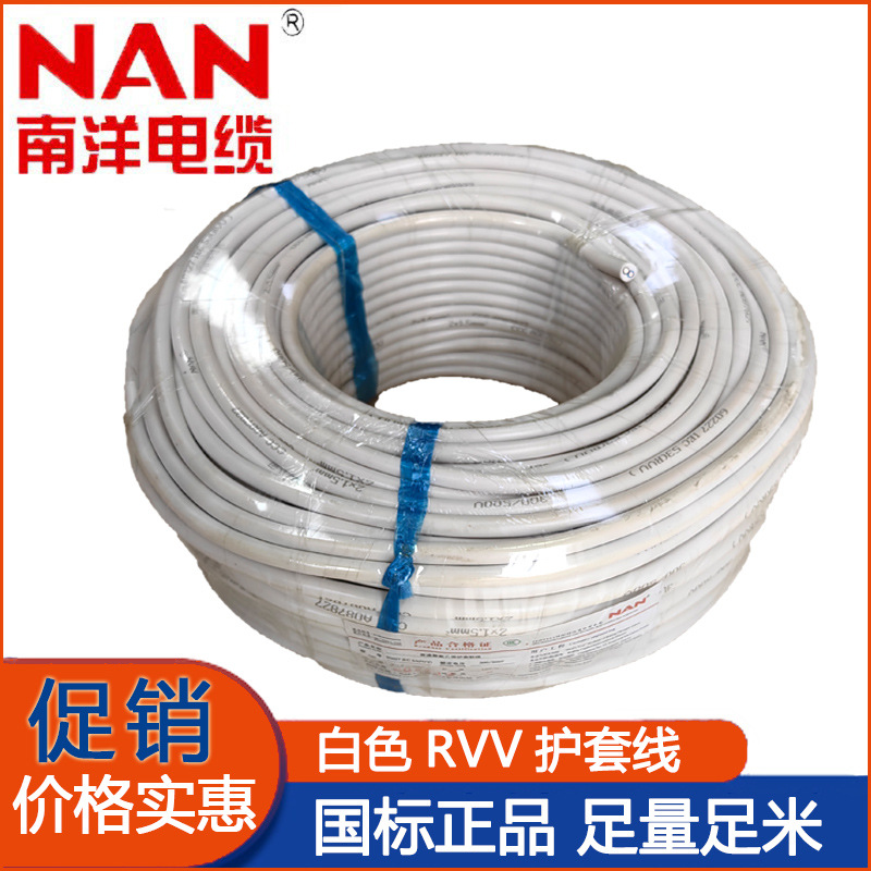 난양 브랜드 난양 2 코어 순수 구리 소프트 칼집 와이어 rvv 구리 코어 와이어 및 케이블 GB 홈 장식 전원 코드 화이트 칼집