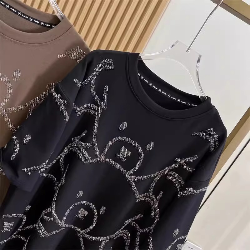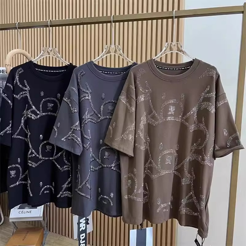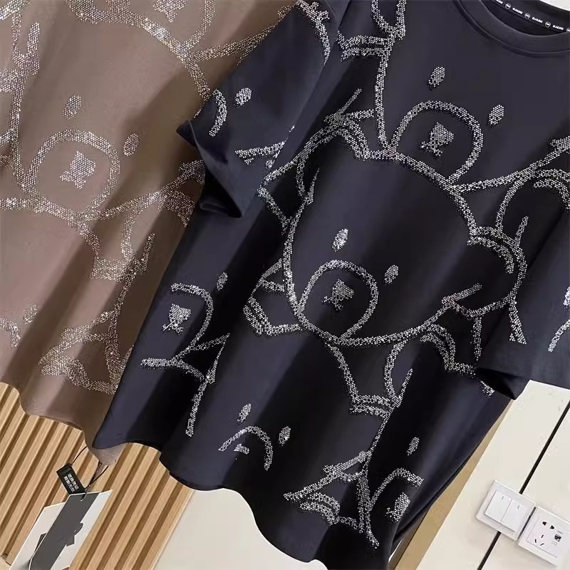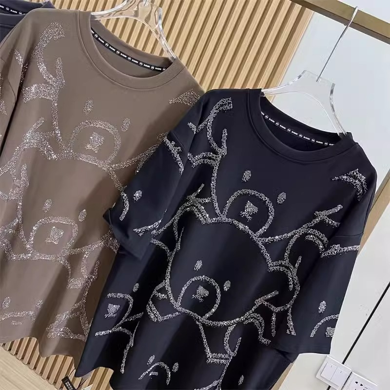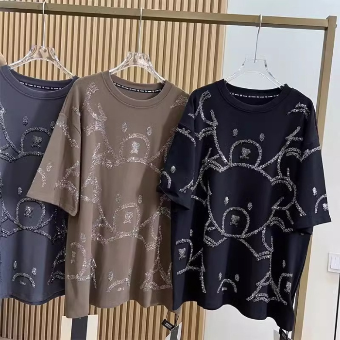 슈퍼 플러스 사이즈 1.00 kg-150.00 kg 통통녀 봄과 여름 중공업 뜨거운 시추 전 곰 디자인 시대 감소 여성용 느슨한 반팔 티셔츠스토어 가기