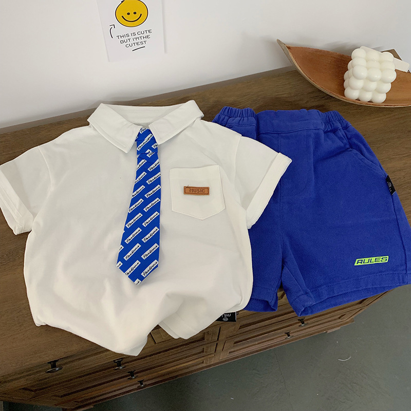 소년 어린이 여름 셔츠 반팔 공연 폴로 호스트 원피스 넥타이 졸업 사진면 흰색 셔츠