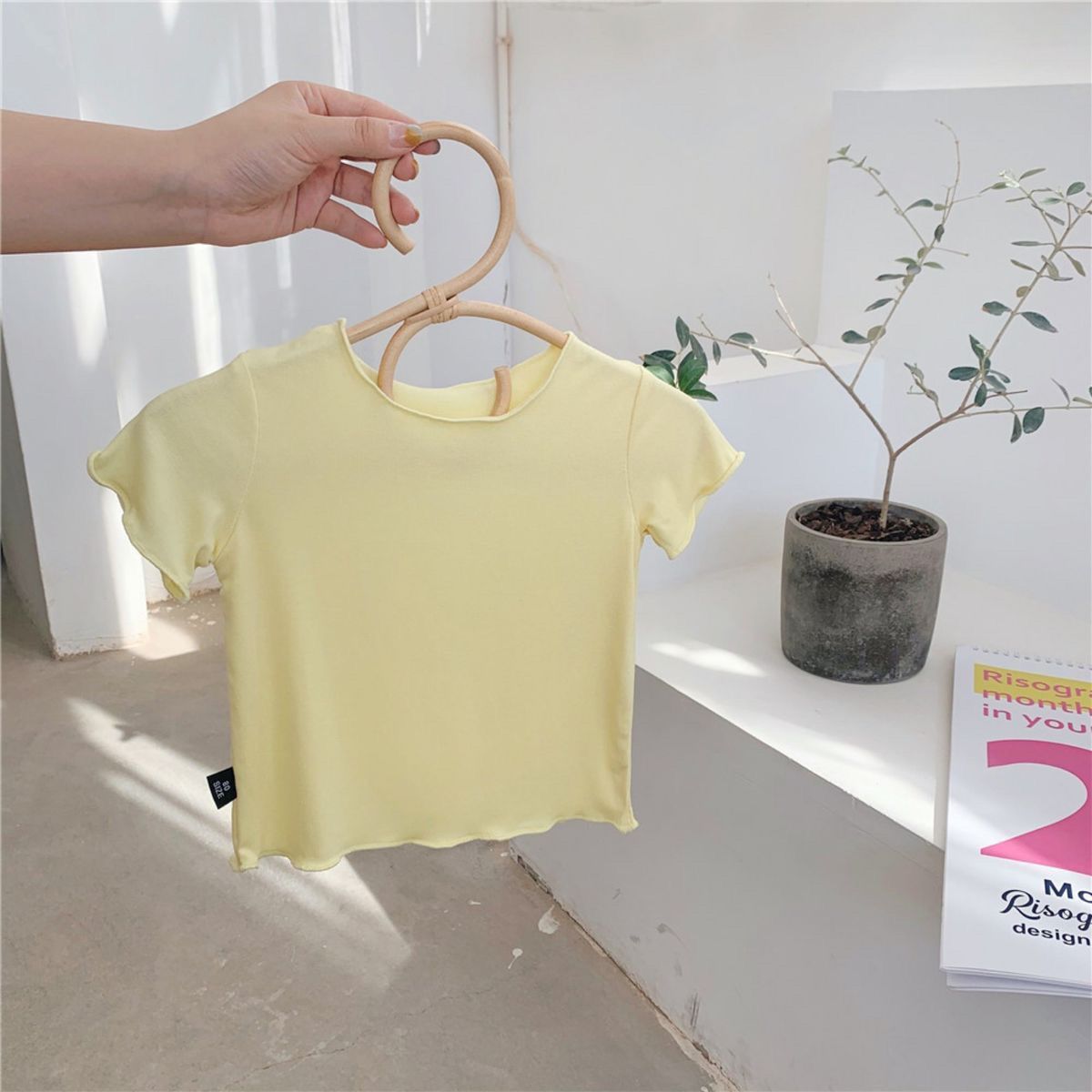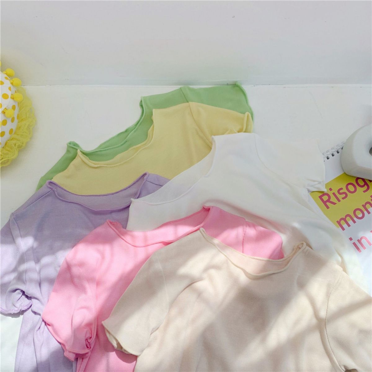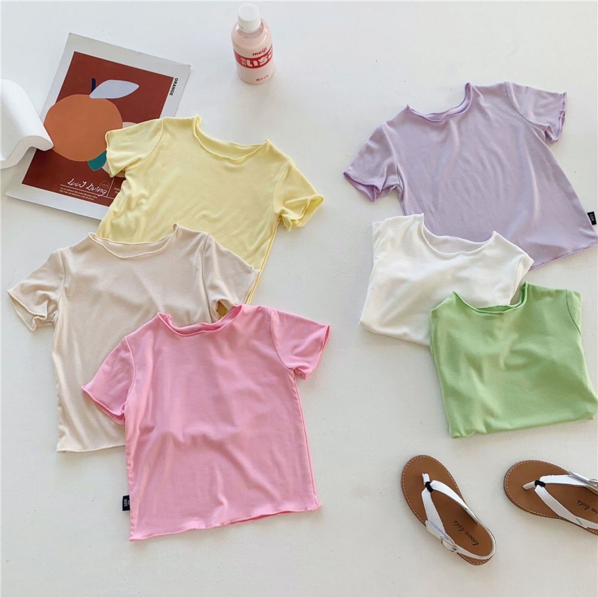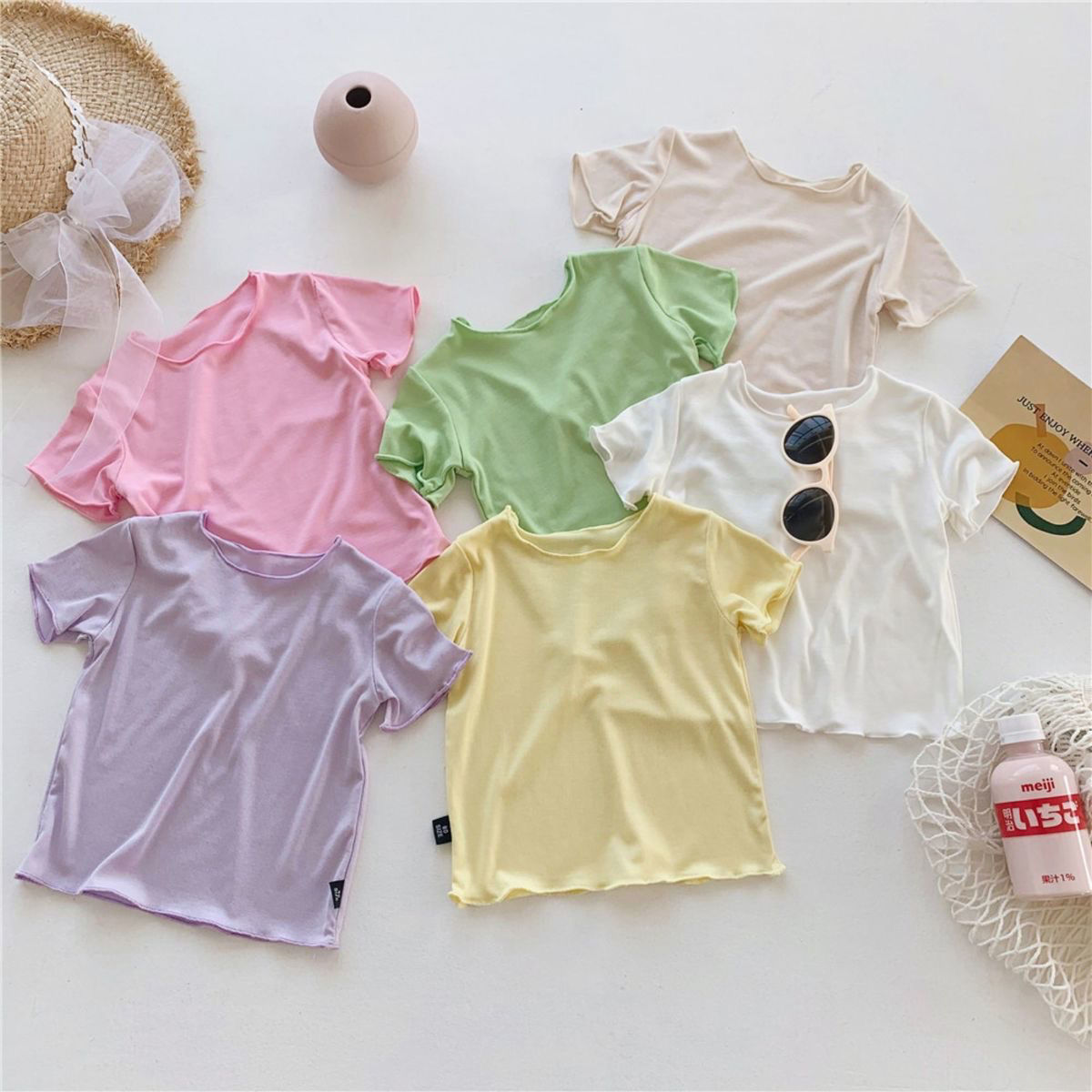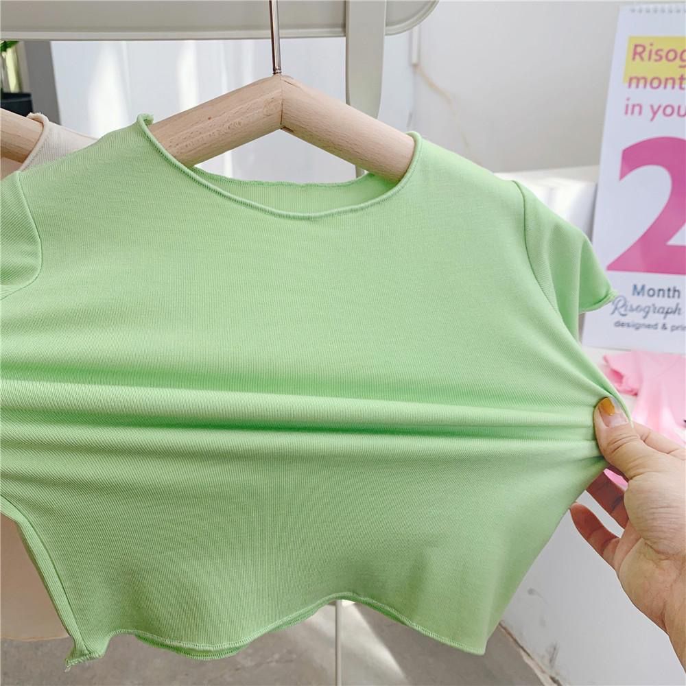 여자 반팔 티셔츠 2024 여름 얇은 어린이 모달 서양식 캔디 컬러 베이비 걸스 올매치 트렌디 탑