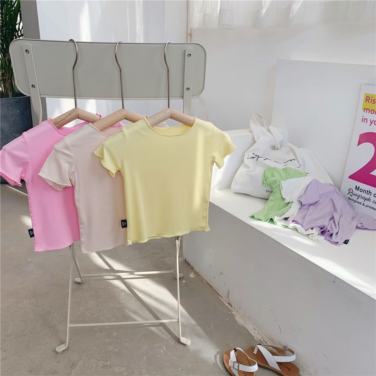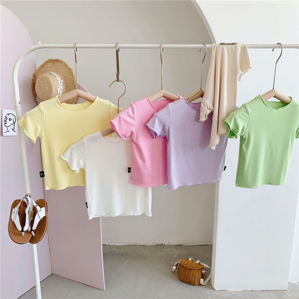 여자 반팔 티셔츠 2024 여름 얇은 어린이 모달 서양식 캔디 컬러 베이비 걸스 올매치 트렌디 탑스토어 가기