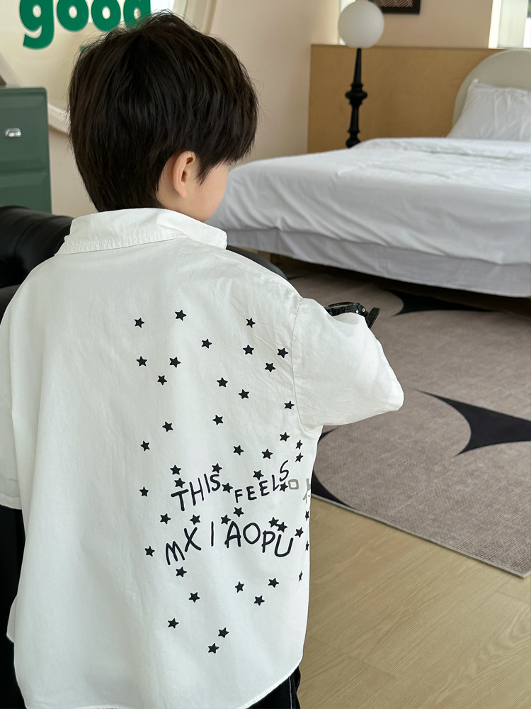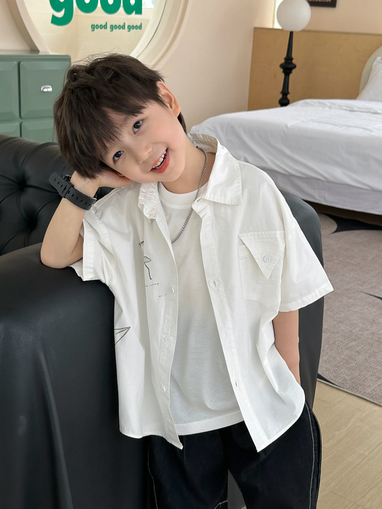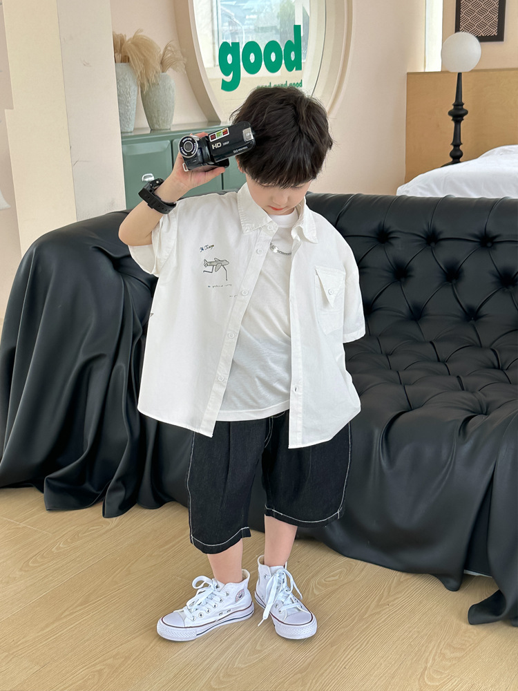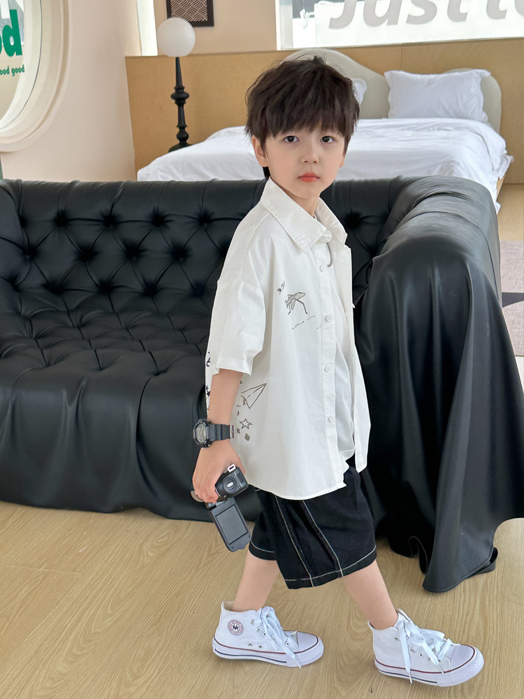 아동 셔츠 여름 소년 새로운 낙서 비행기 반팔 아기 한국 스타일 캐주얼 아동 셔츠