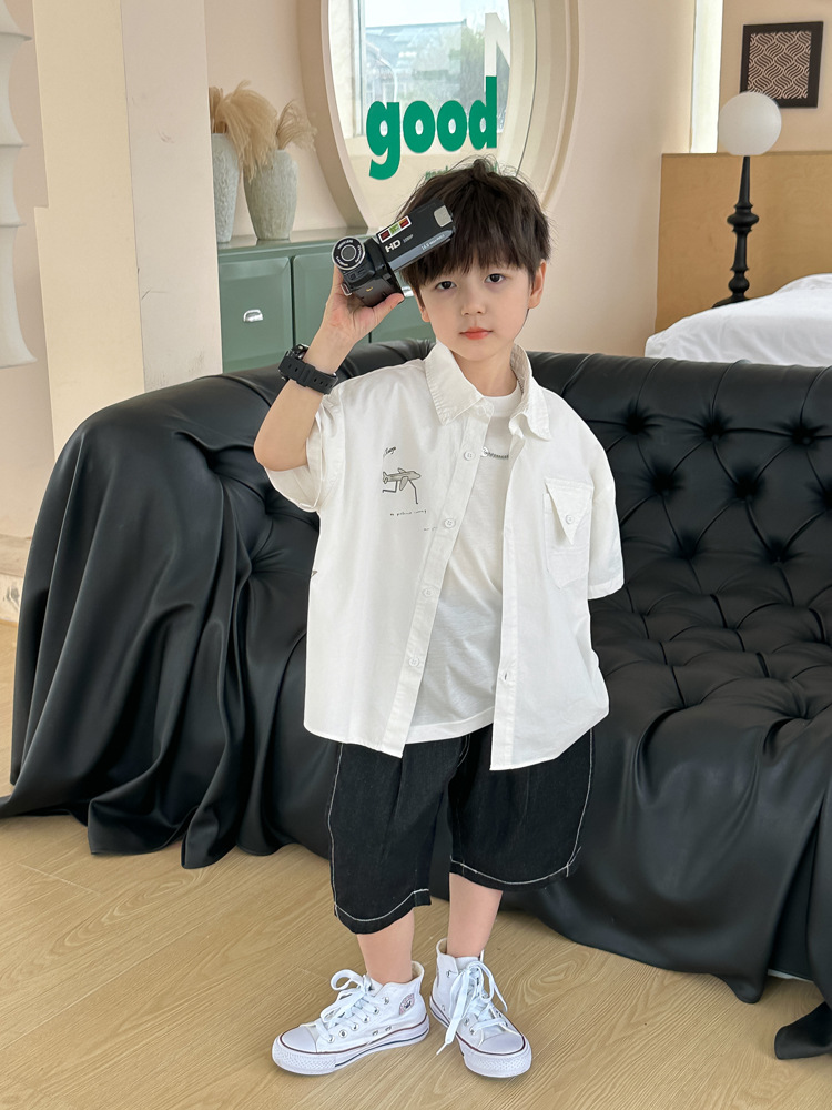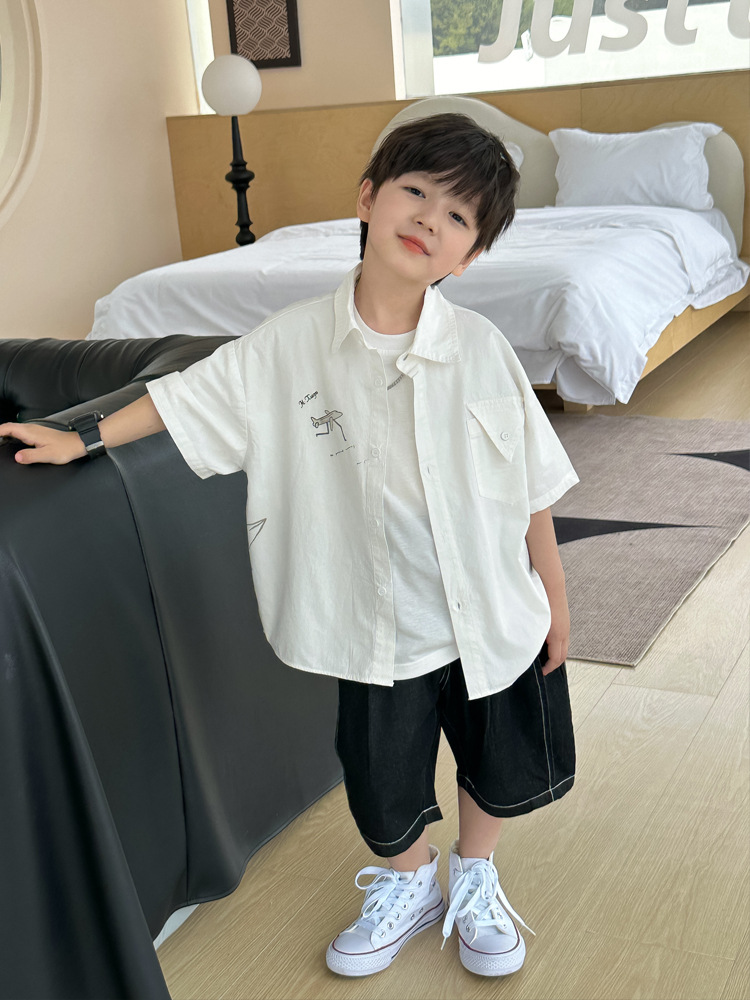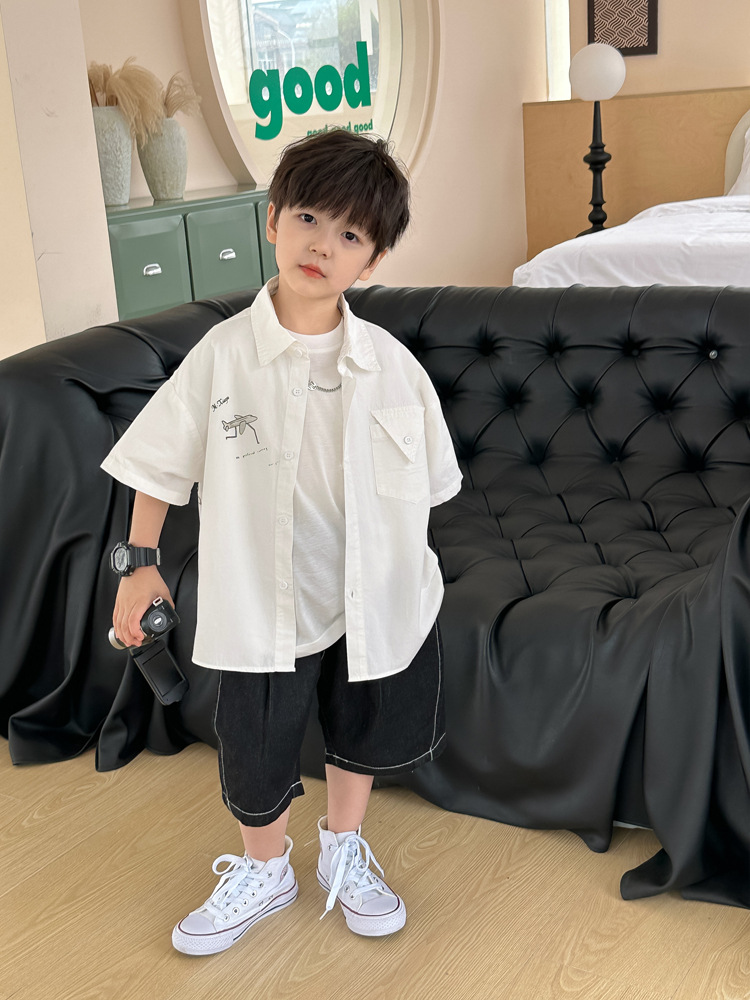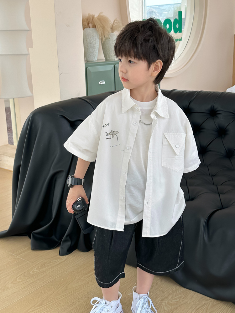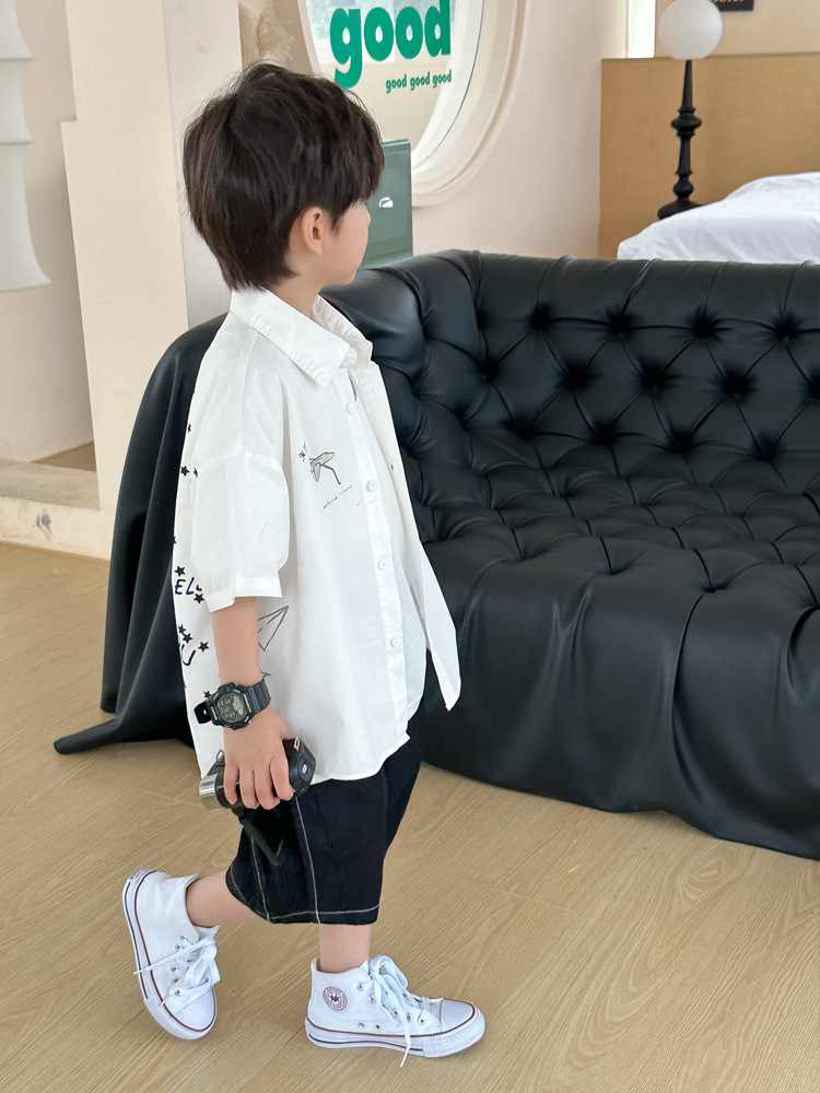 아동 셔츠 여름 소년 새로운 낙서 비행기 반팔 아기 한국 스타일 캐주얼 아동 셔츠스토어 가기