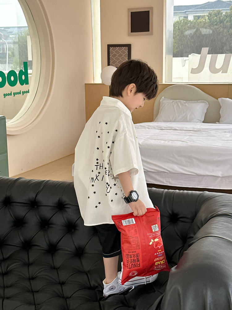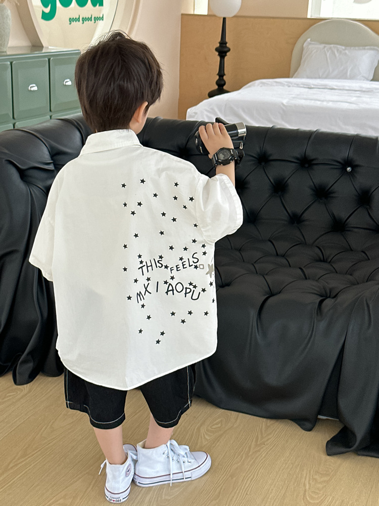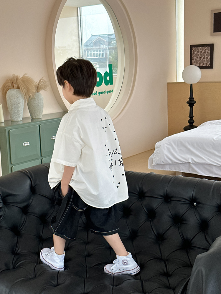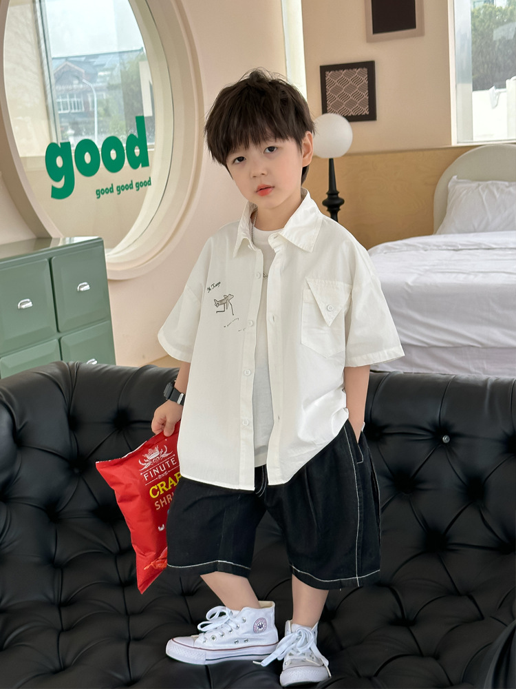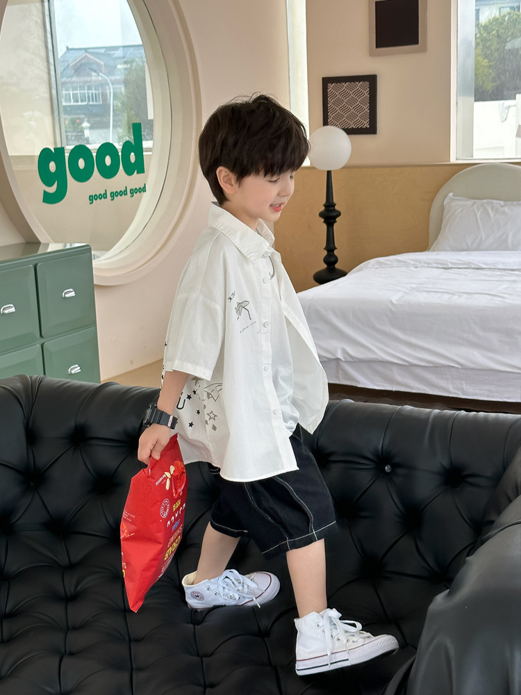 아동 셔츠 여름 소년 새로운 낙서 비행기 반팔 아기 한국 스타일 캐주얼 아동 셔츠스토어 가기
