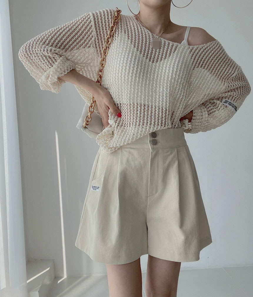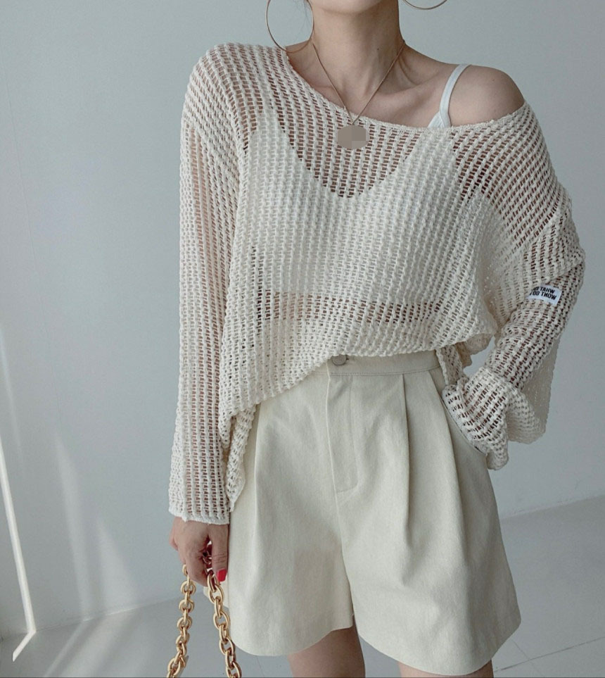 한국 2024 여름 간단한 라운드 넥 풀오버 루즈 탑 얇은 할로우 아웃 선 스크린 니트 블라우스 여성스토어 가기