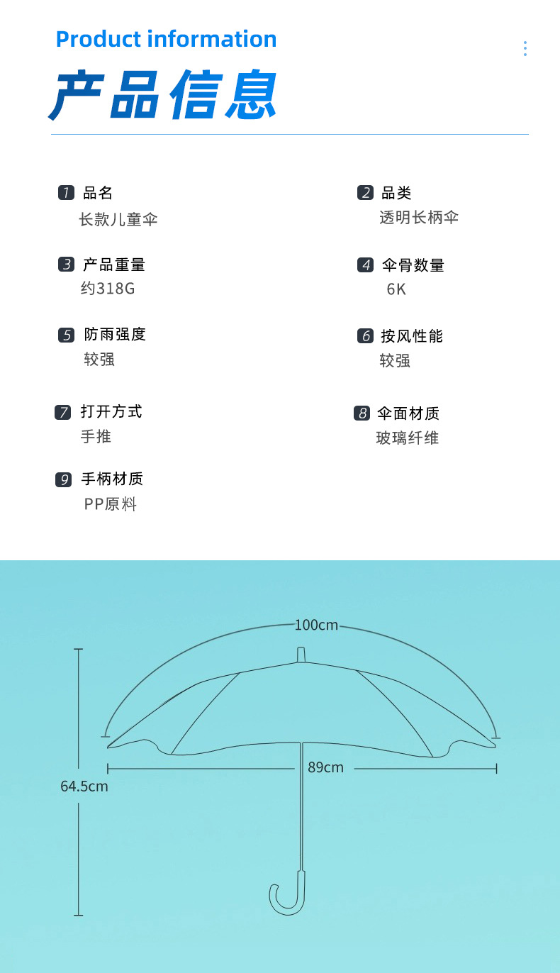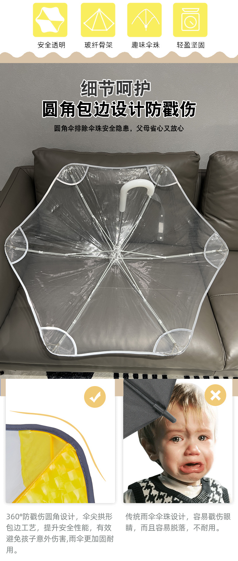일본 안전 라운드 코너 어린이 우산 투명 POE 우산 가장자리 반사 스트립 안티 핀치 국경 간 전자 상거래 대외 무역스토어 가기