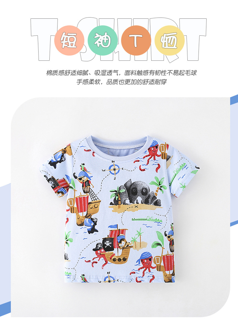 말위 소년 둥근 목 셔츠 여름 새로운 유럽과 미국의 어린이 레저 인쇄 짧은 소매 어린이 티셔츠 도매