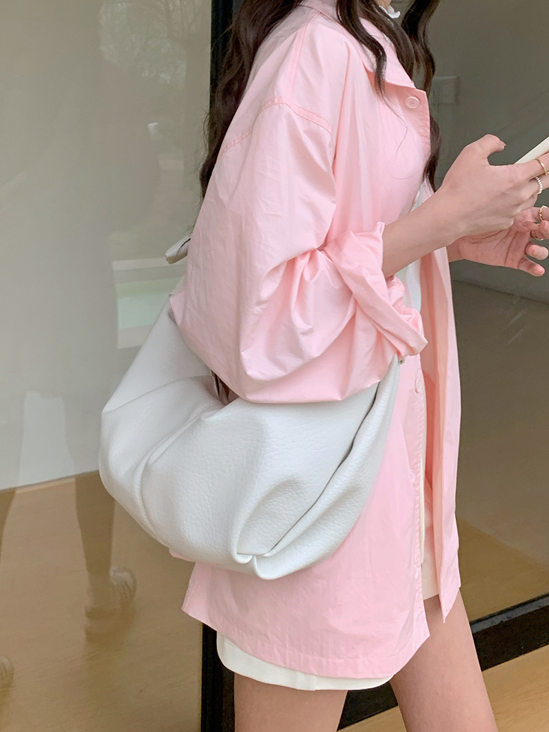 한국 스타일, 대용량 레트로 부드러운 피부 주름 만두 가방 게으른 스타일 캐주얼 올 매치 통근 어깨 크로스 바디 백