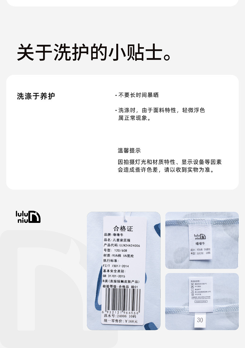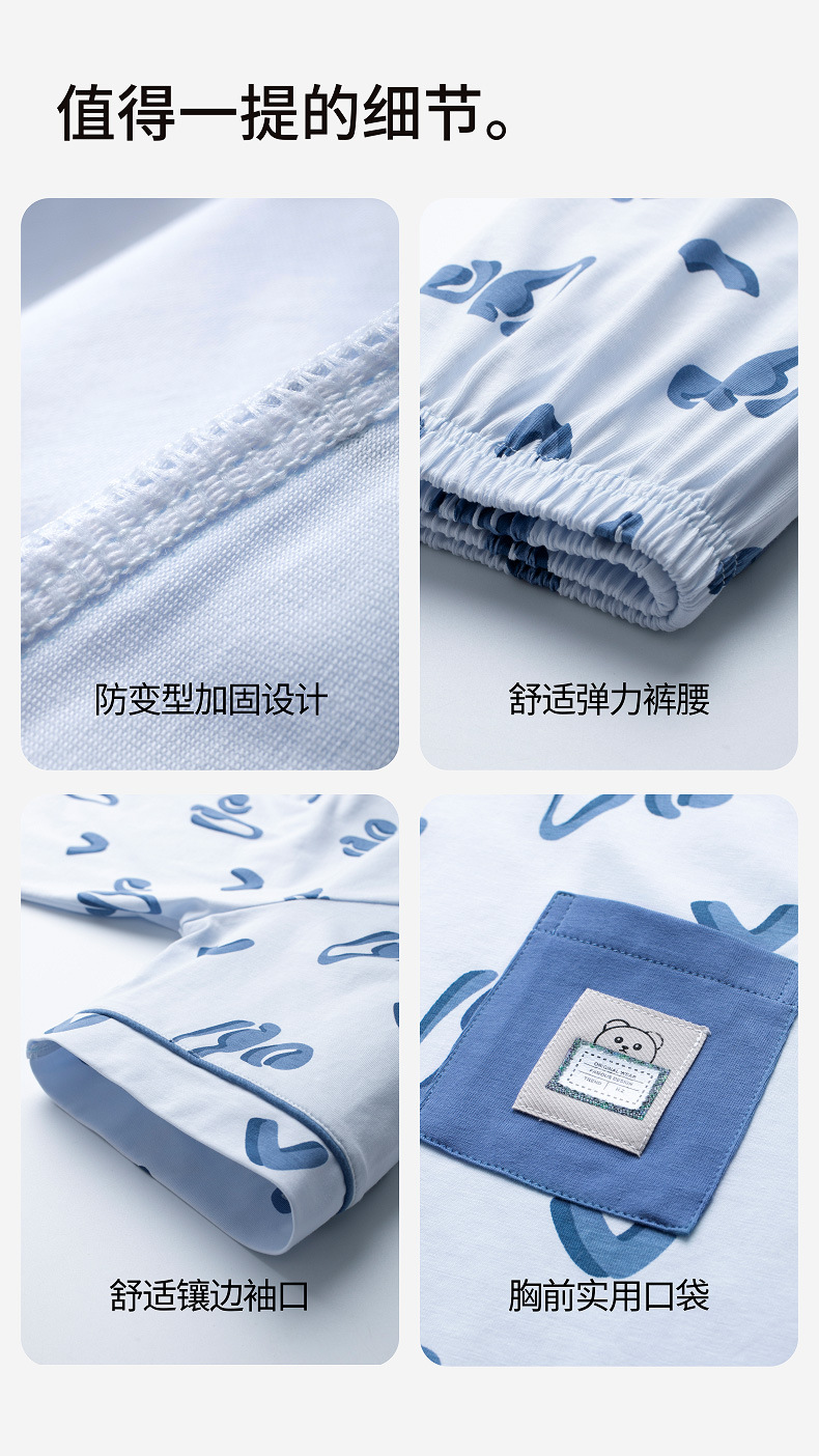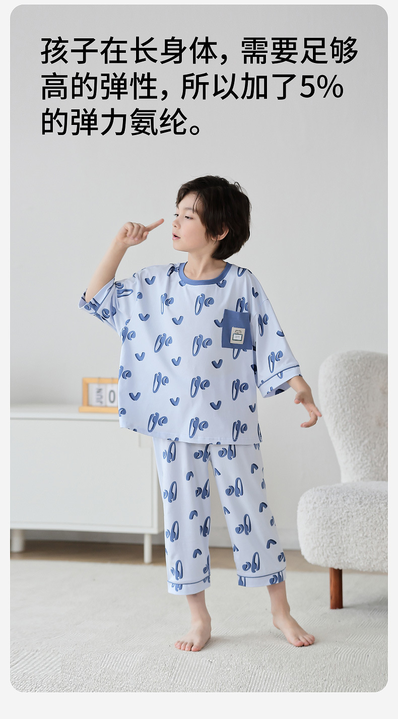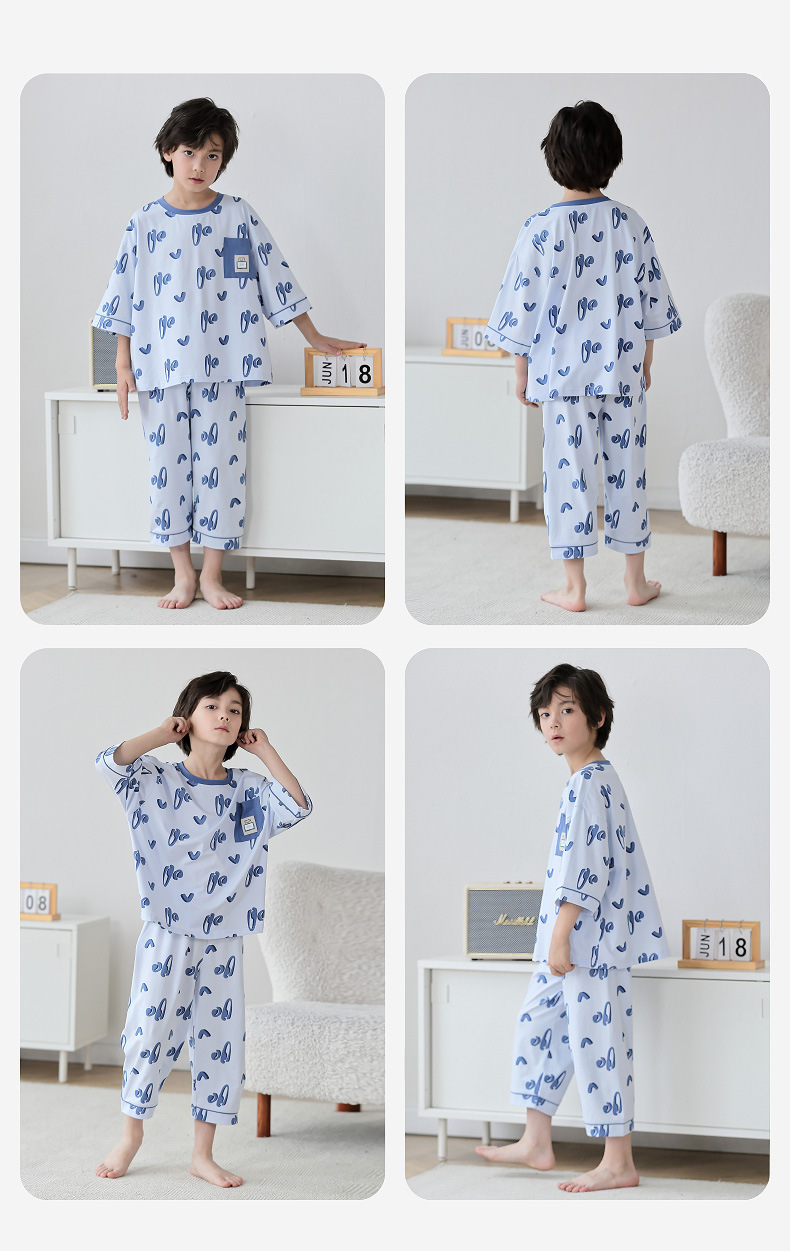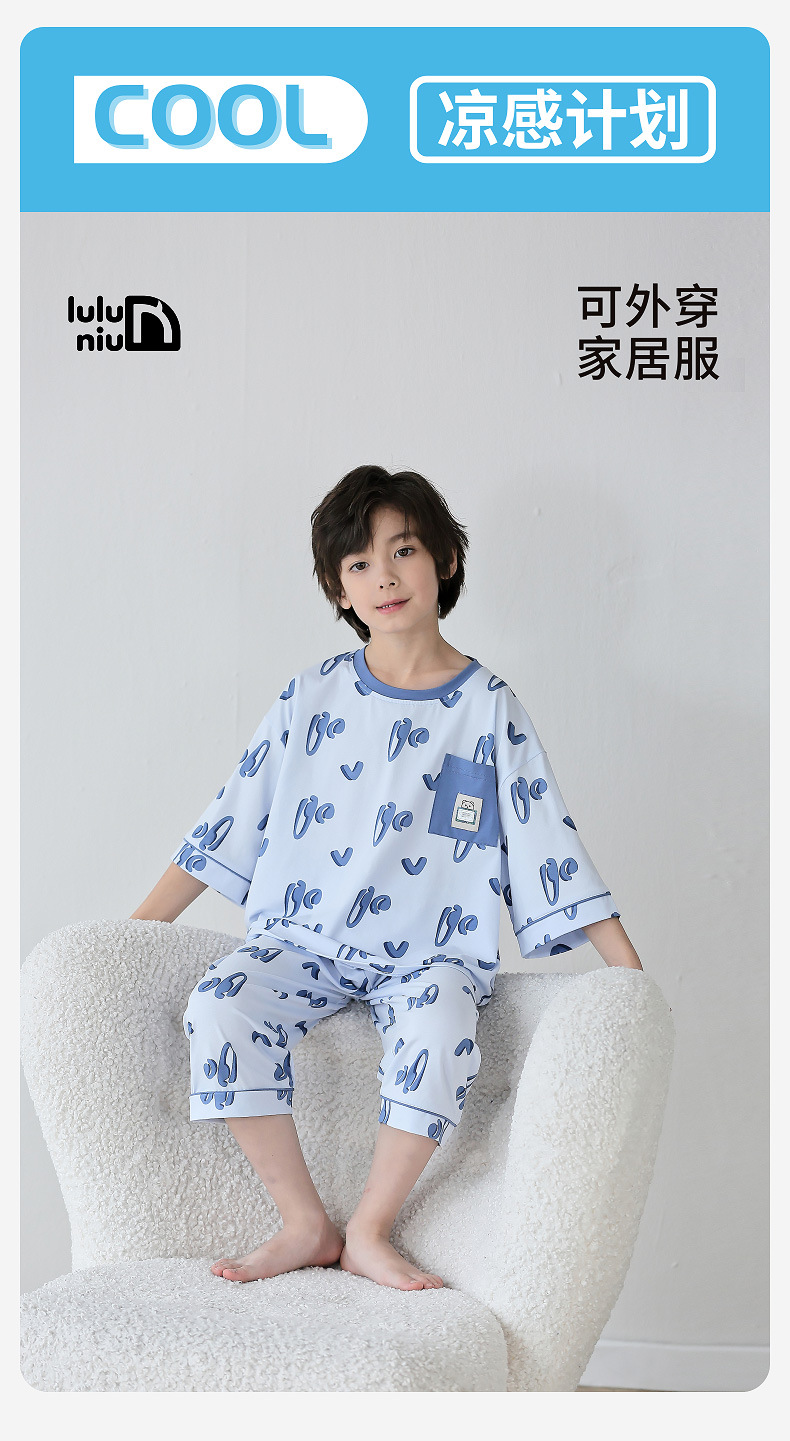 Lulu Niu 2024 여름 어린이 잠옷 소년 순면 세븐-슬리브 소년의 중대형 어린이 여름 얇은 에어컨 옷스토어 가기