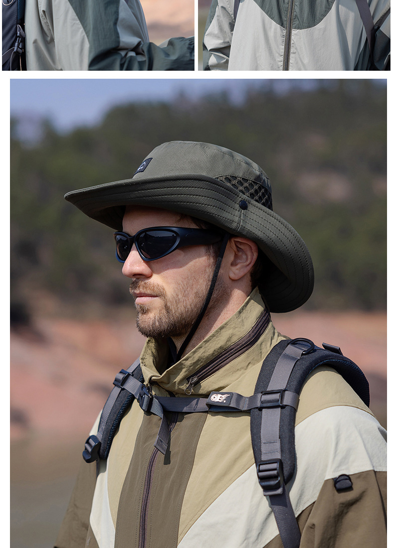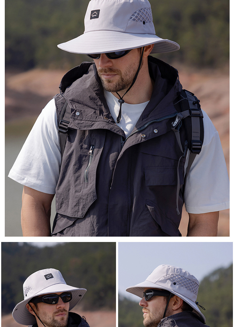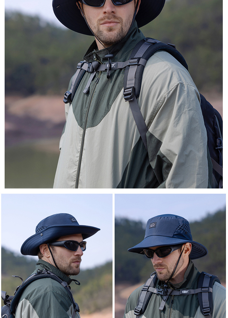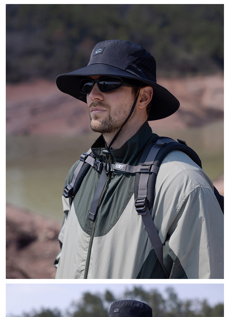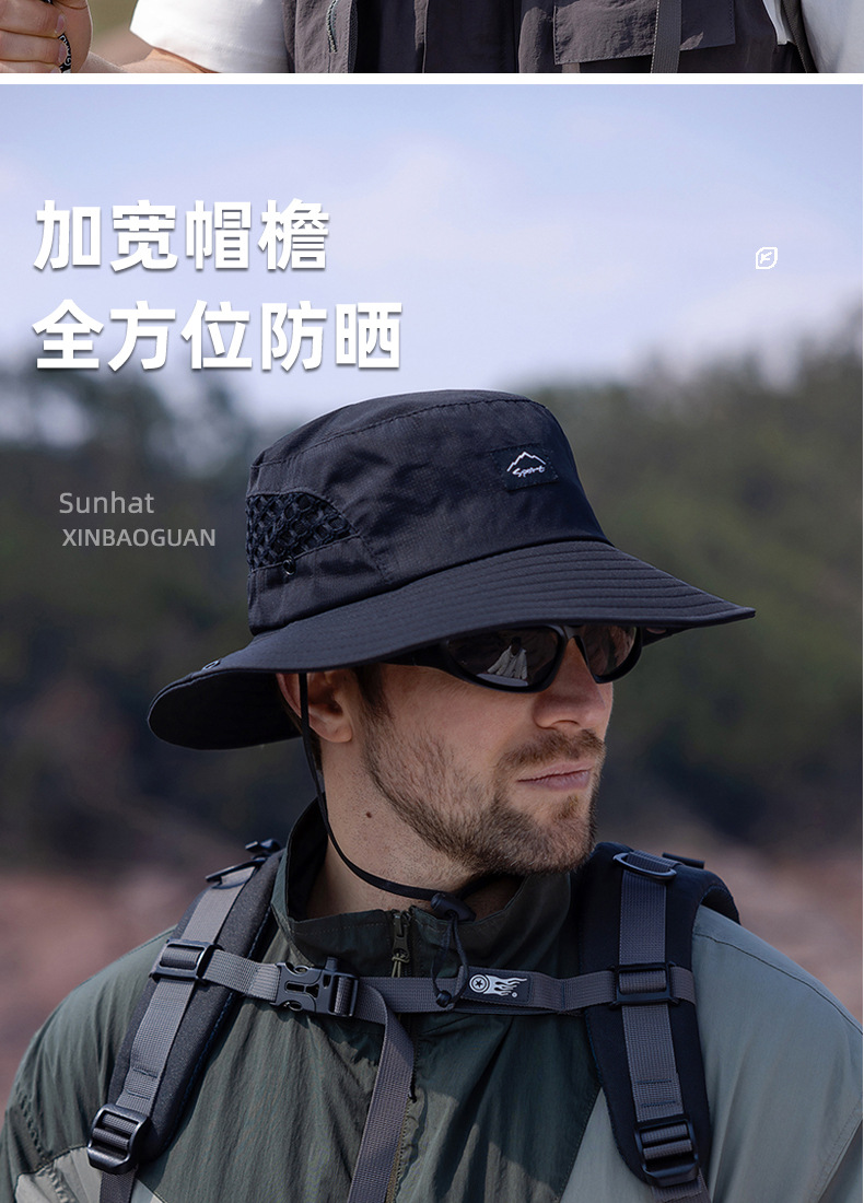 9228 여름 남자 통기성 태양 모자 야외 낚시 모자 큰 챙이 분지 모자 등산 선 스크린 어부 모자 국경스토어 가기