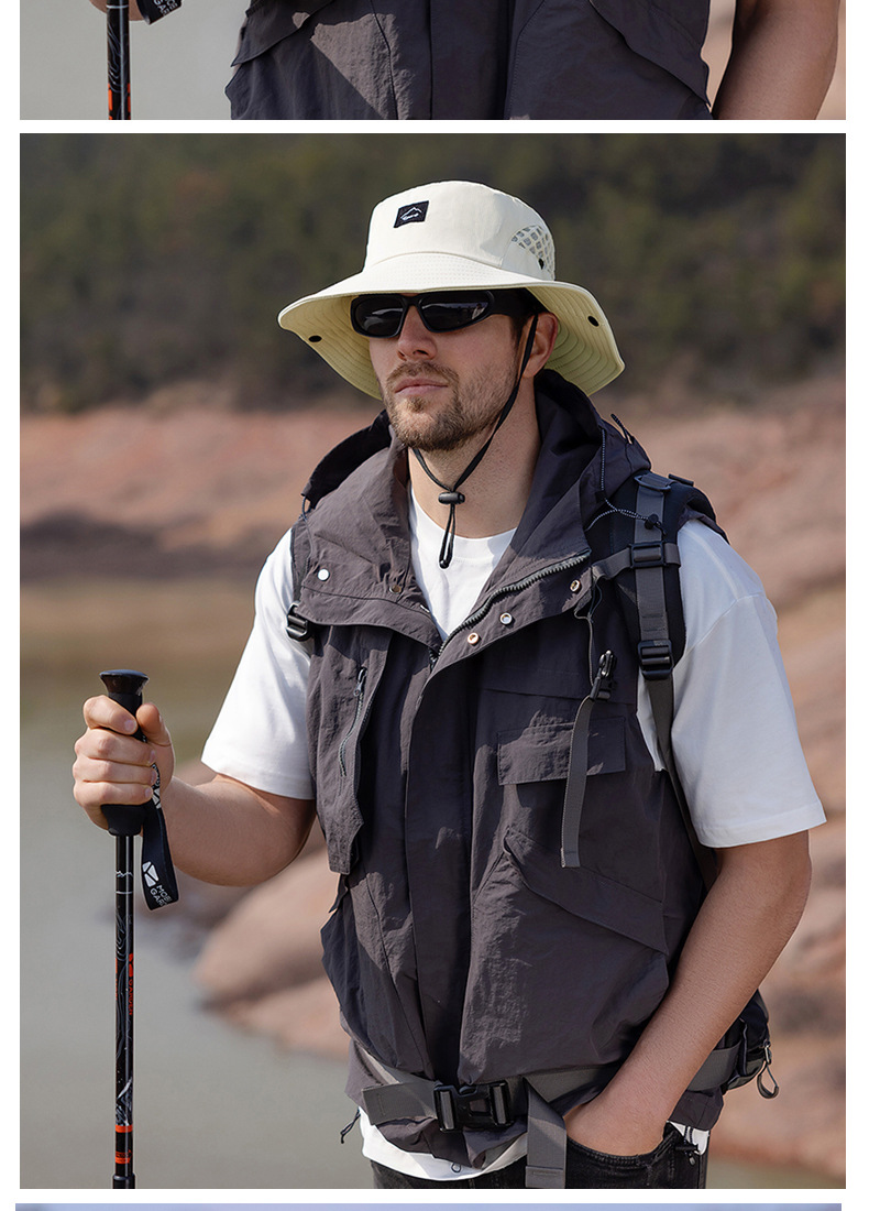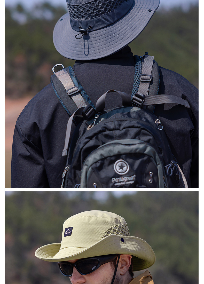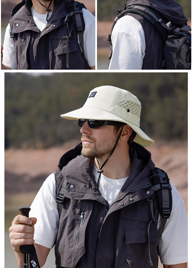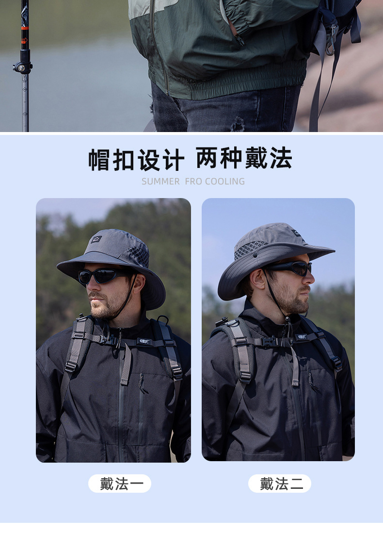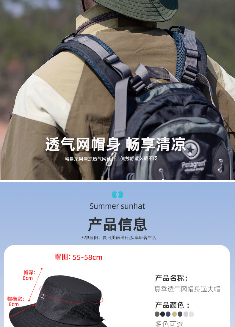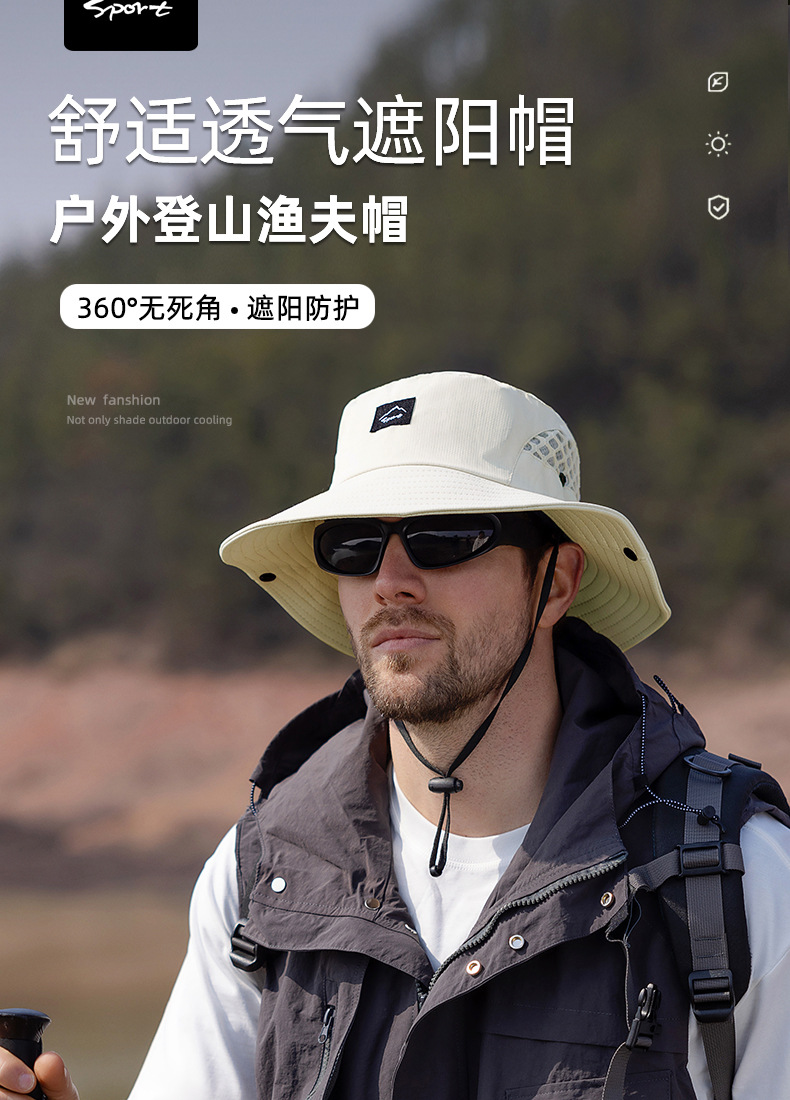 9228 여름 남자 통기성 태양 모자 야외 낚시 모자 큰 챙이 분지 모자 등산 선 스크린 어부 모자 국경스토어 가기