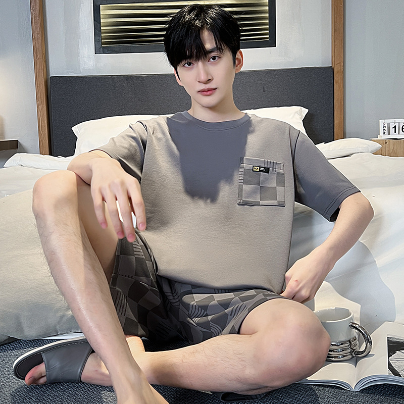 여름 반팔 반바지 남자 청소년 캐주얼 여름 얇은 대형 의류 투피스 홈 세트스토어 가기