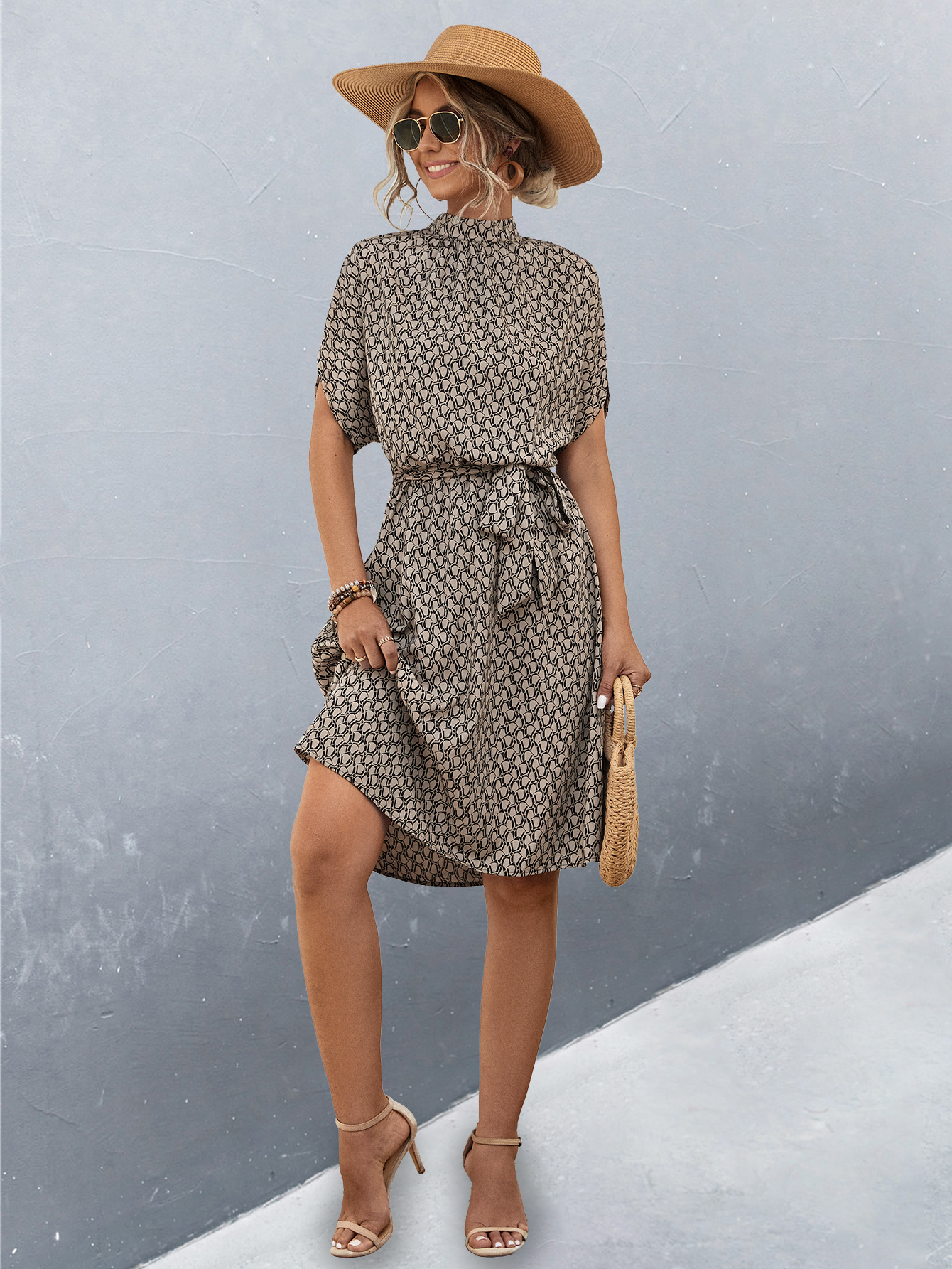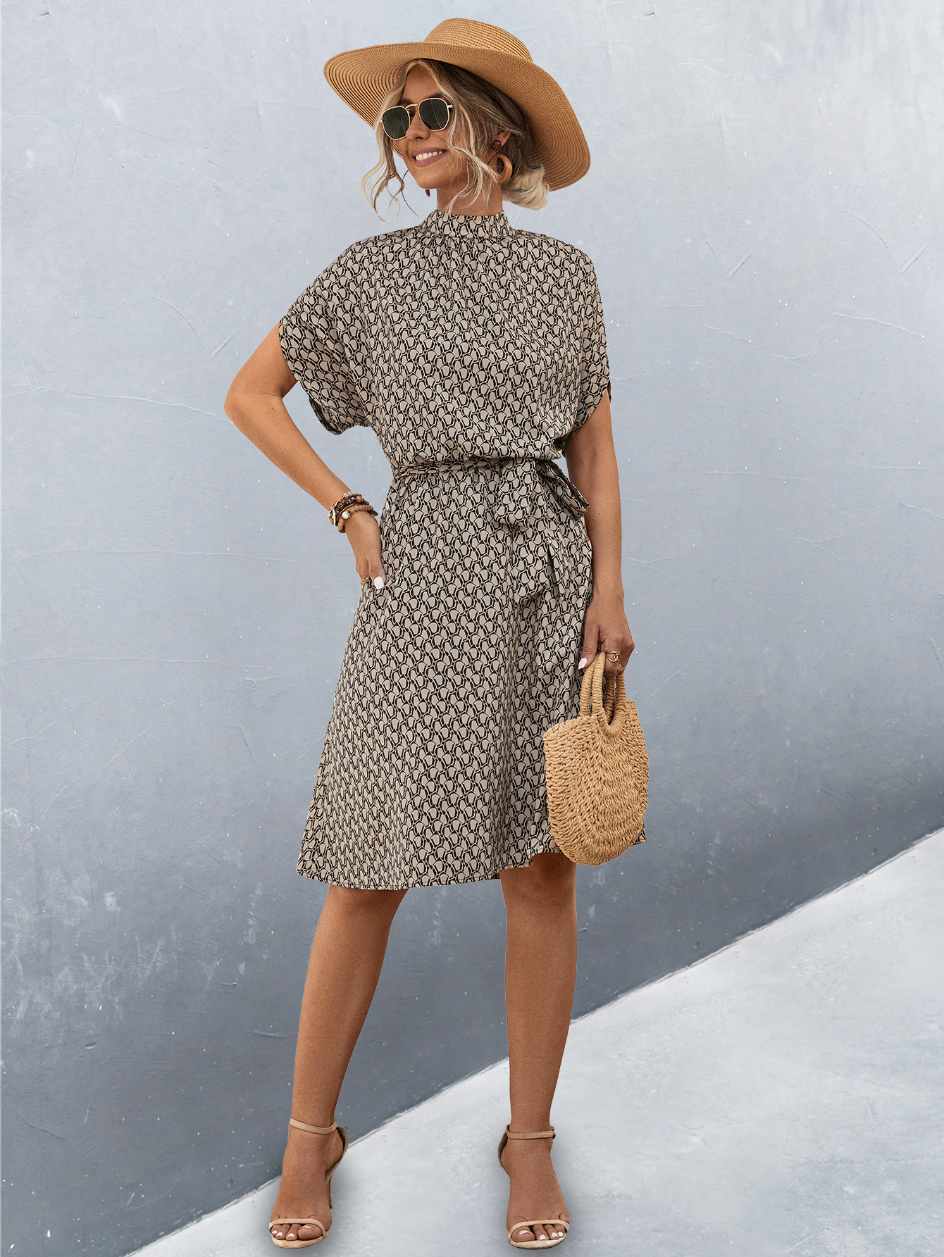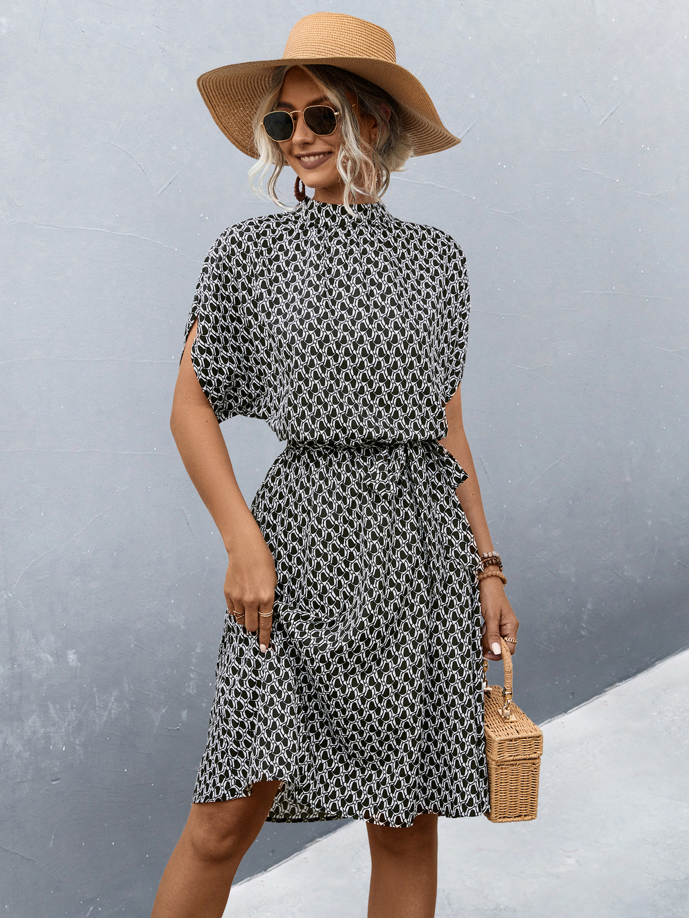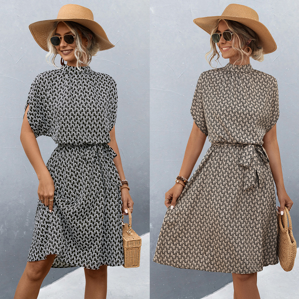 2024 봄과 여름 새로운 국경 유럽과 미국 여성 의류 아마존 독립 역 핫 프린트 반팔 원피스