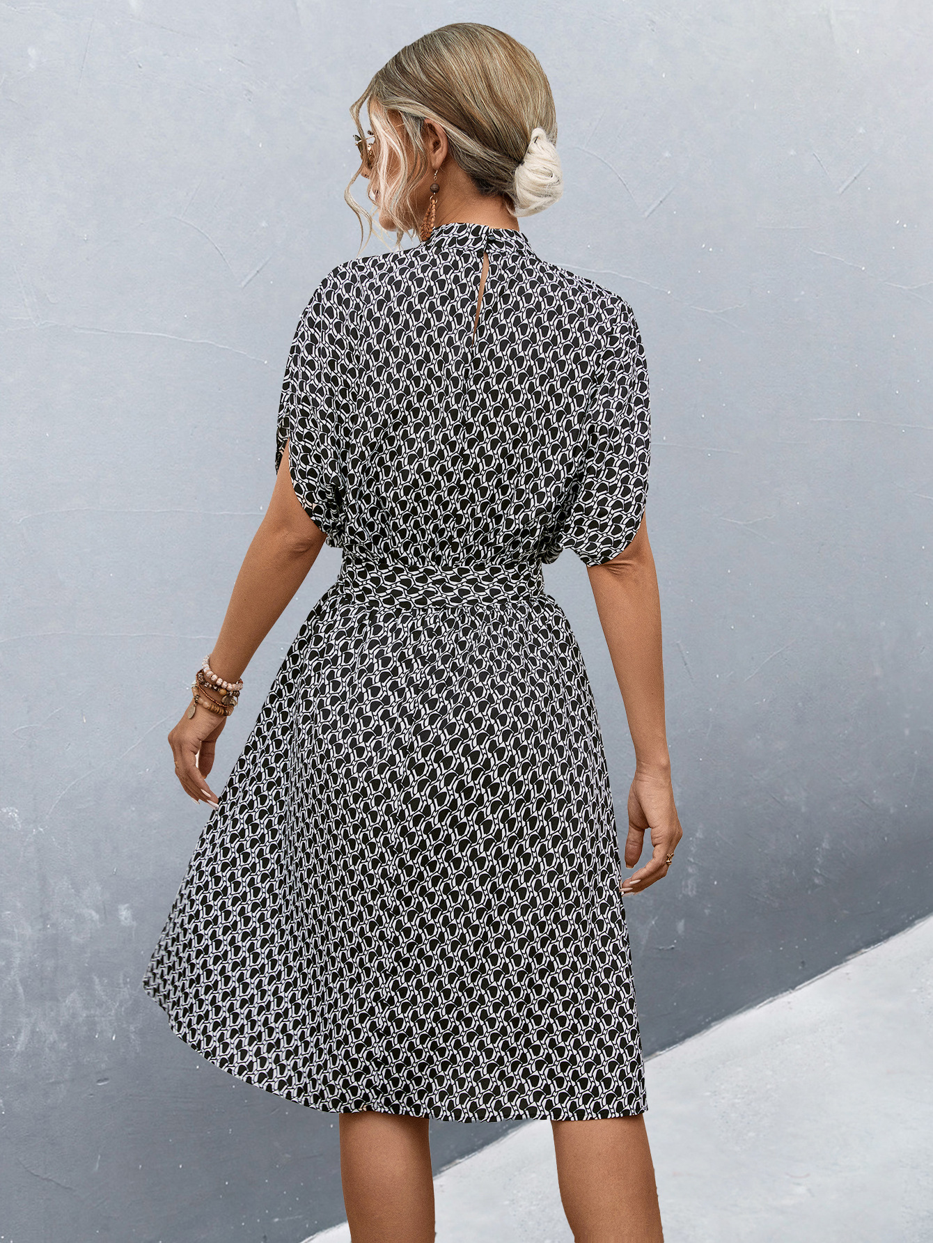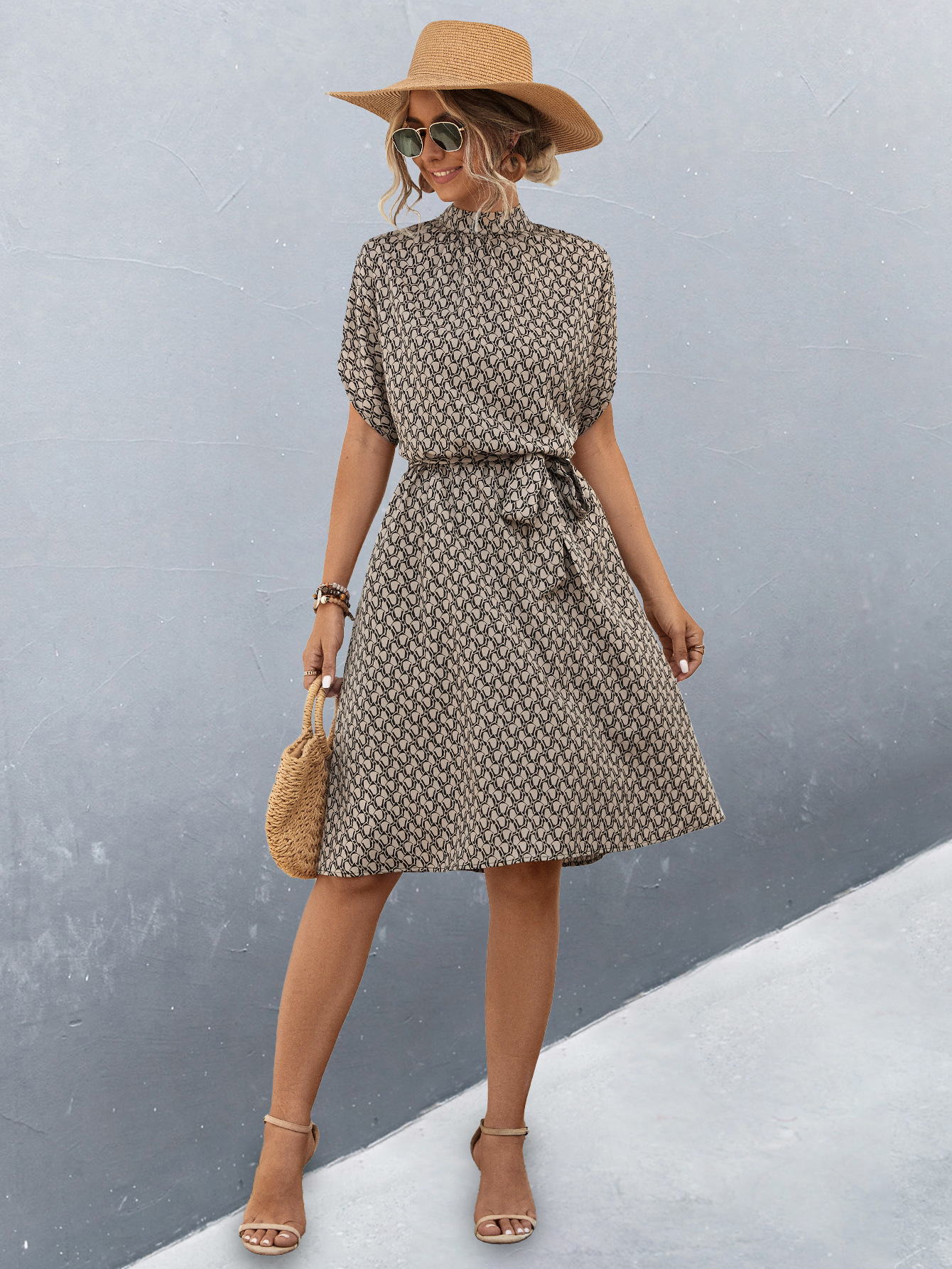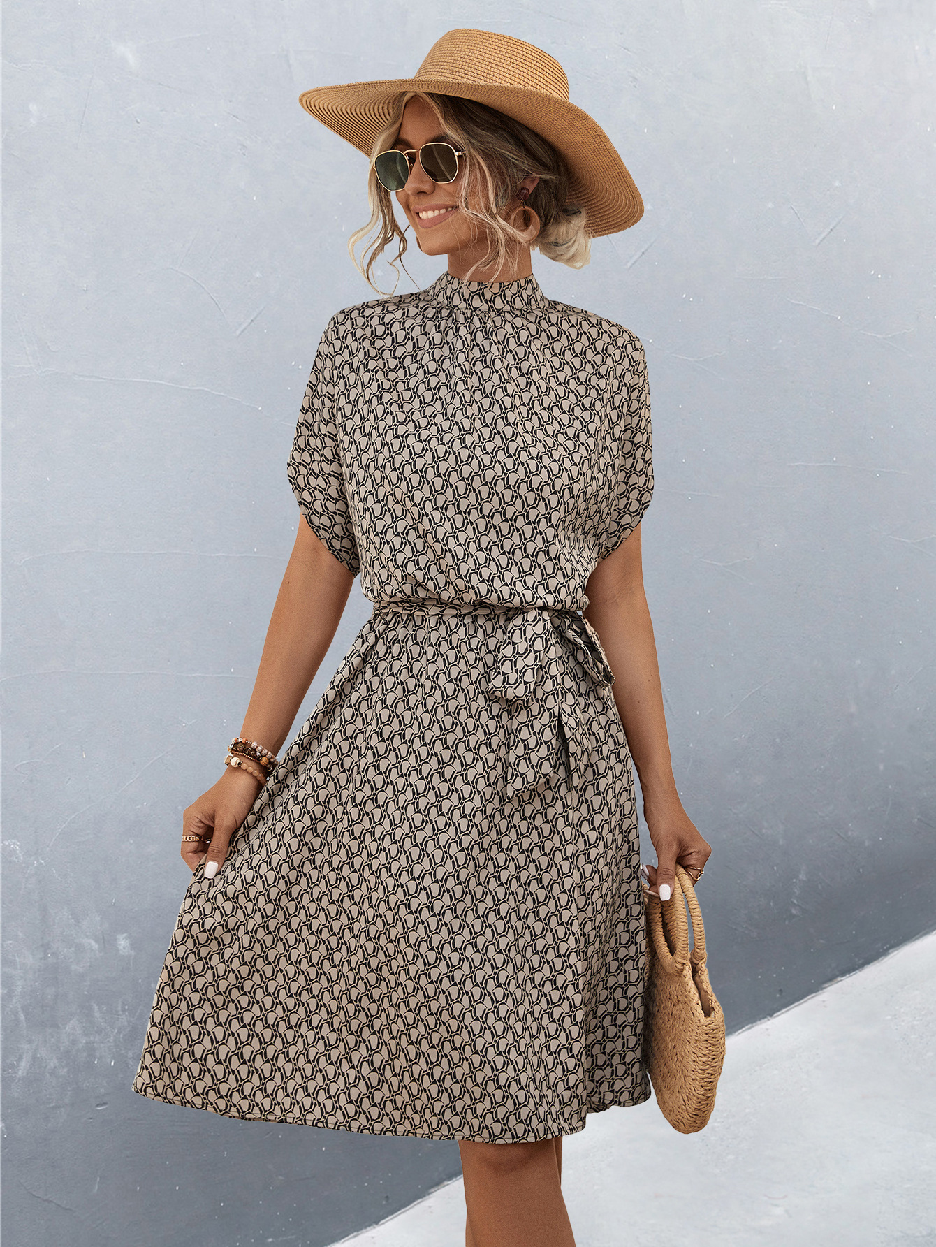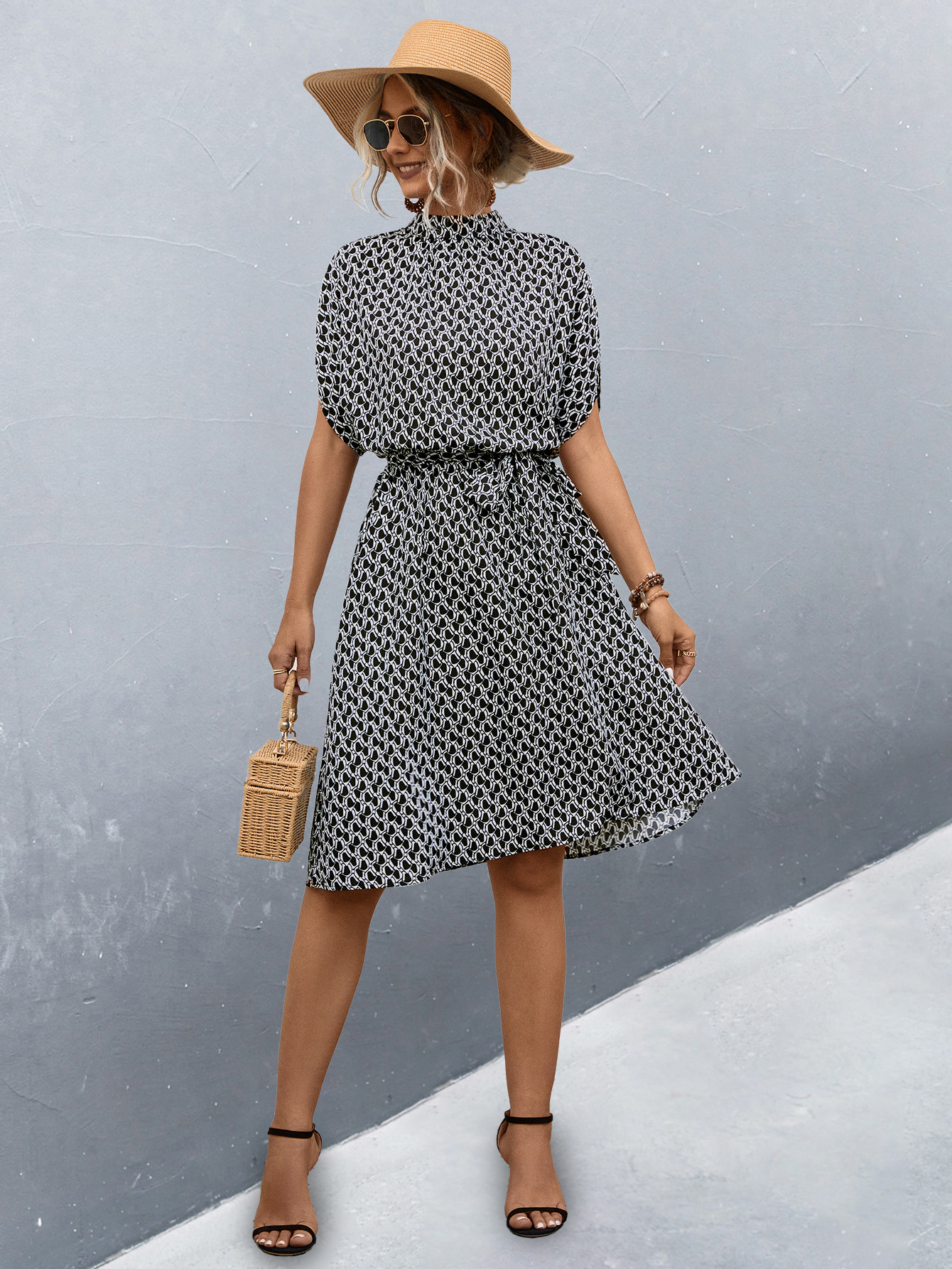 2024 봄과 여름 새로운 국경 유럽과 미국 여성 의류 아마존 독립 역 핫 프린트 반팔 원피스