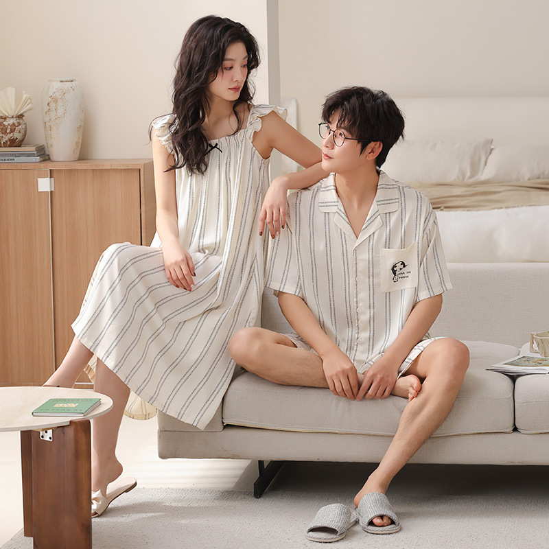 아이스 실크 커플 잠옷 여름 하이 엔드 센스 섹시 슬립 스커트 나이트 가운 얇은 반팔 실크 남성과 여성의 세트