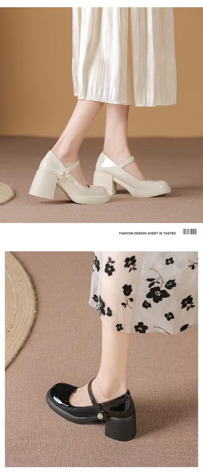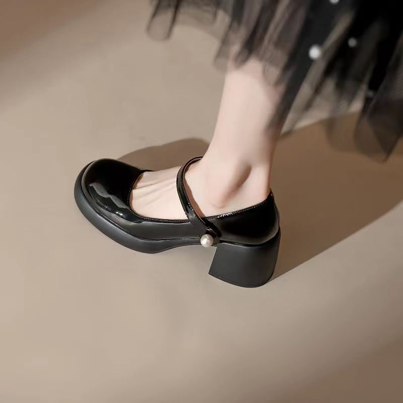 여성을위한 프랑스 메리 제인 두꺼운 굽 하이힐 2024 여름 새 스타일 신발 부드러운 밑창 다목적 웨딩 스커트 신발