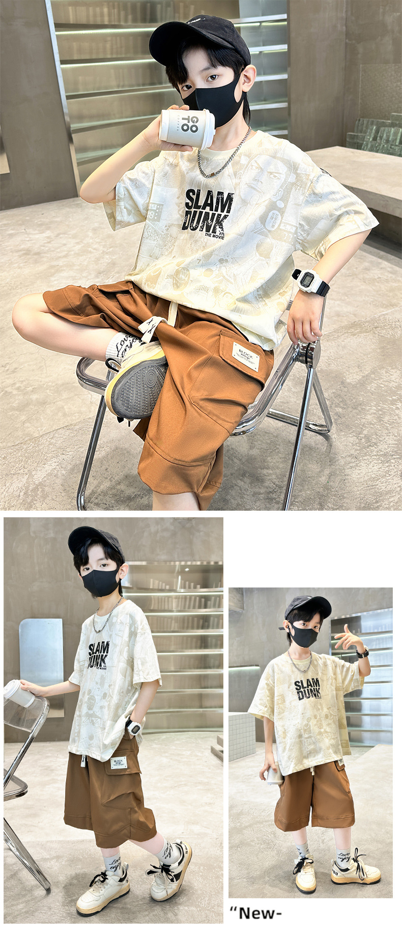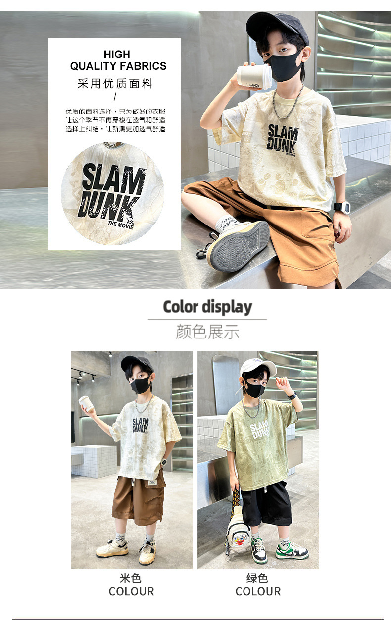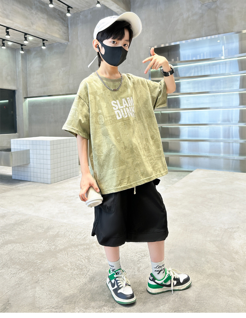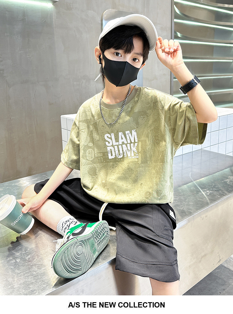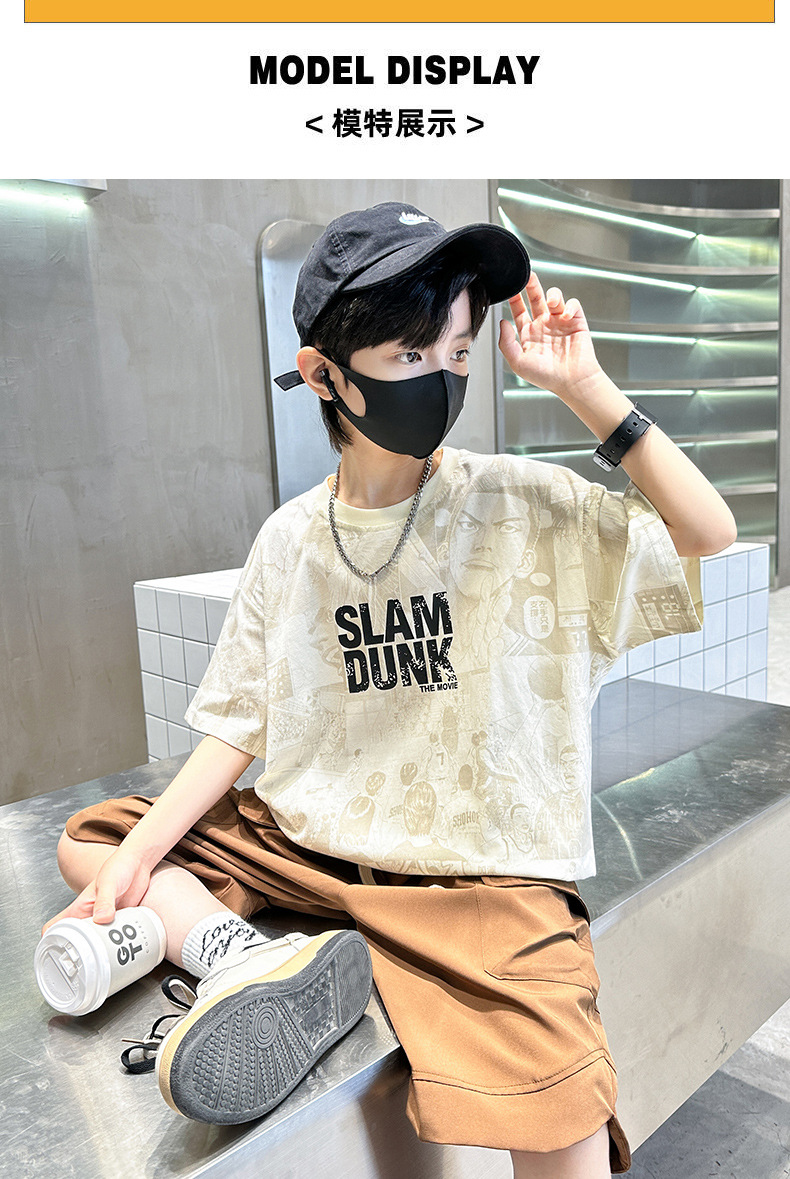 소년 여름 반팔 정장 순수 코튼 2025 새로운 잘 생긴 소년 전체 인쇄 슬램 덩크 중대형 어린이 정장 유행스토어 가기