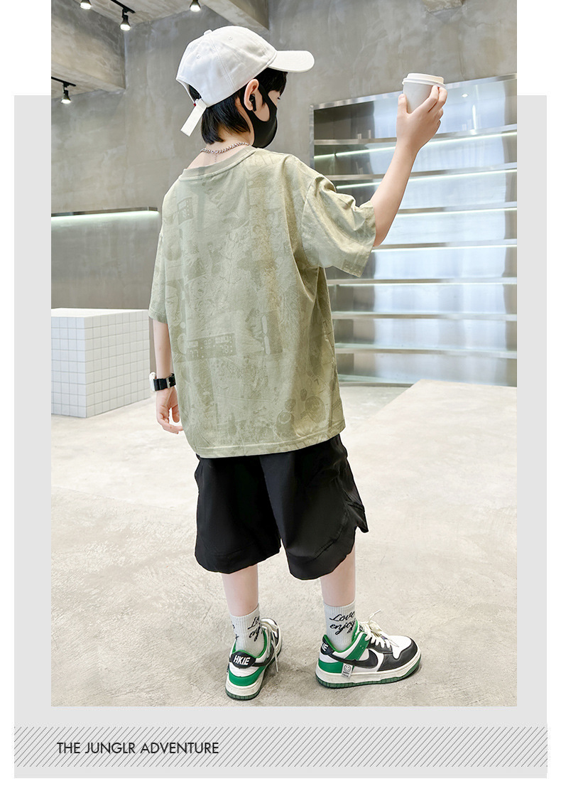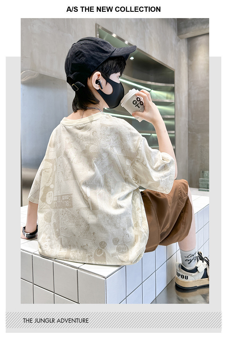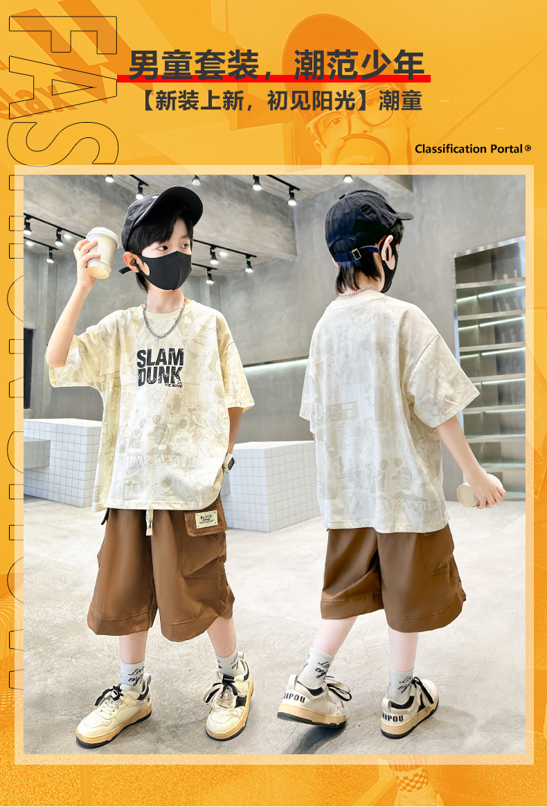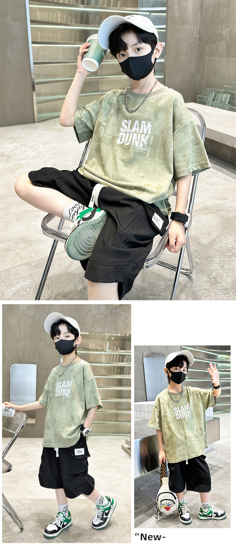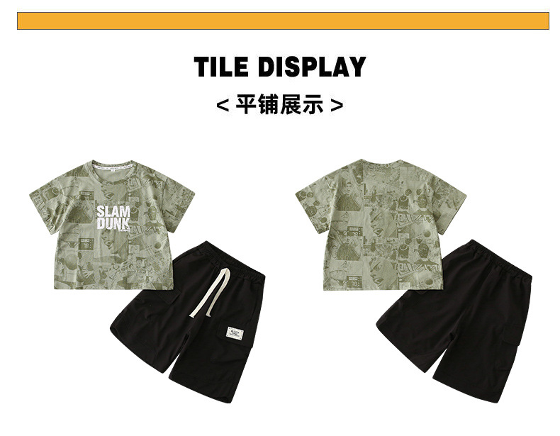 소년 여름 반팔 정장 순수 코튼 2025 새로운 잘 생긴 소년 전체 인쇄 슬램 덩크 중대형 어린이 정장 유행스토어 가기