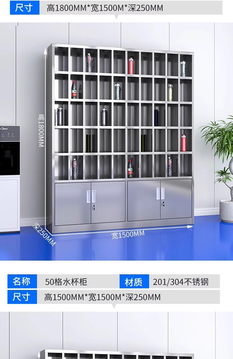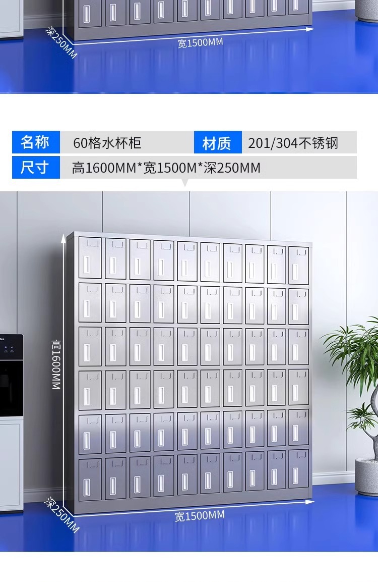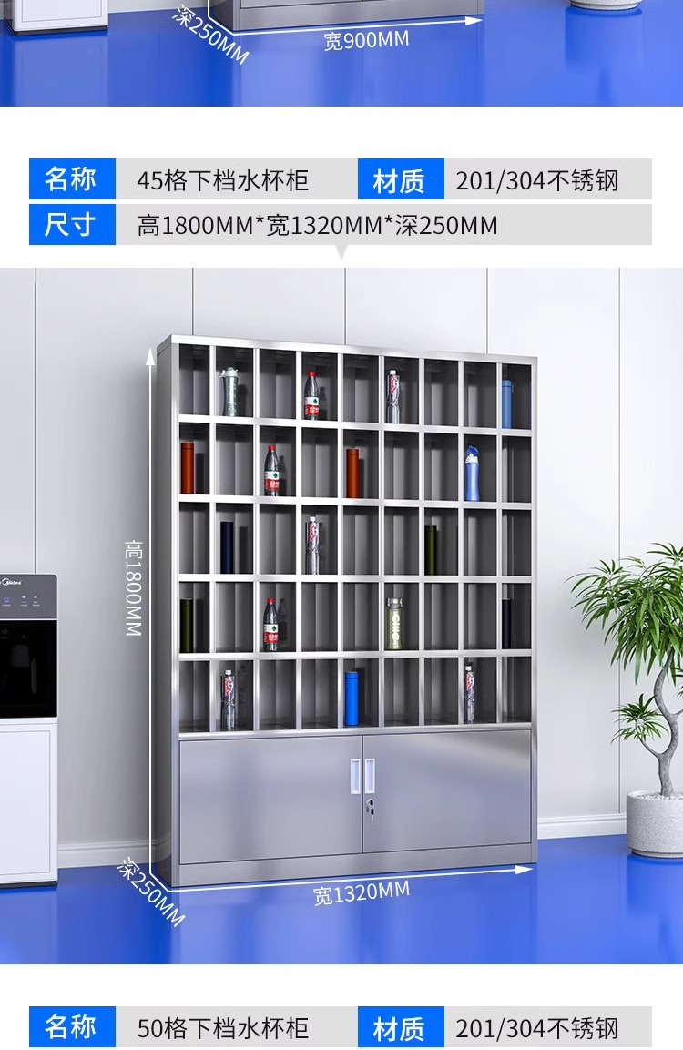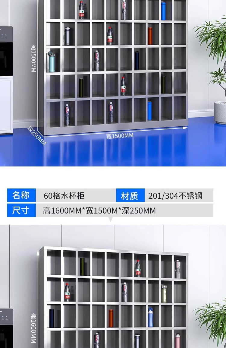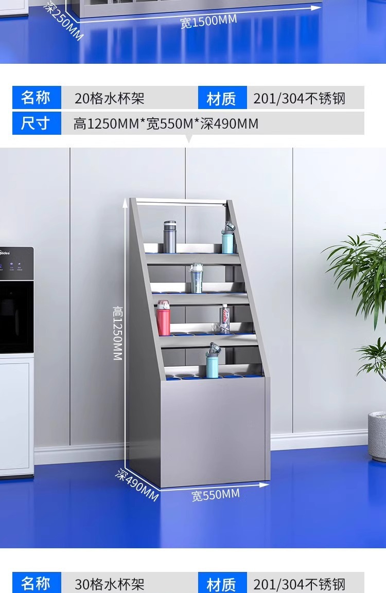 不锈钢水杯柜工厂车间员工水杯存放柜茶水间水杯收纳架茶杯储存柜