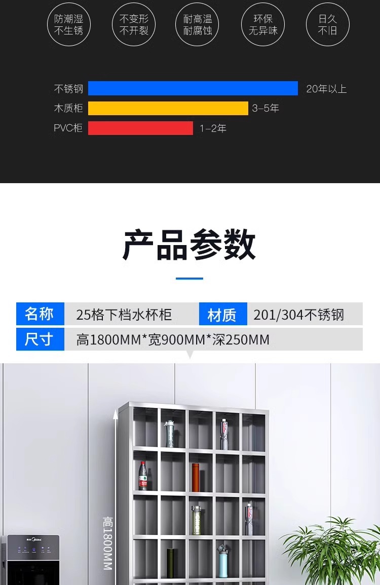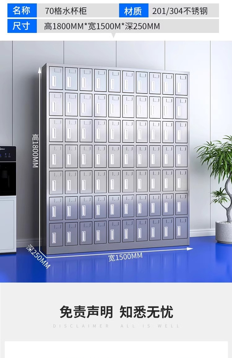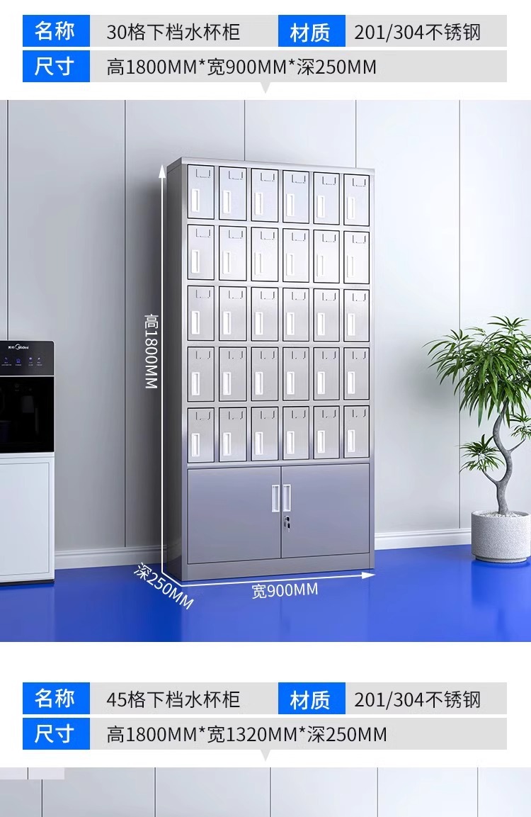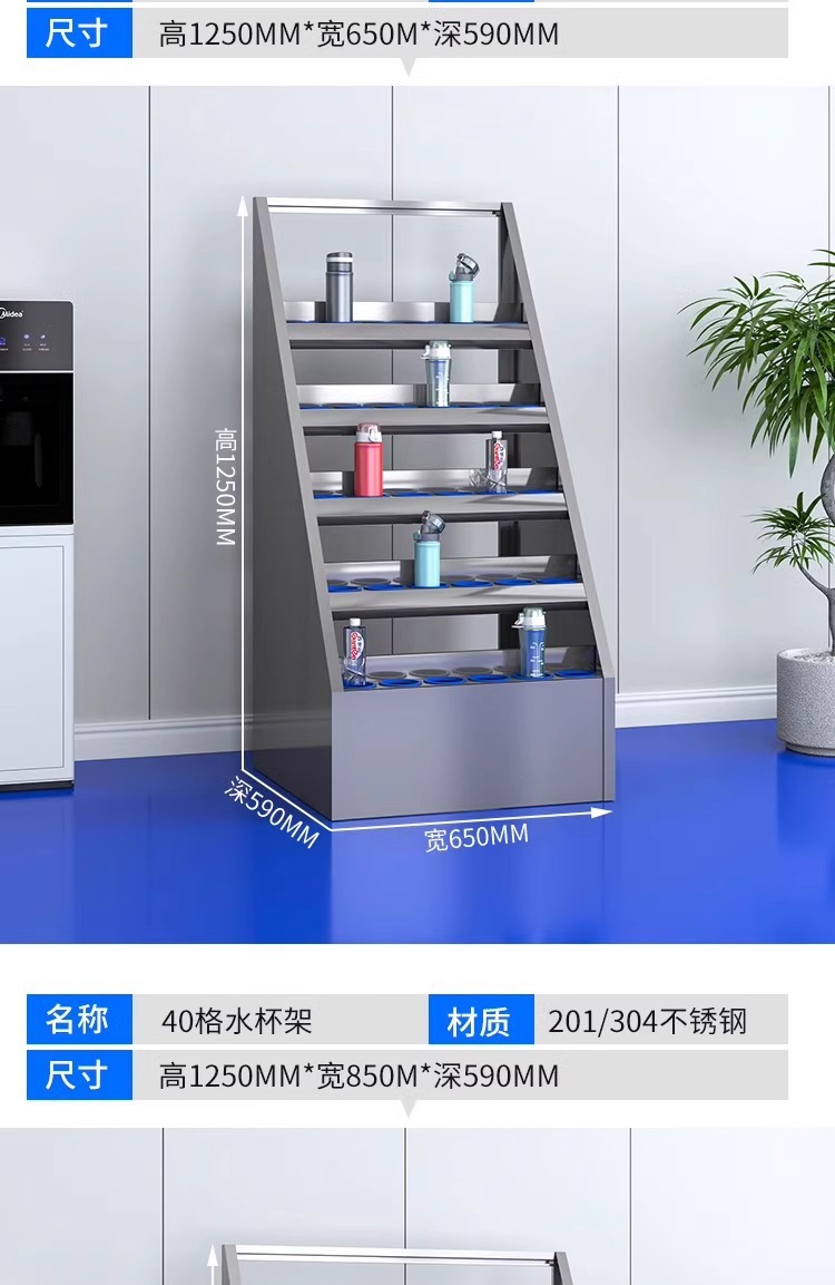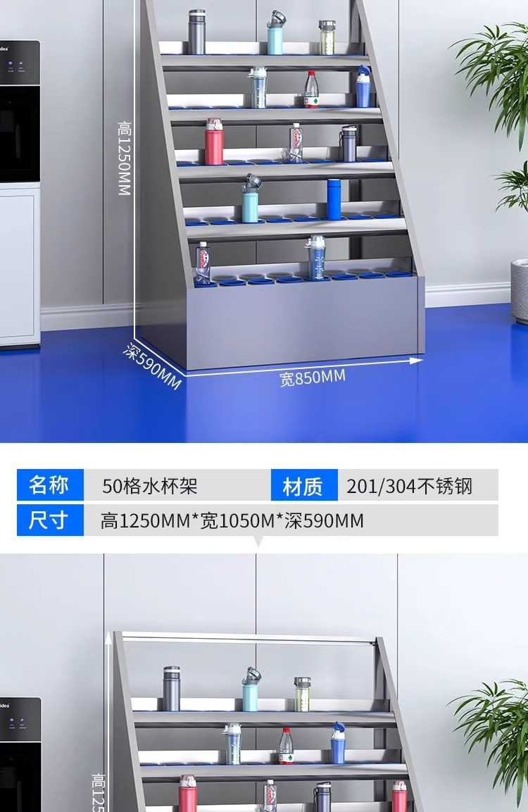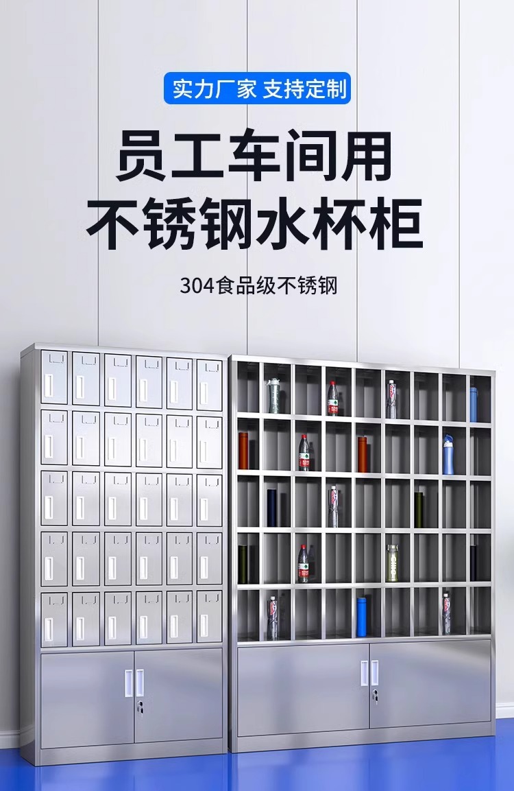 不锈钢水杯柜工厂车间员工水杯存放柜茶水间水杯收纳架茶杯储存柜