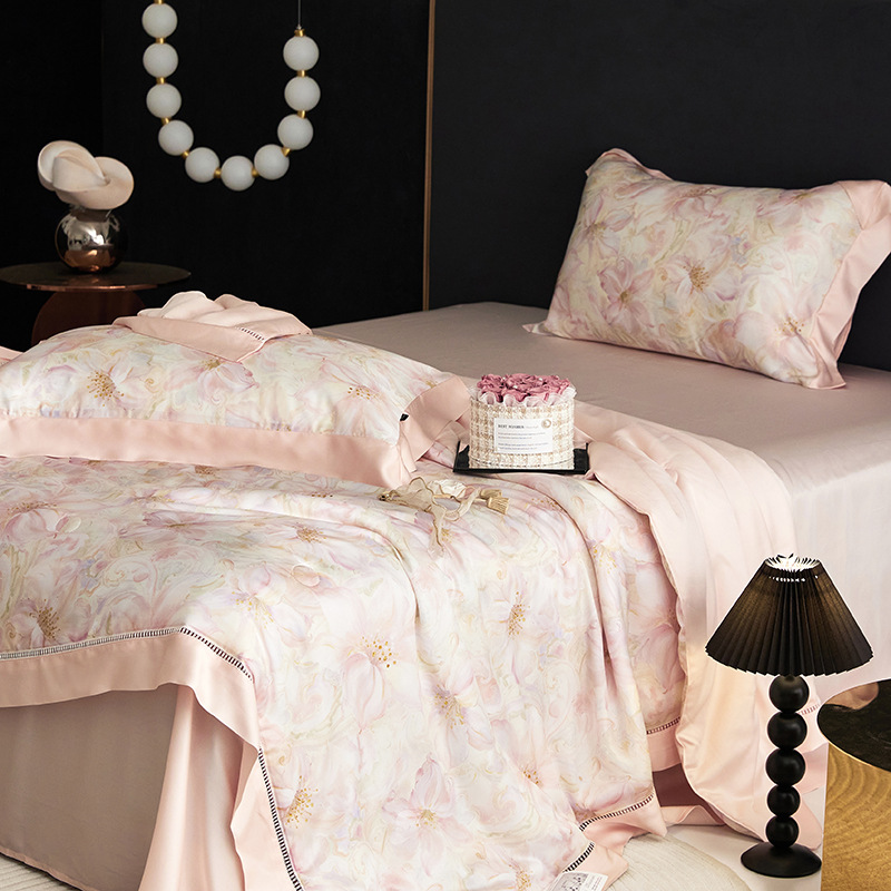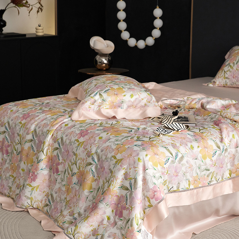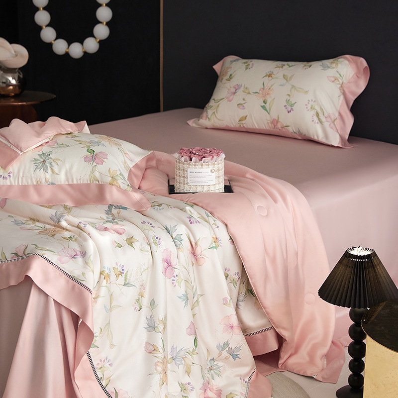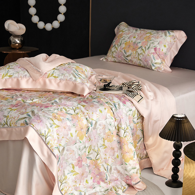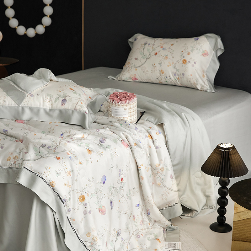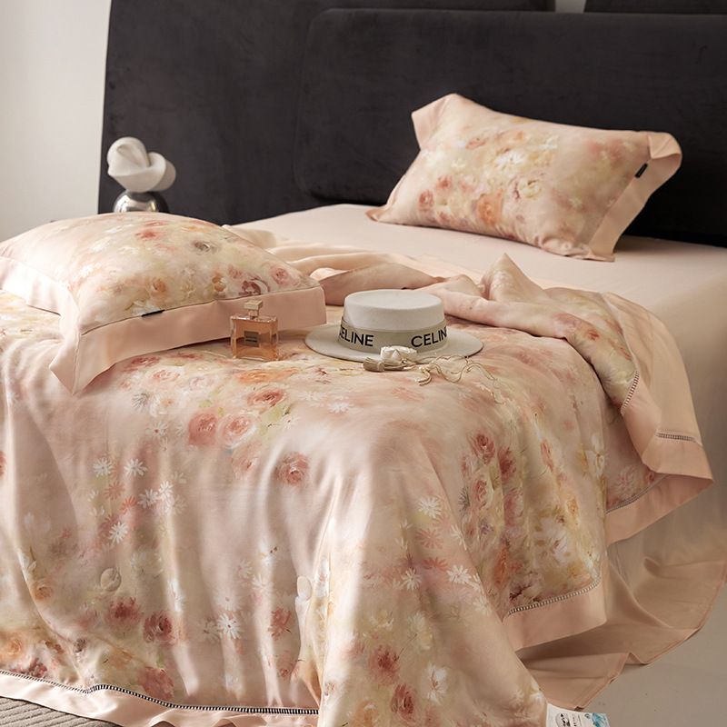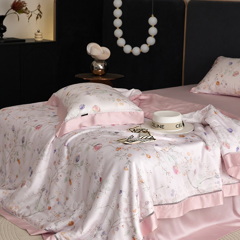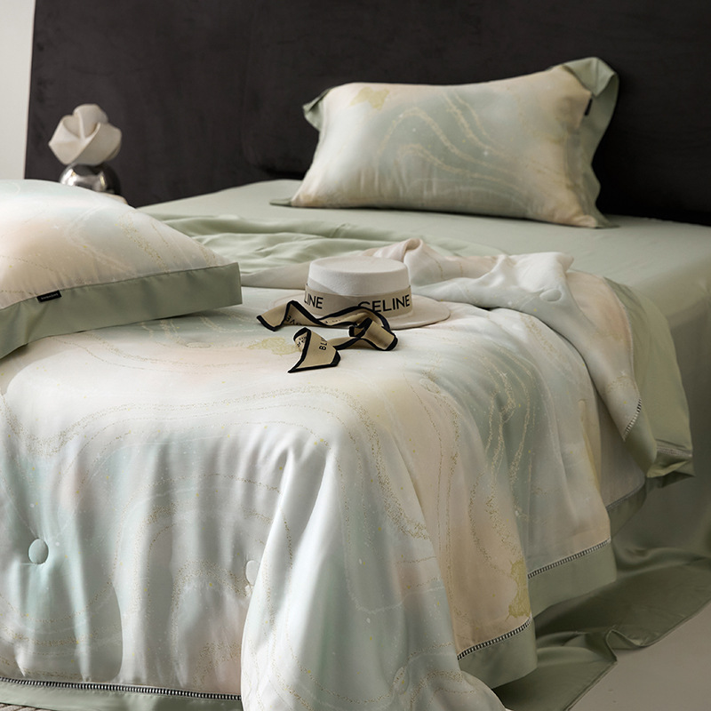여름용 60수 텐셀 제비집 단백질 여름 시원한 이불 4종 세트 A급 산모 및 유아용 시원하고 부드러운 세탁 가능 에어컨용스토어 가기