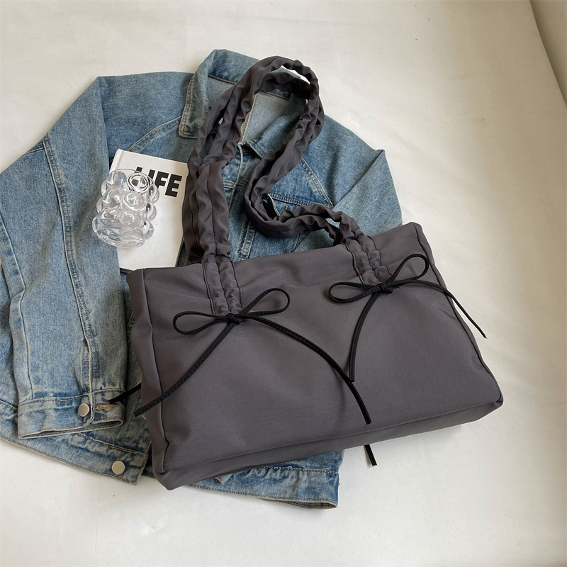 유행 주름 대용량 가방 여성의 2024 봄과 여름 새로운 한국 스타일 간단한 캐주얼 토트 백 통근 어깨 가방