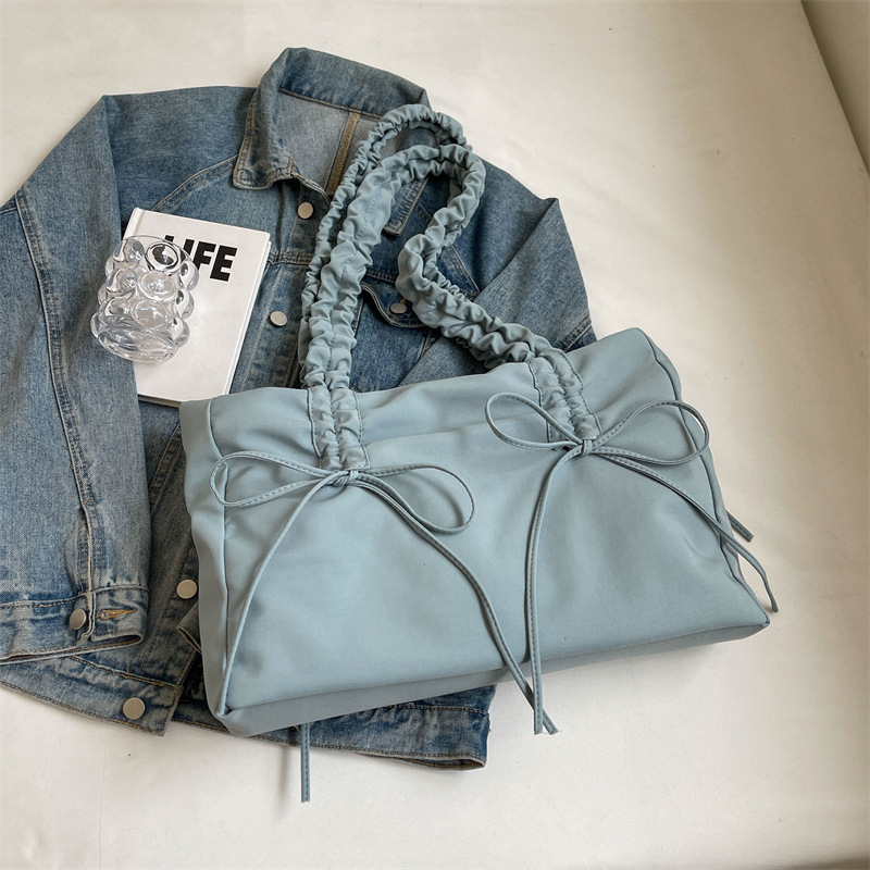 유행 주름 대용량 가방 여성의 2024 봄과 여름 새로운 한국 스타일 간단한 캐주얼 토트 백 통근 어깨 가방스토어 가기