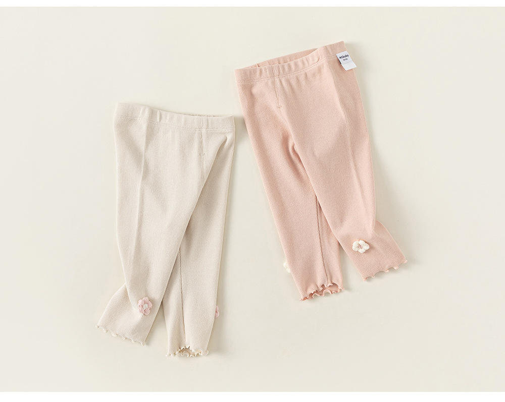 유바오 아동복 봄과 여름 아동복 새로운 어린이 레깅스 소녀 3 차원 작은 꽃 바지 슬림 크롭 바지