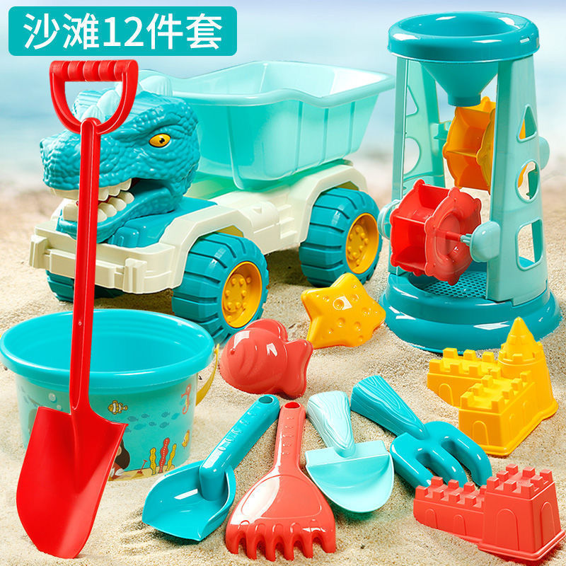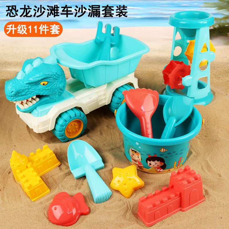 • 공룡 해변 자동차 모래 시계 도구 큰 삽 11 조각 세트