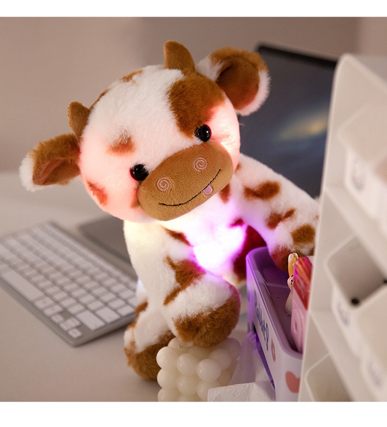 빛나는 암소 인형 봉제 인형 장난감 앉아 송아지 잡아 기계 헝겊 인형 조디악 소 인형 활동 어린이 선물