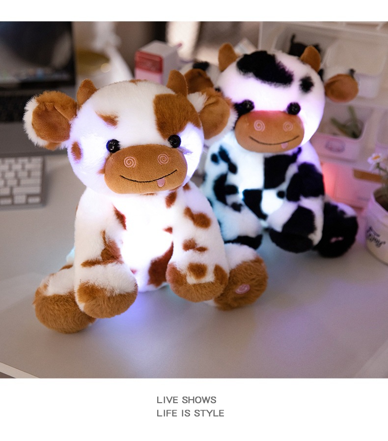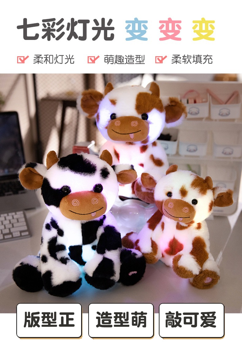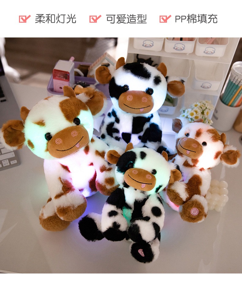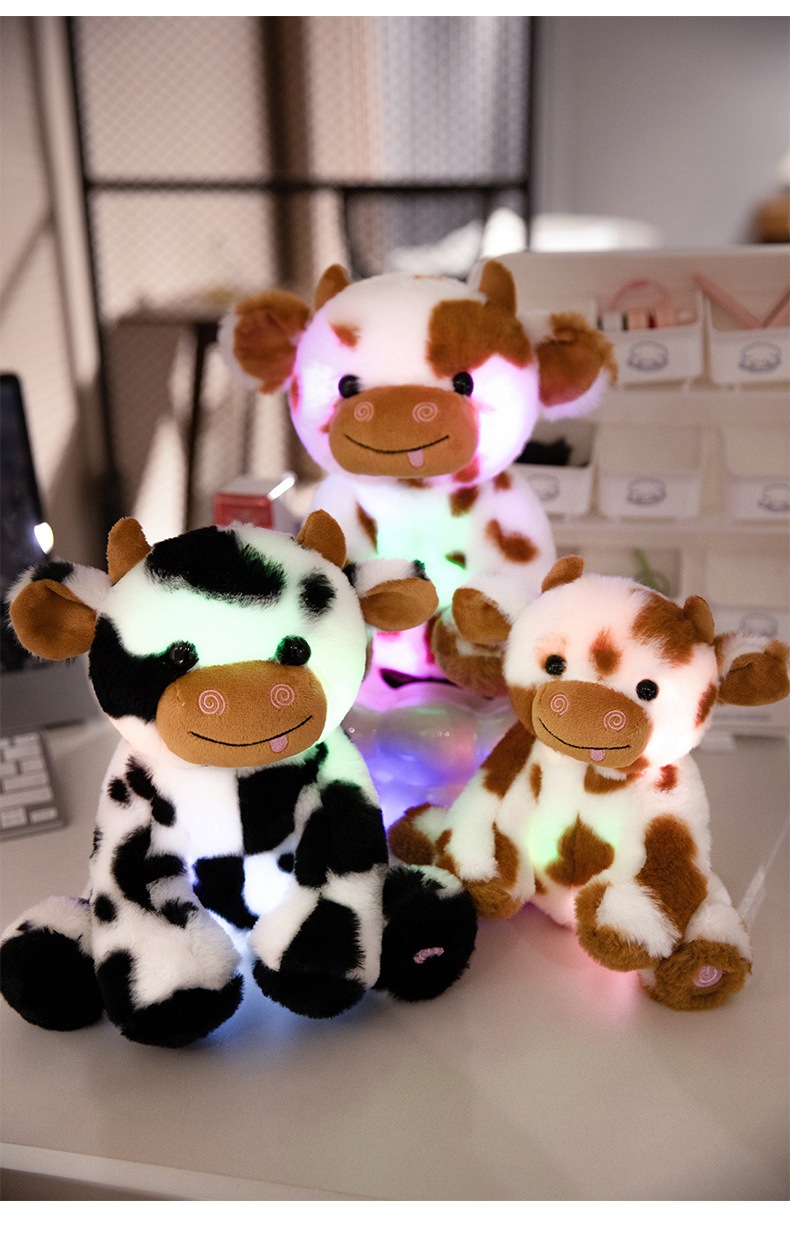 빛나는 암소 인형 봉제 인형 장난감 앉아 송아지 잡아 기계 헝겊 인형 조디악 소 인형 활동 어린이 선물스토어 가기
