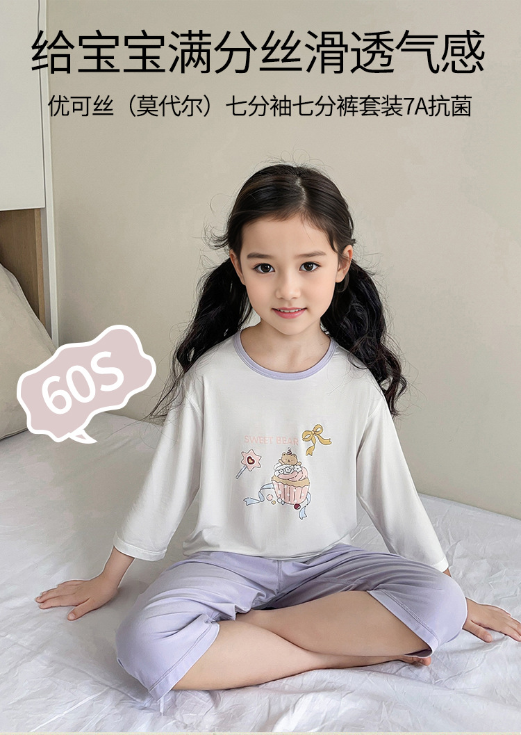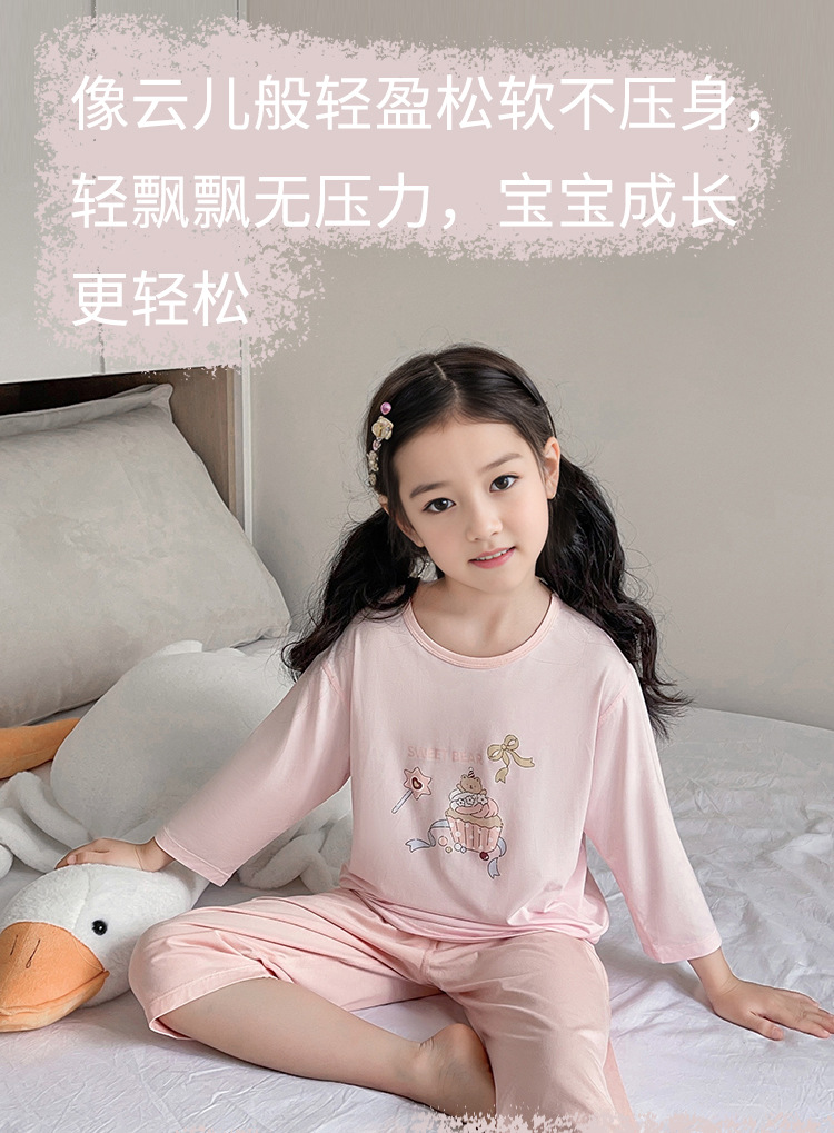 어린이 잠옷 여름 얇은 모달 소년의 7 점 소매 아기 에어컨 소녀 홈 옷 세트 클래스 A스토어 가기