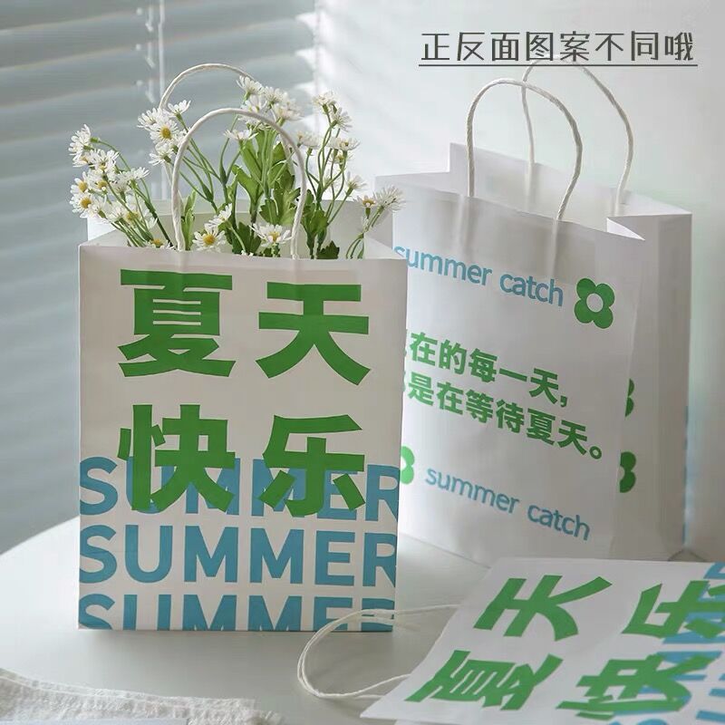 • 행복한 여름 21*11*27; 크래프트 종이 \ 흰색 판지; 종이 봉지