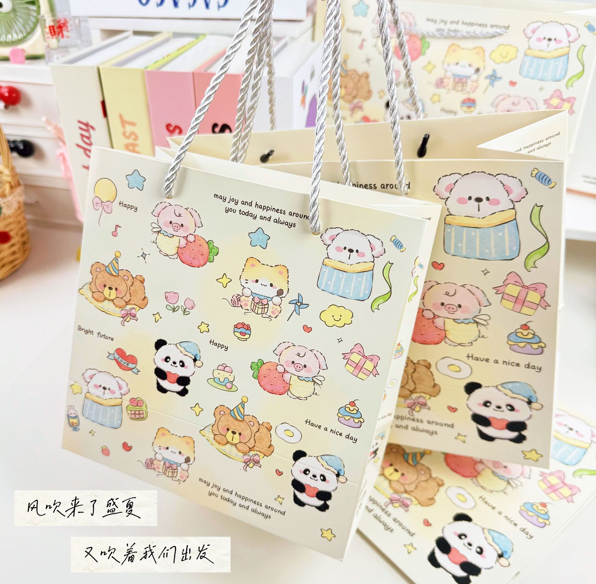 미니 스몰 사이즈 선물 가방 선물 가방 크래프트 종이 가방 핸드백 귀여운 포장 가방 뜨거운 냄비 가게 간식 가방스토어 가기