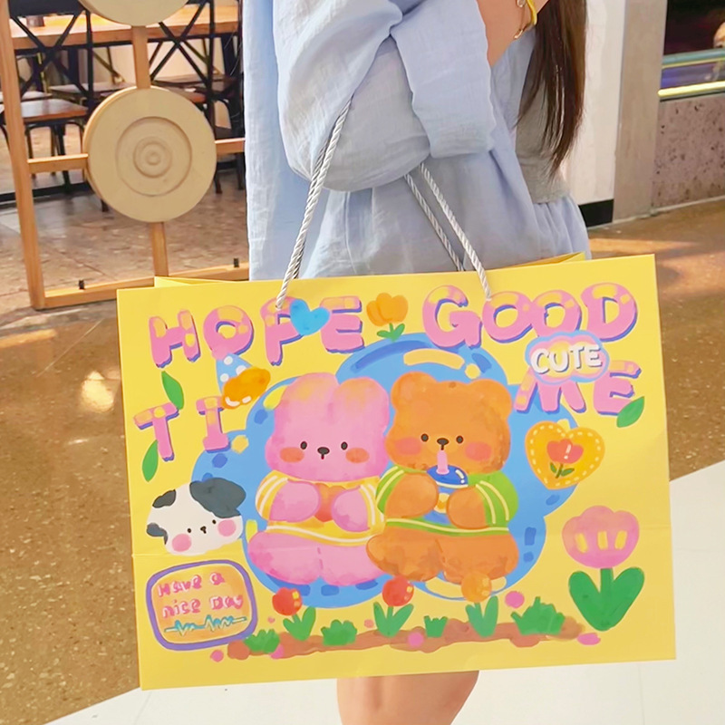 • 노란색 낙서 대형 40*20*30, 크래프트 종이\흰색 판지, 종이 봉지