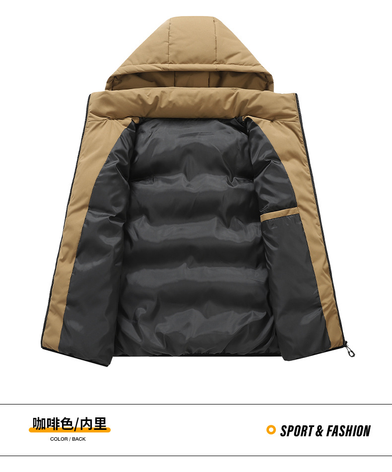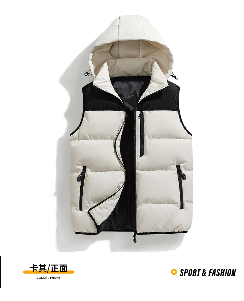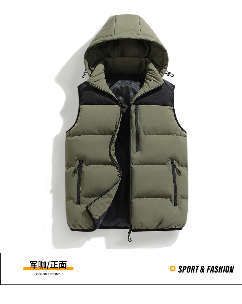국경 간 조끼 남자의 새로운 멀티 포켓 방수 야외 후드 조끼 이동식 모자 자켓 빵 세트 남자 조끼