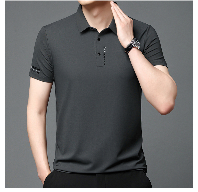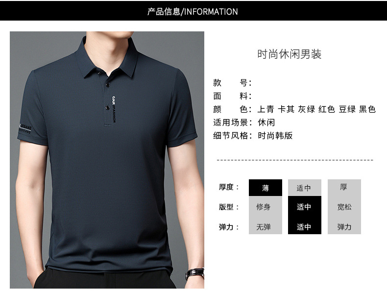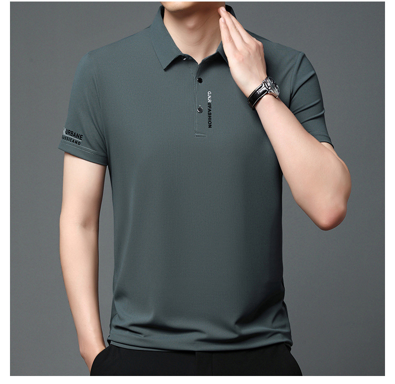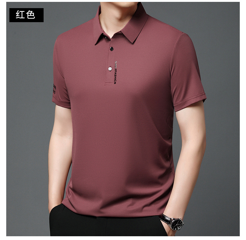 여름 옷깃 아이스 실크 통기성 반팔 남자 티셔츠 솔리드 컬러 캐주얼 올 매치 얇은 남자 폴로 셔츠 중년 탑스토어 가기