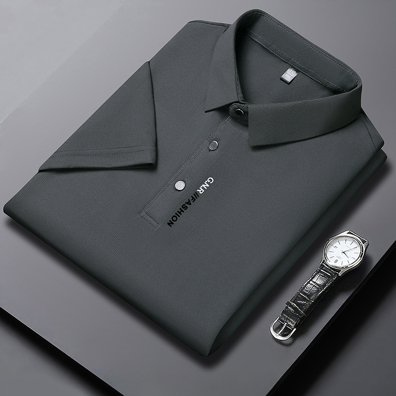 여름 옷깃 아이스 실크 통기성 반팔 남자 티셔츠 솔리드 컬러 캐주얼 올 매치 얇은 남자 폴로 셔츠 중년 탑