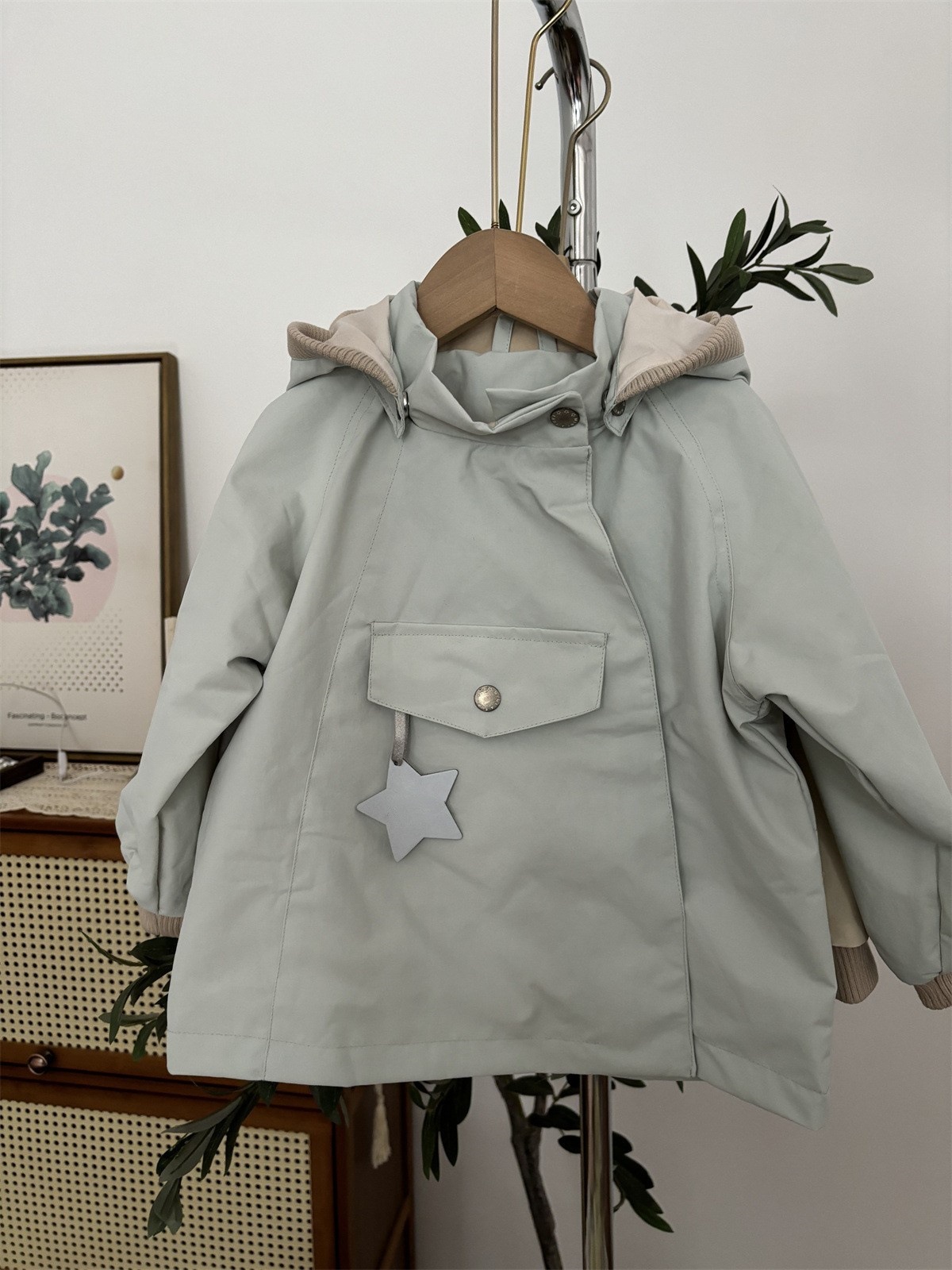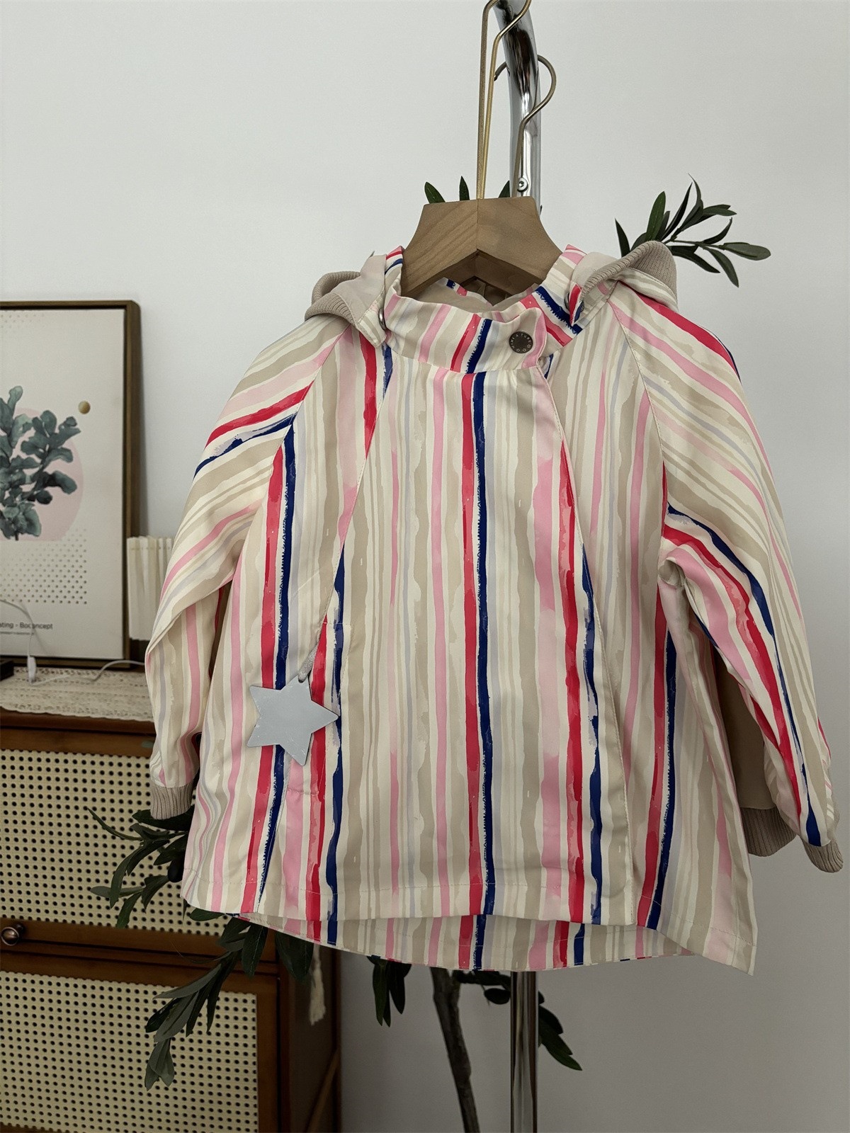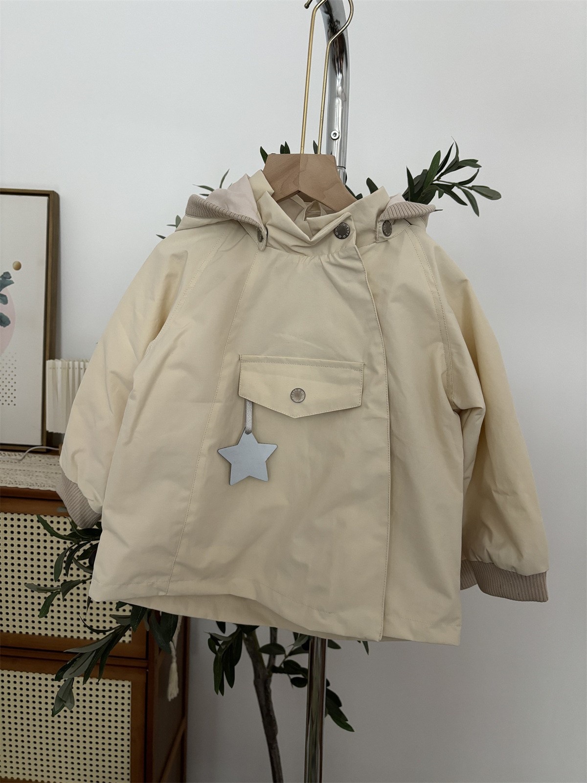 소년과 소녀 엘프 모자 윈드 브레이커 2025 새로운 아기 봄, 가을 매트 엘프 코트 뾰족한 모자 중립 어린이 클립