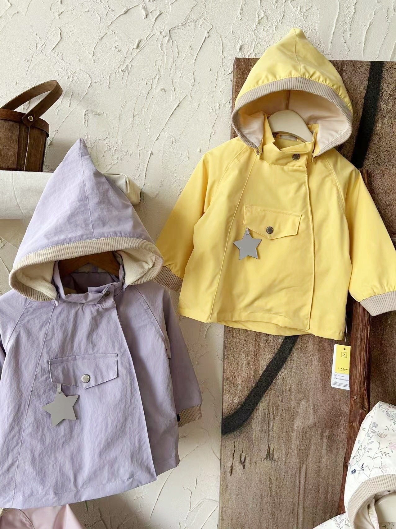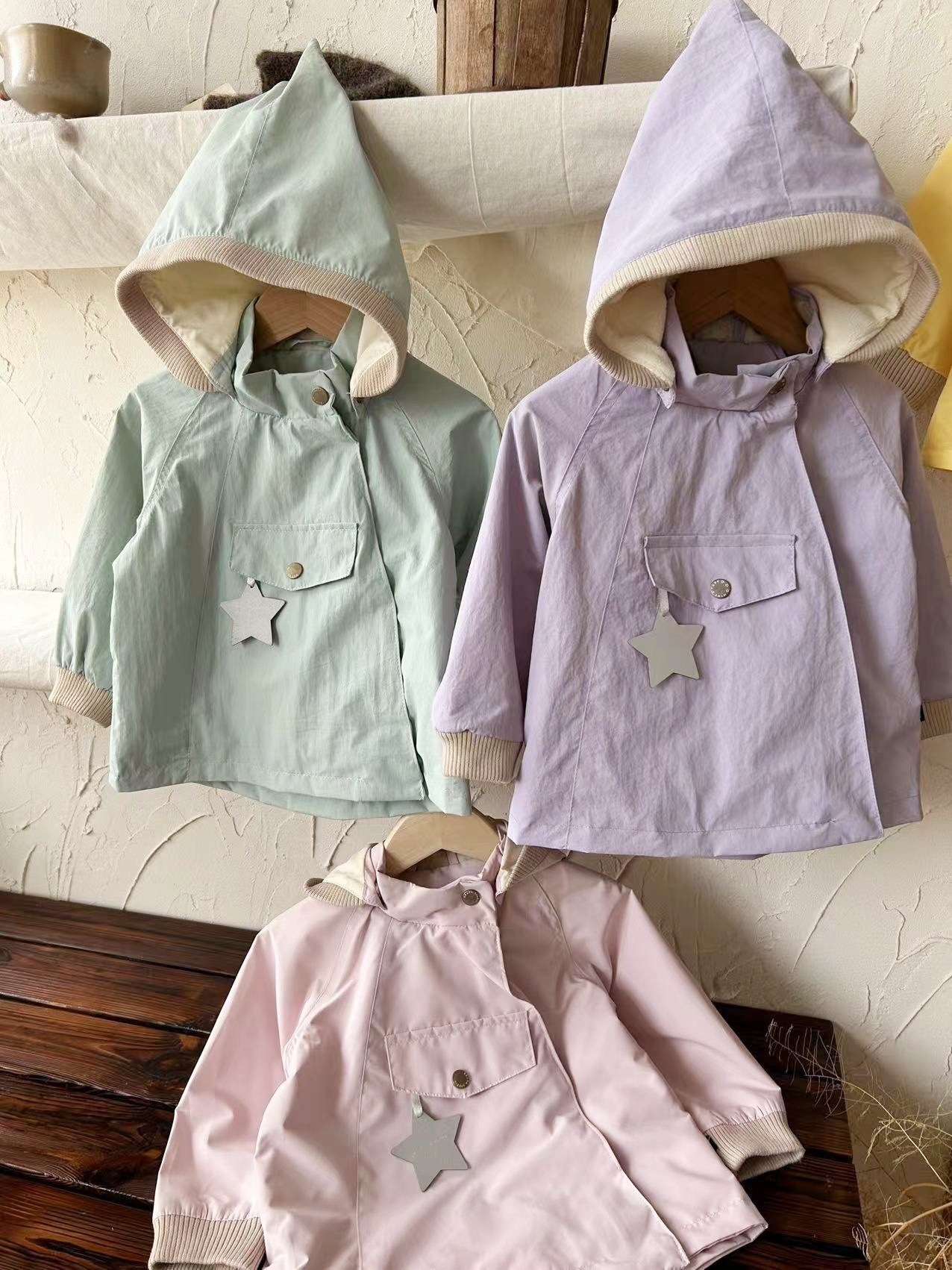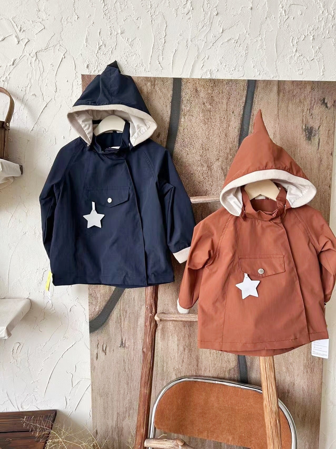 소년과 소녀 엘프 모자 윈드 브레이커 2025 새로운 아기 봄, 가을 매트 엘프 코트 뾰족한 모자 중립 어린이 클립스토어 가기
