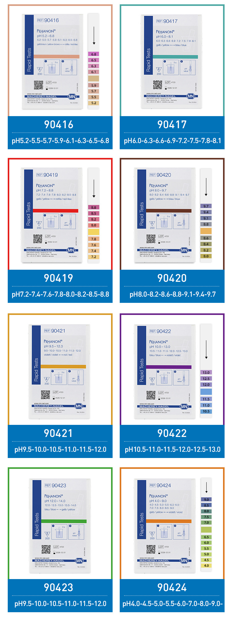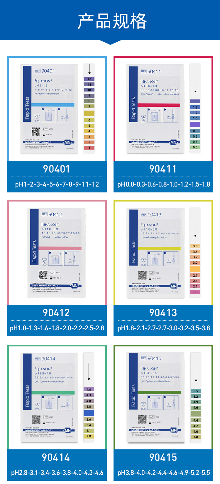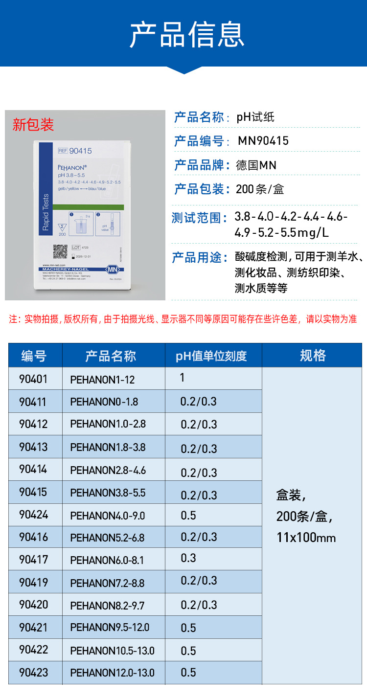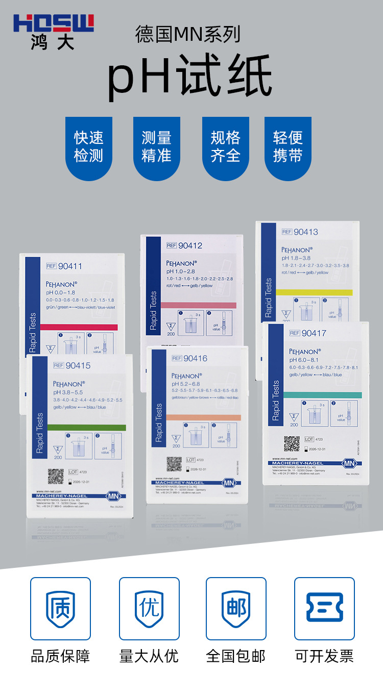 독일 MN90415 90420 90416 PH 시험 종이 정밀 pH 시험 화장품 전기 도금 물 시험지