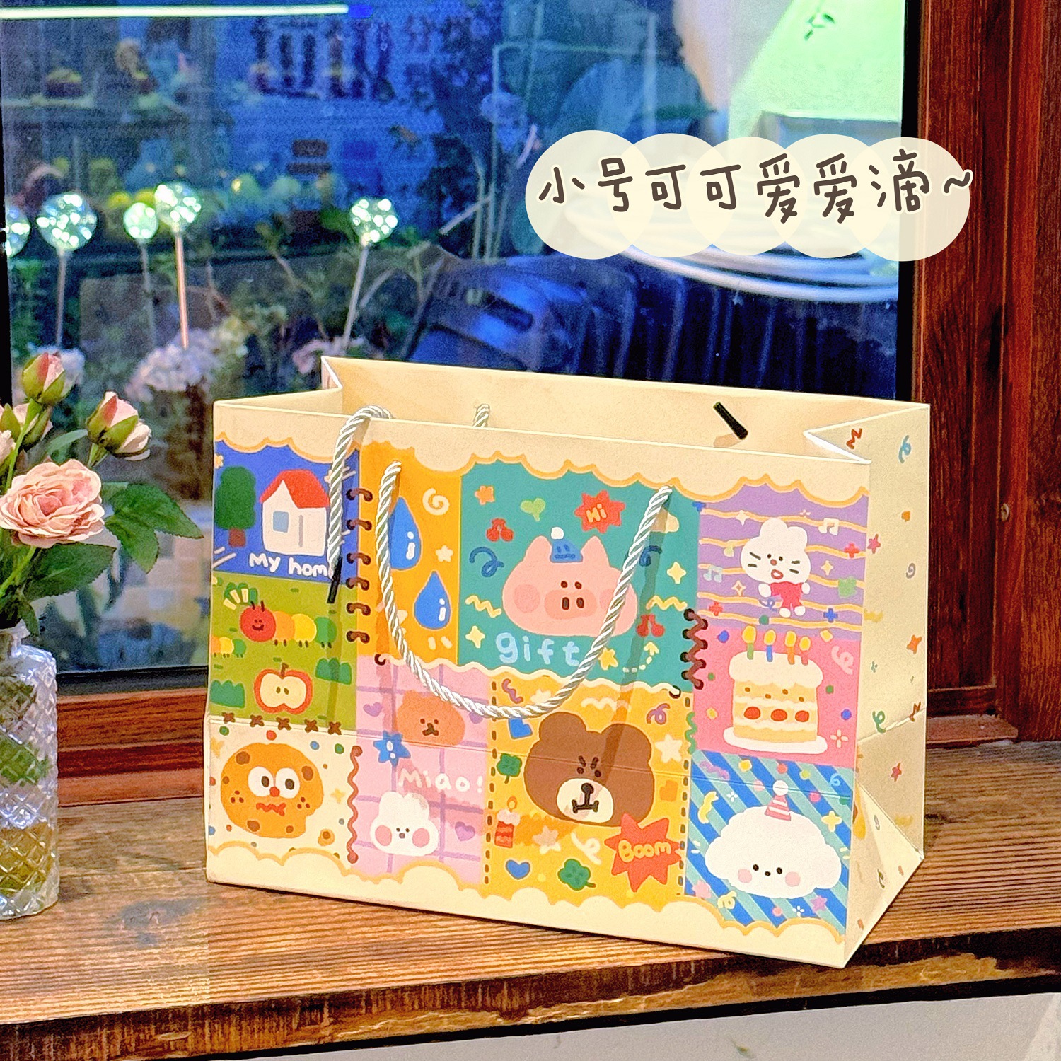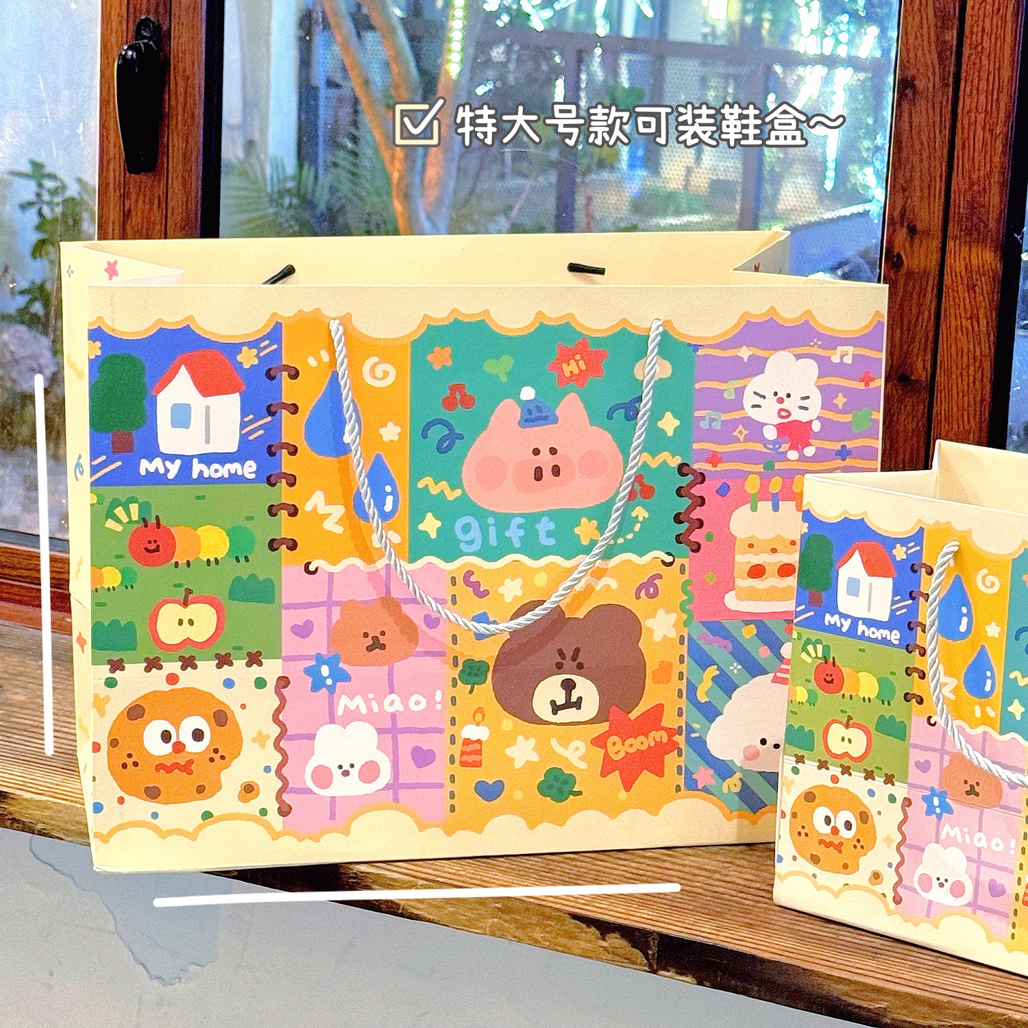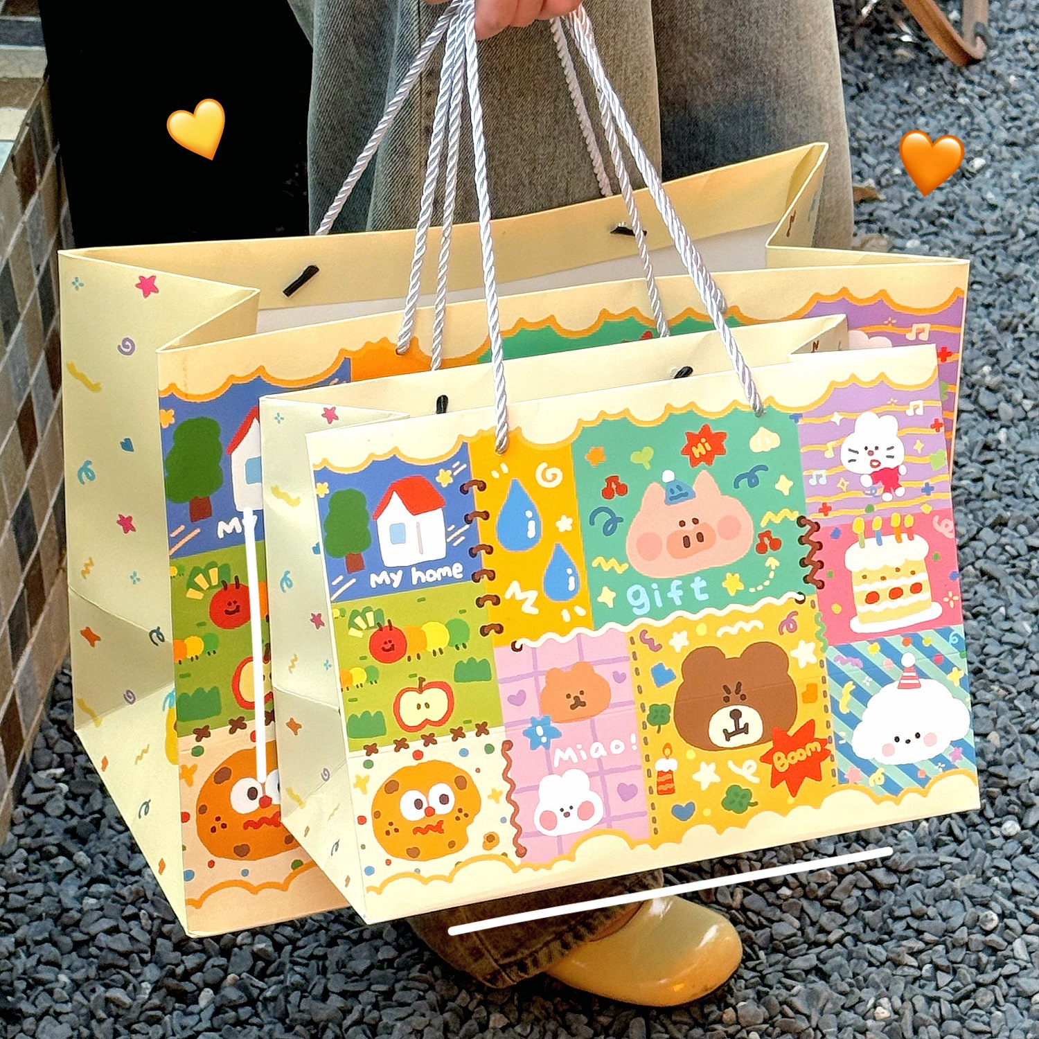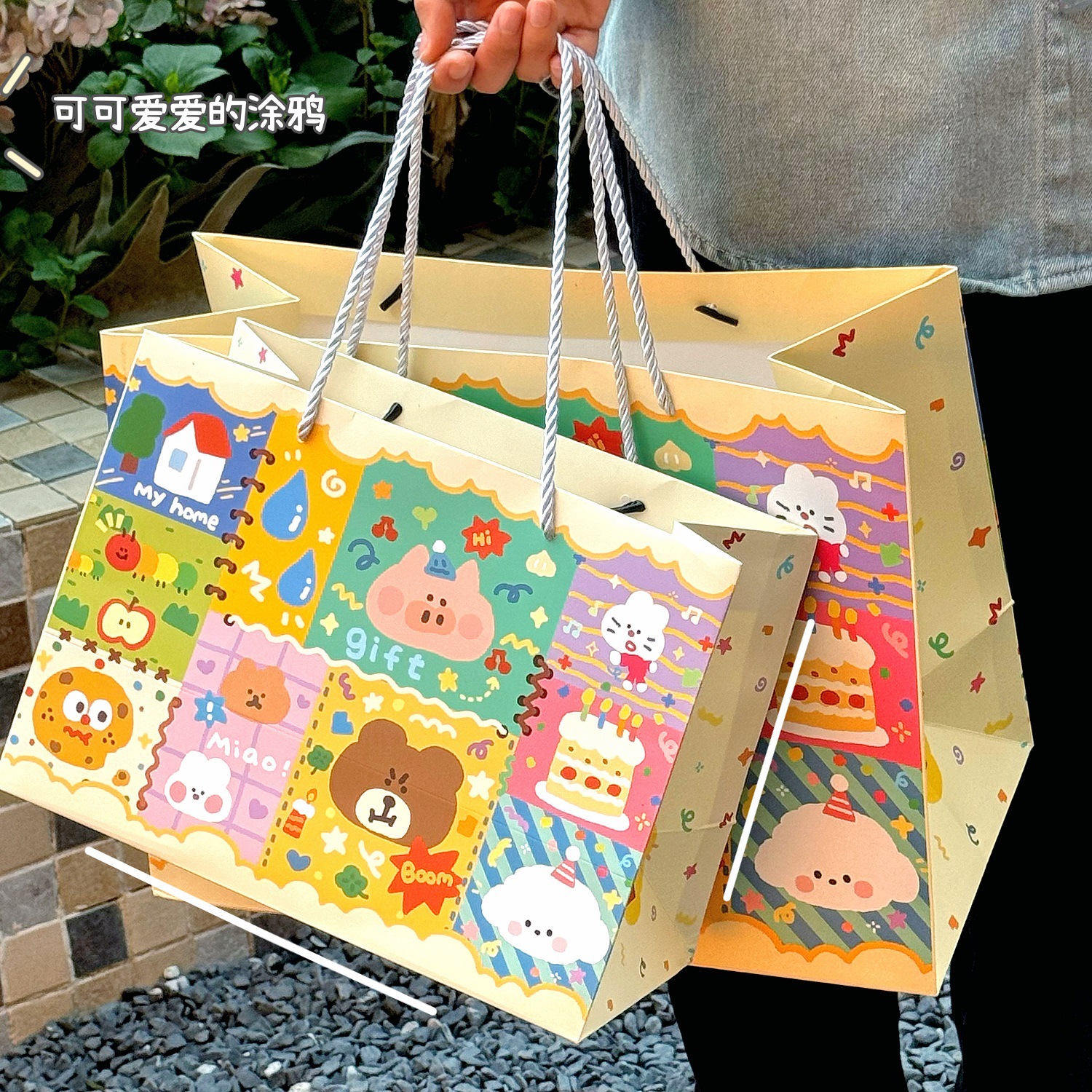 Ins 귀여운 낙서 선물 가방 휴대용 생일 선물 종이 가방 포장 가방 큰 내구성 저장 가방 작은스토어 가기