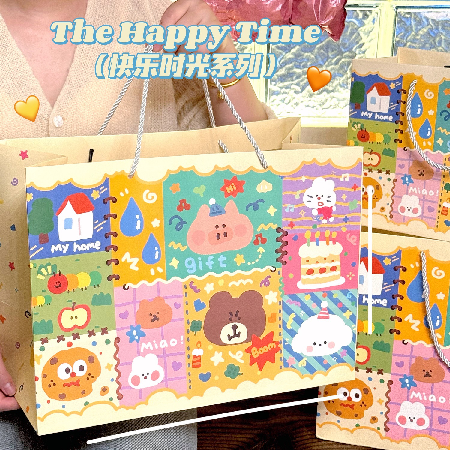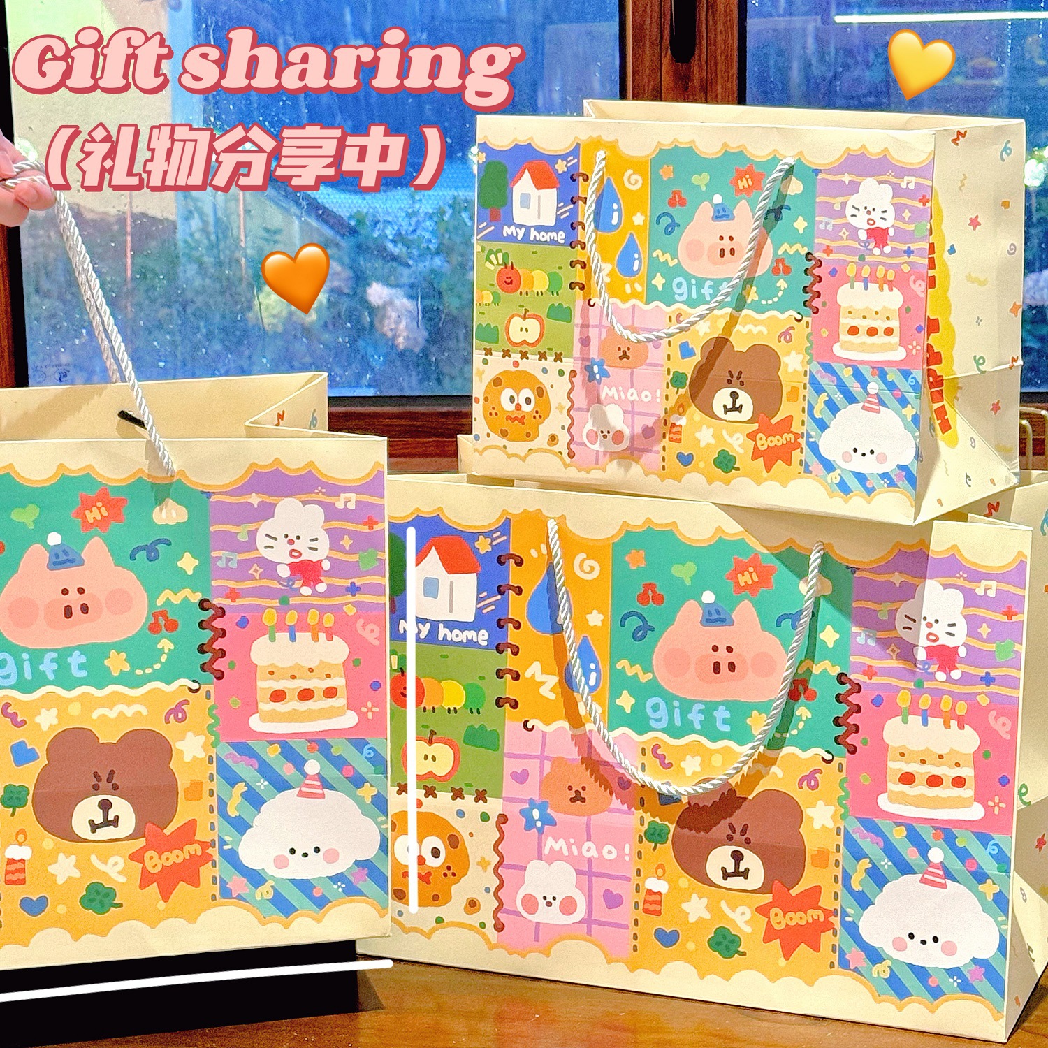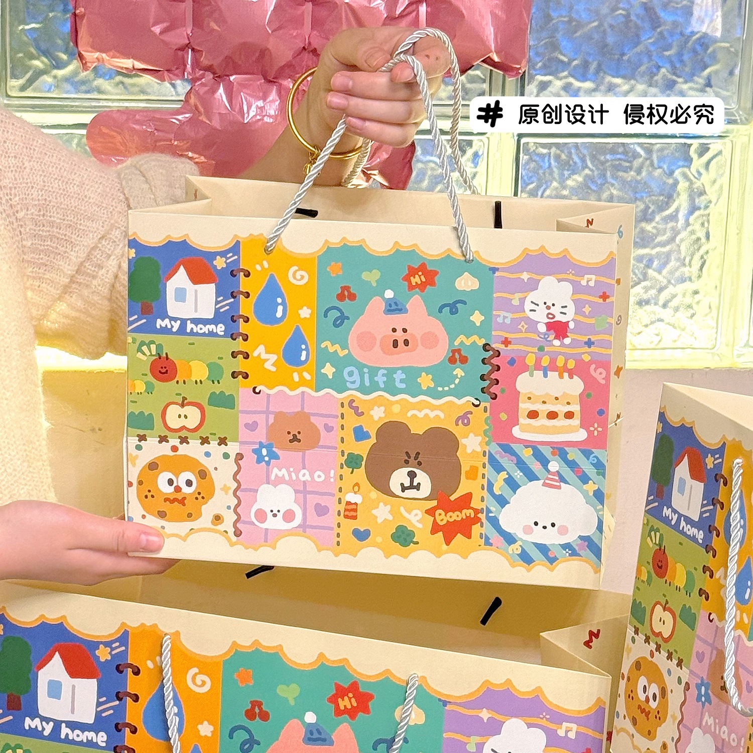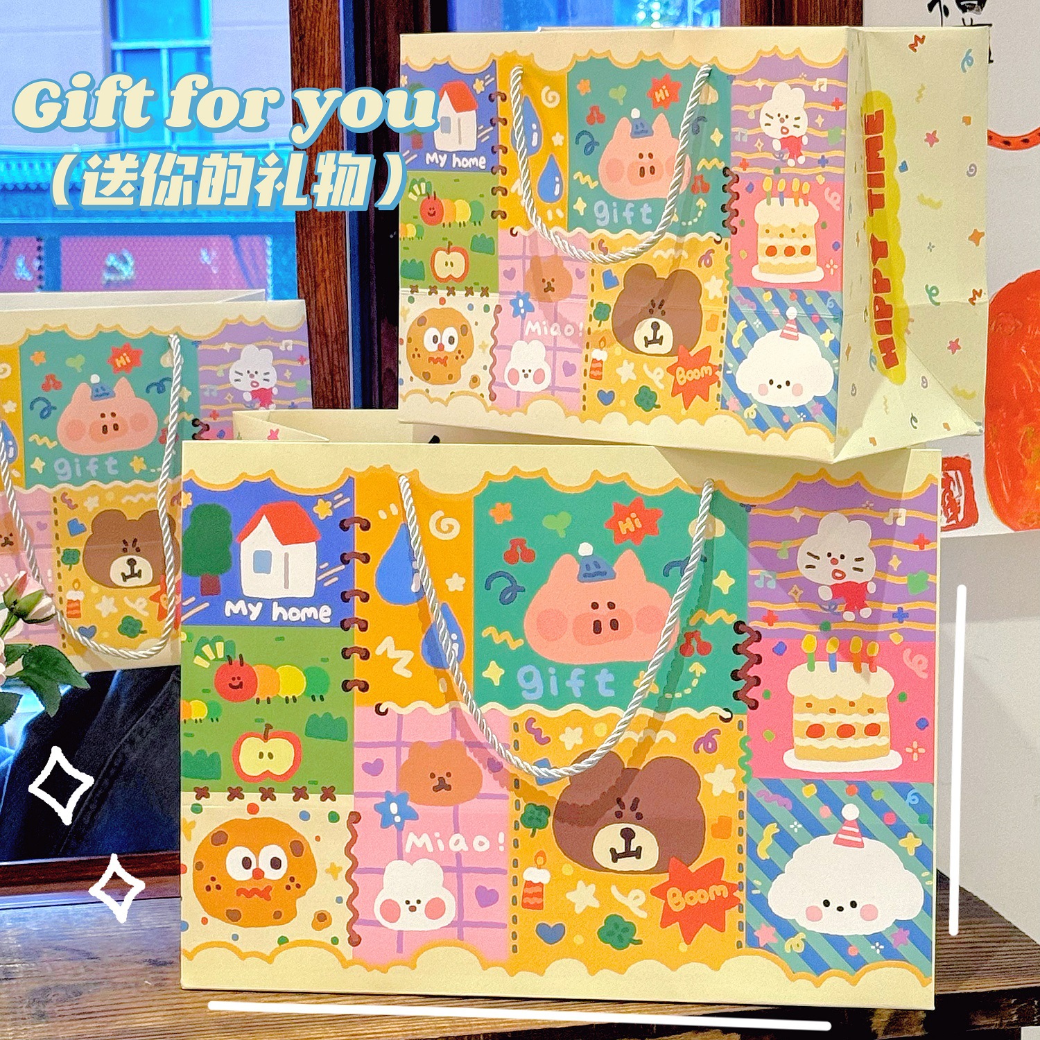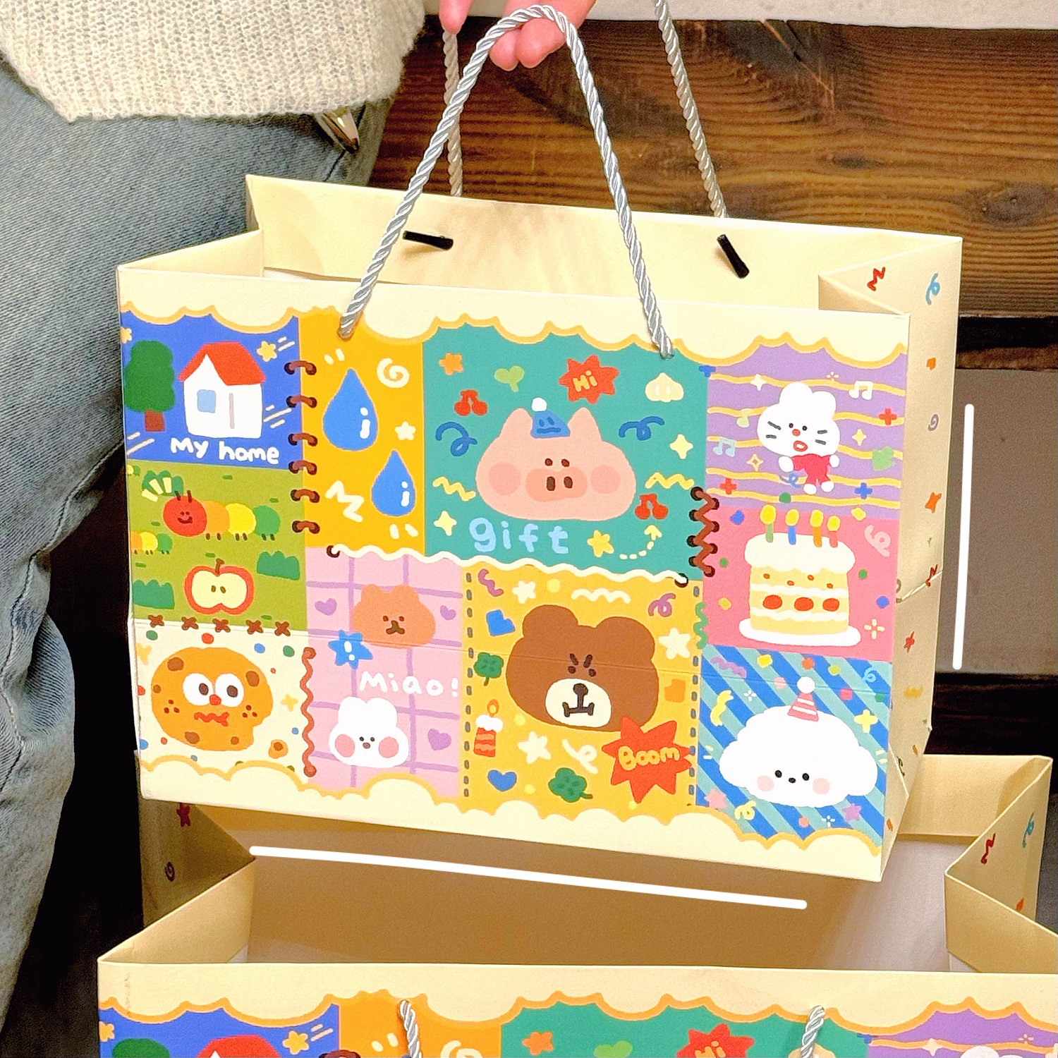 Ins 귀여운 낙서 선물 가방 휴대용 생일 선물 종이 가방 포장 가방 큰 내구성 저장 가방 작은스토어 가기