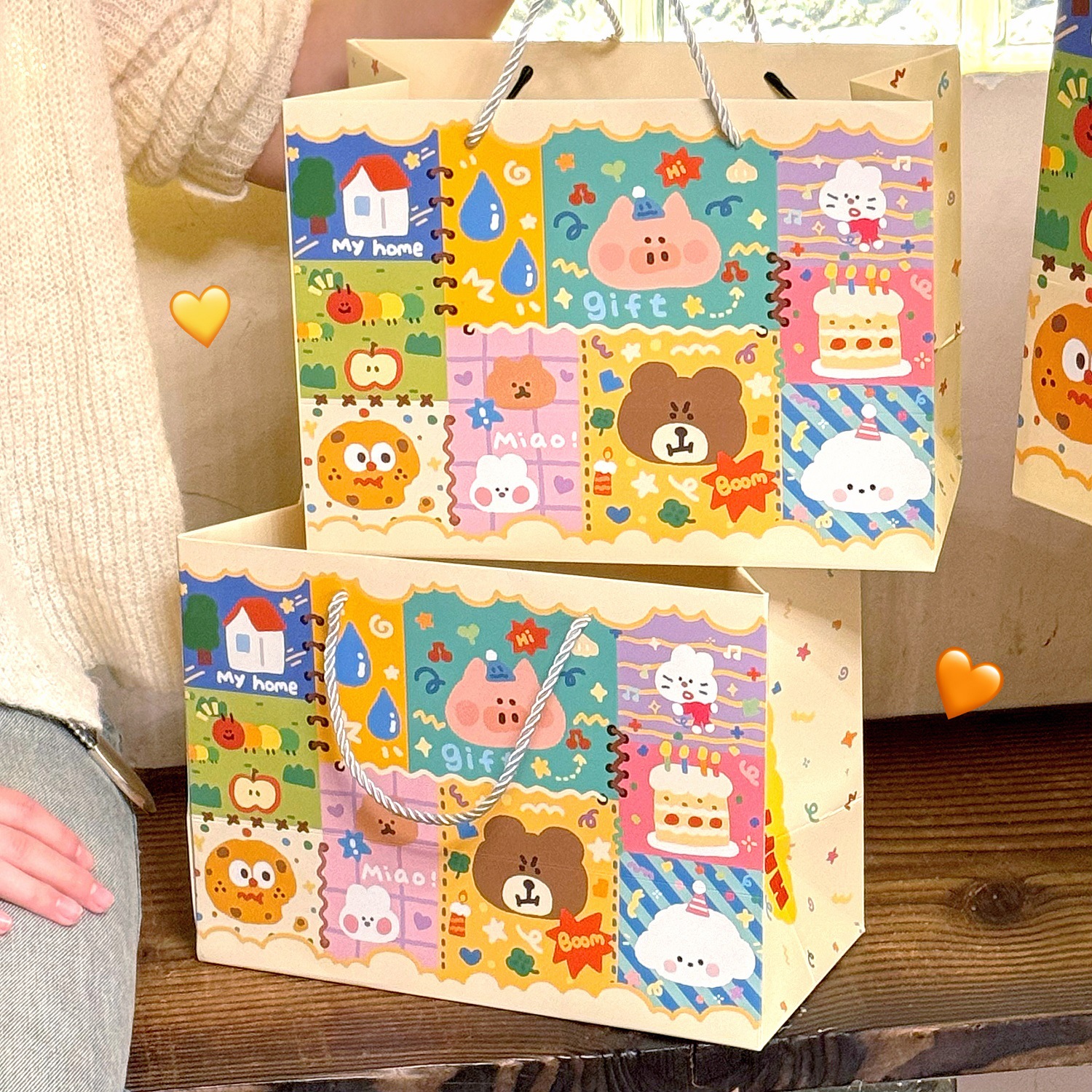 Ins 귀여운 낙서 선물 가방 휴대용 생일 선물 종이 가방 포장 가방 큰 내구성 저장 가방 작은