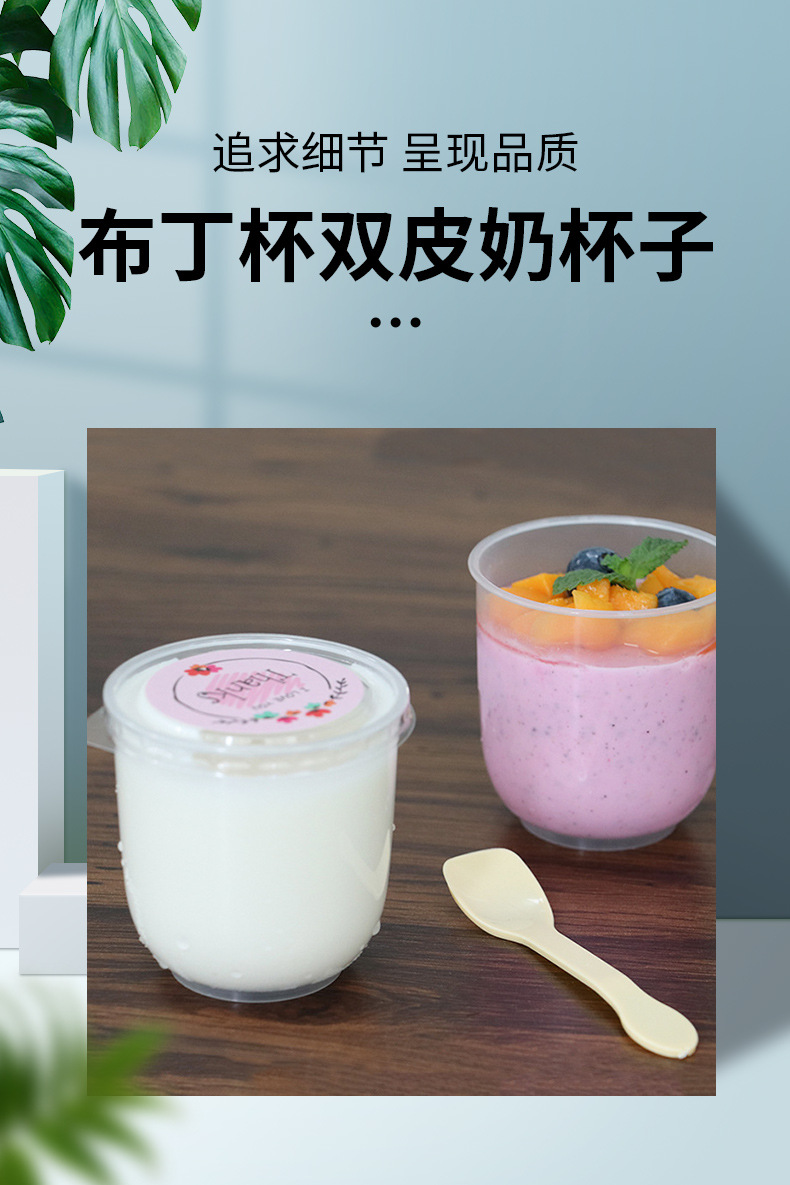 상업용 우유 차 가게 케이크 푸딩 컵 더블 스킨 우유 컵 일회용 디저트 무스 컵 젤리 컵 뚜껑